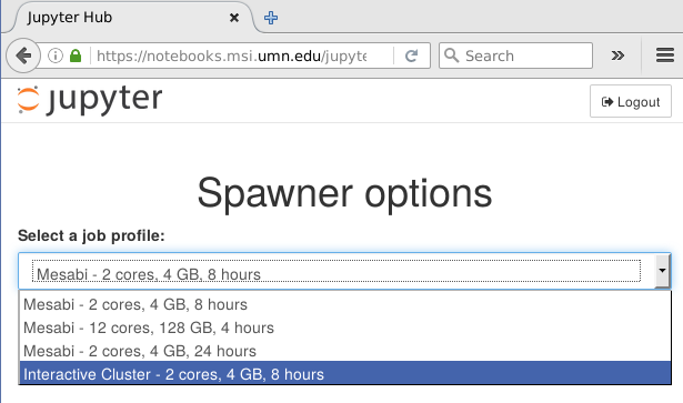 ('Mesabi - 12 cores, 128 GB', 'mesabi128gb', 'batchspawner.TorqueSpawner',