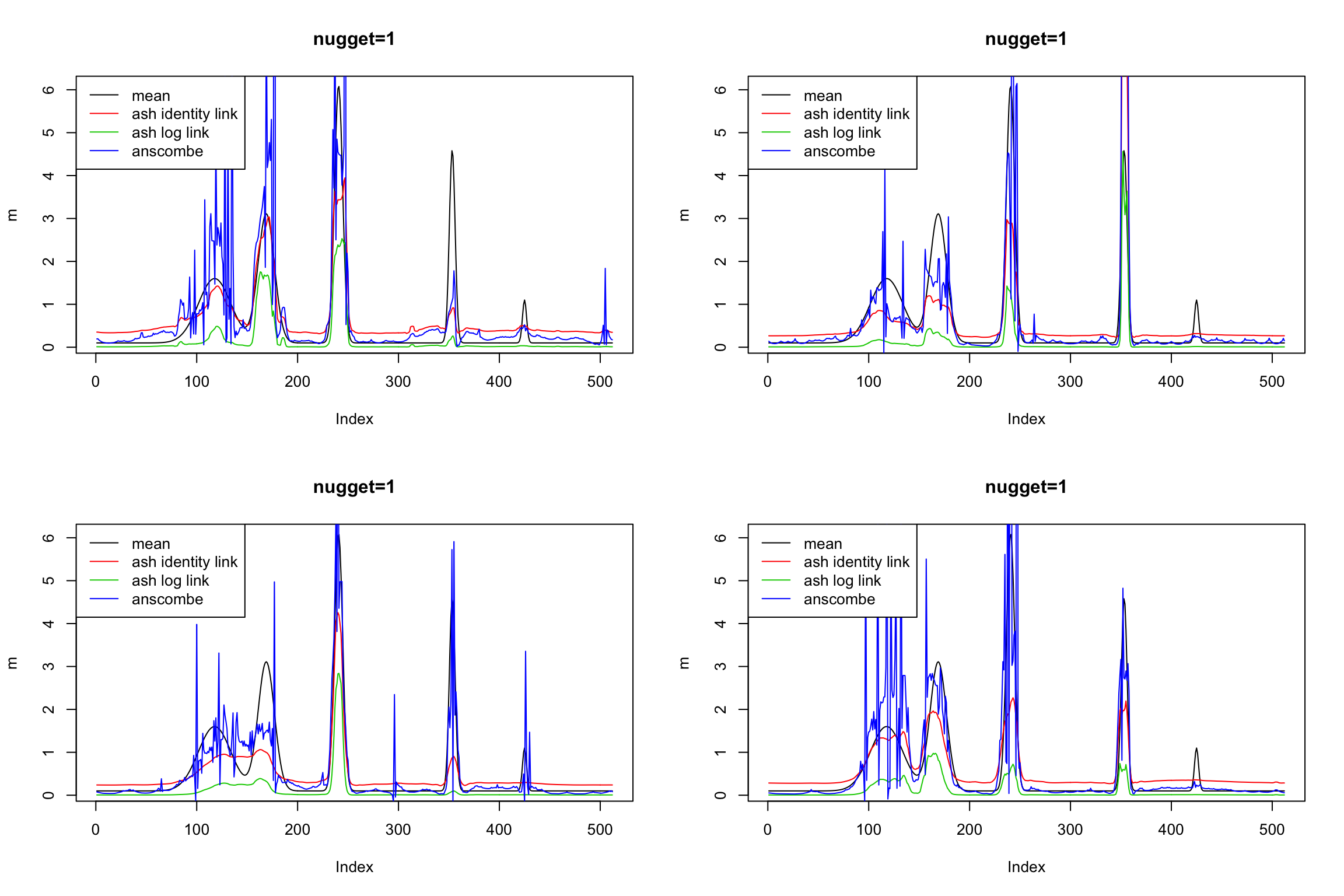 legend('topleft',c('mean','ash identity link','ash log link','anscombe'),lty=c(1,1,1,1),col=c(1,2,3,4))