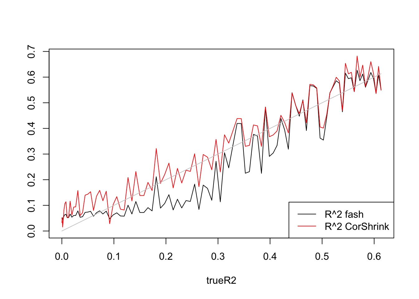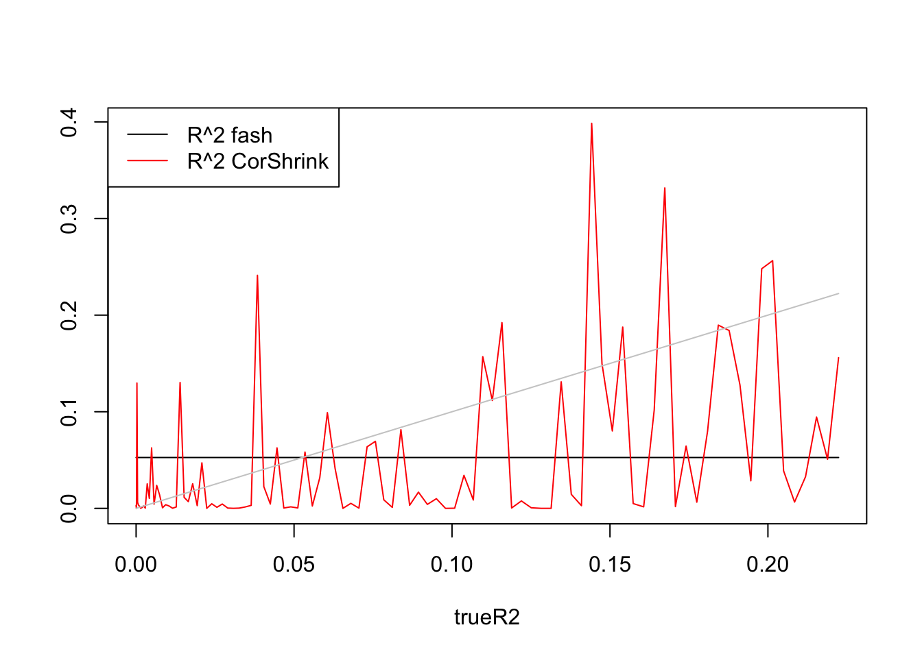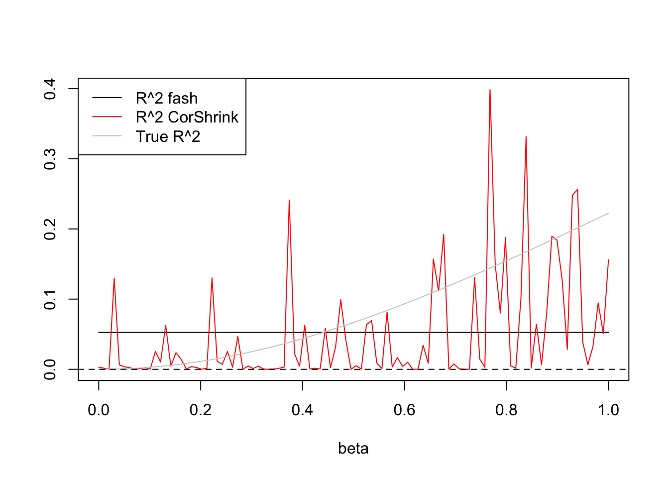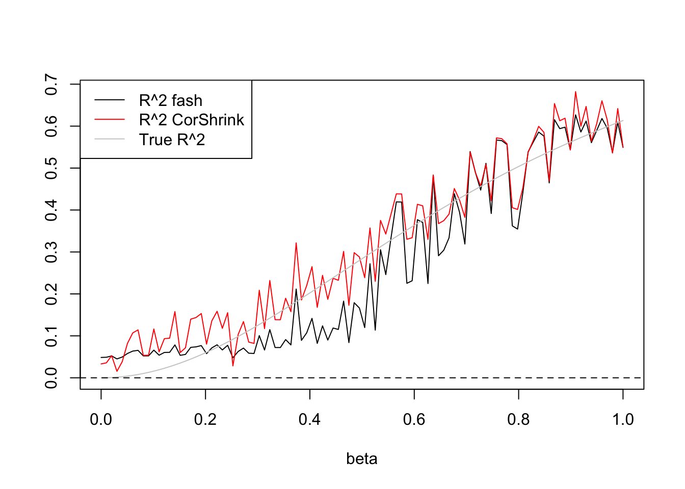 legend('topleft',c('R2','R^2 fash','R^2 CorShrink','True R^2'),lty=c(1,1,1,1),col=c(1,4,2,'grey80'))