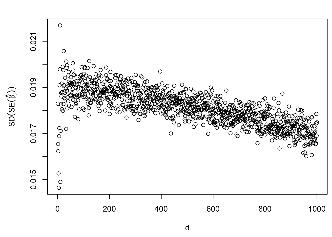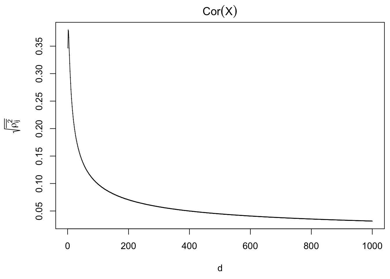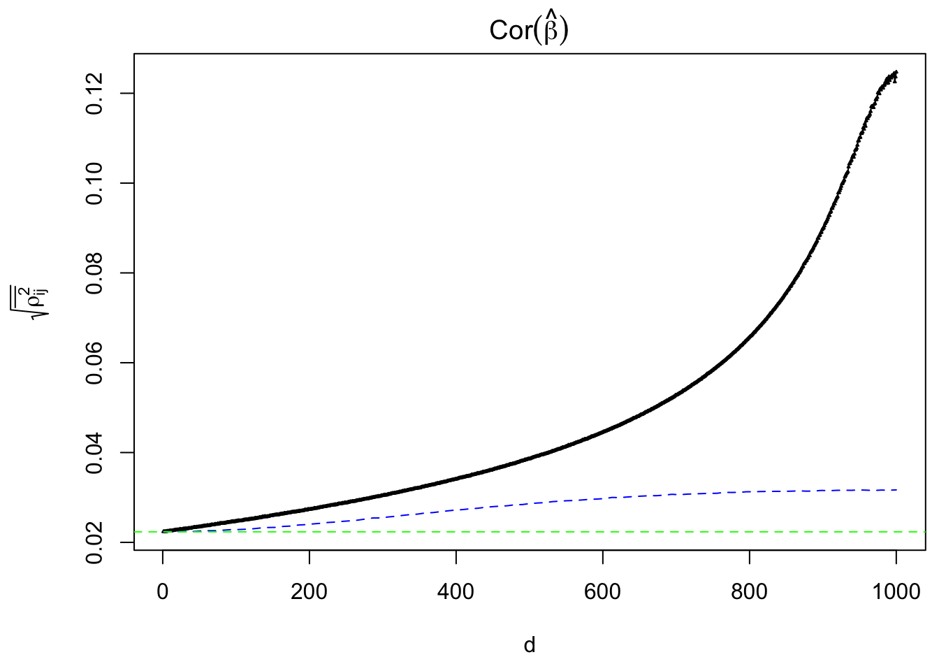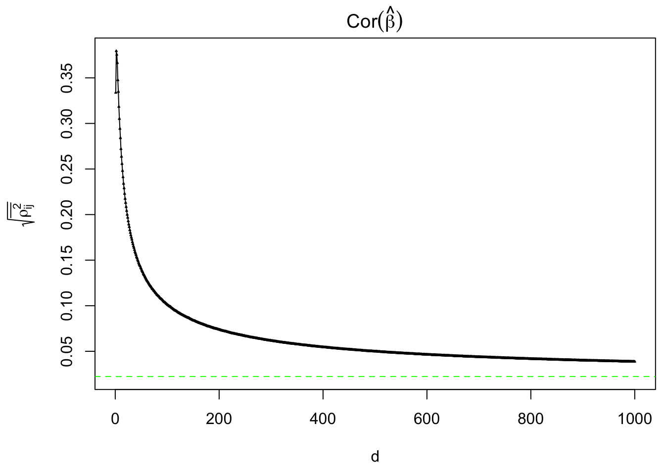 Actually the most important quantity to determine the shape of the empirical distribution of \(\hat z_j\) is the square root of the mean squared correlation among \(\hat\beta_j\)’s, that is, \(\sqrt{\overline{\rho_{\hat\beta_i, \hat\beta_j}^2}}\).