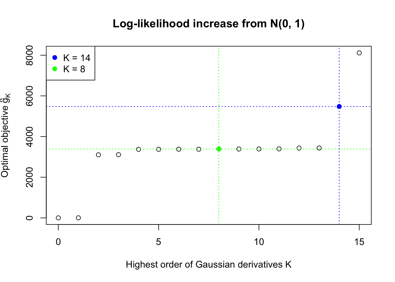 Weights \(w_k\) are of central importance in the algorithm. They contain the information regarding whether the composition of Gaussian derivatives is a proper density function, and if it is, whether it’s a correlated null. We need to find an ingenious way to impose appropriate constraints on \(w_k\).