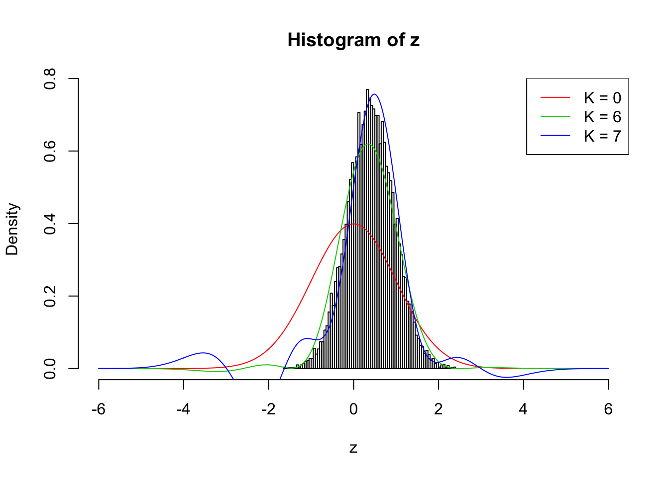 \[ W_k = \frac{1}{k!}\int_{-\infty}^\infty f_0(x)h_k(x)dx \ . \] Therefore, if \(f_0\) is truly a proper density,