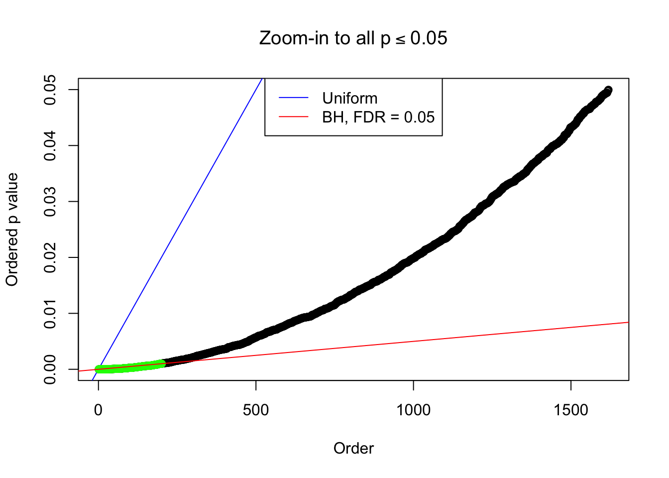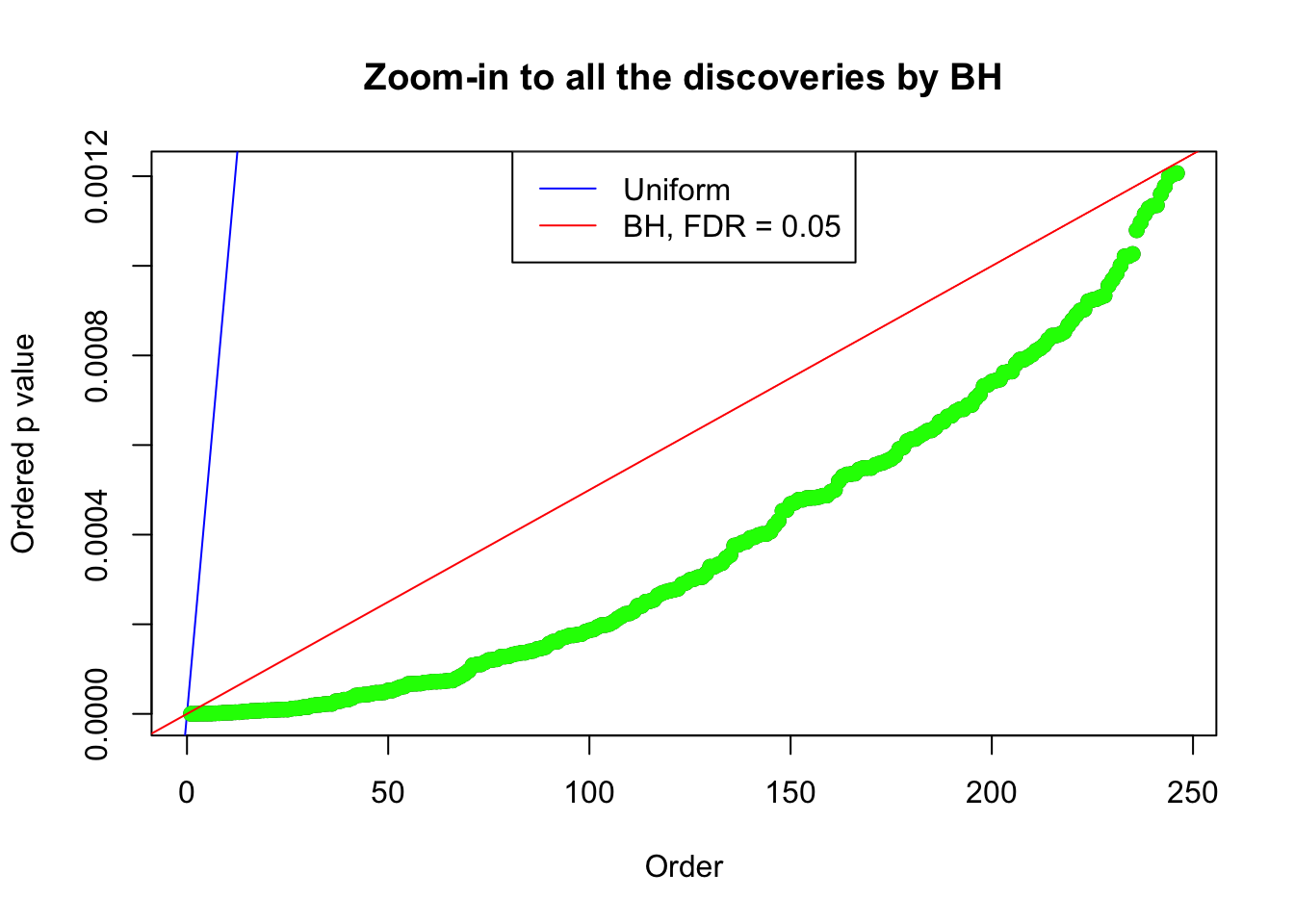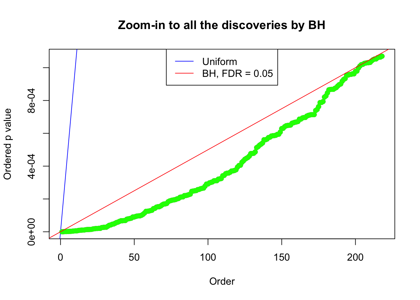 bh.fd = sum(p.adjust(p, method = "BH") <= 0.05)
