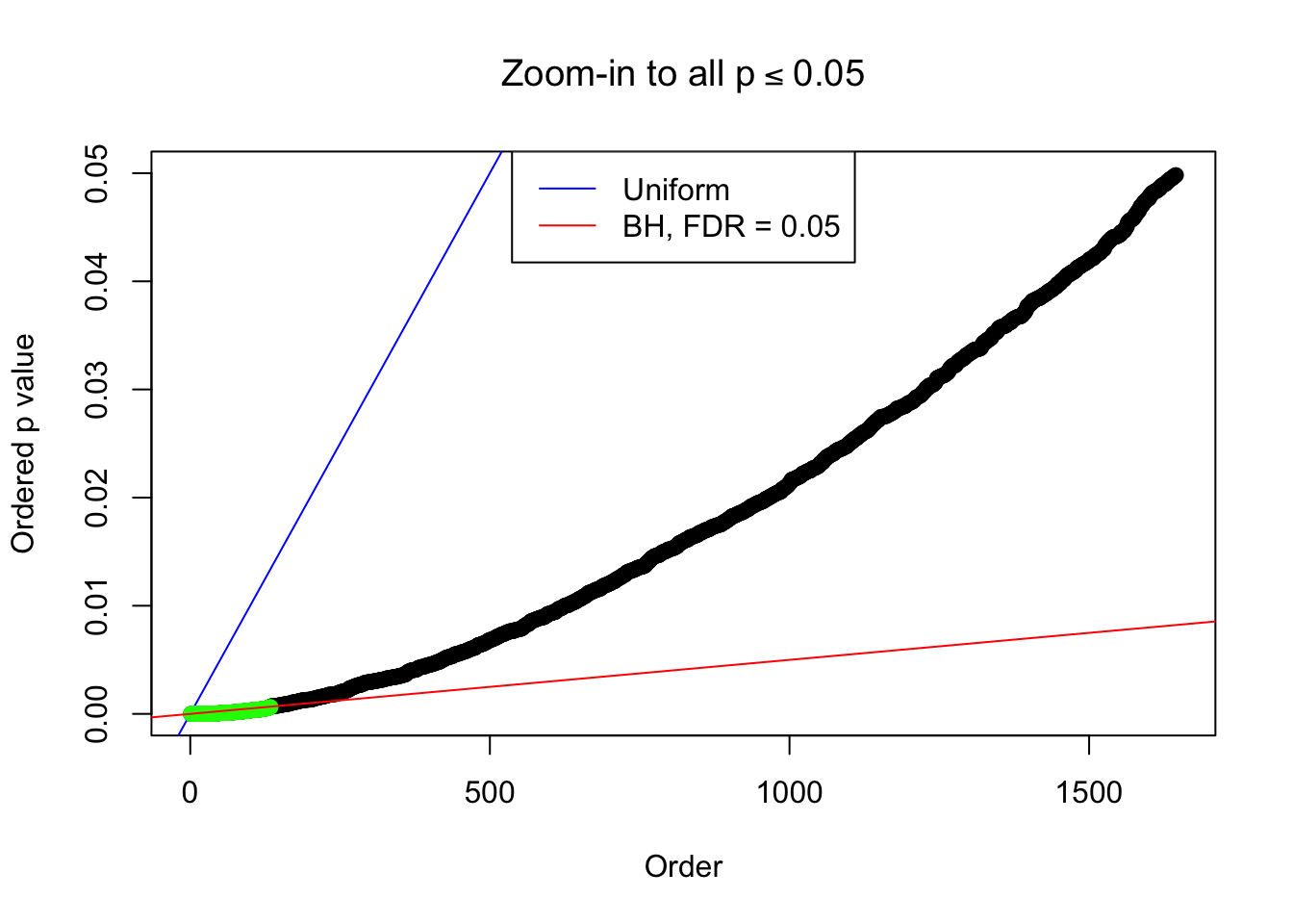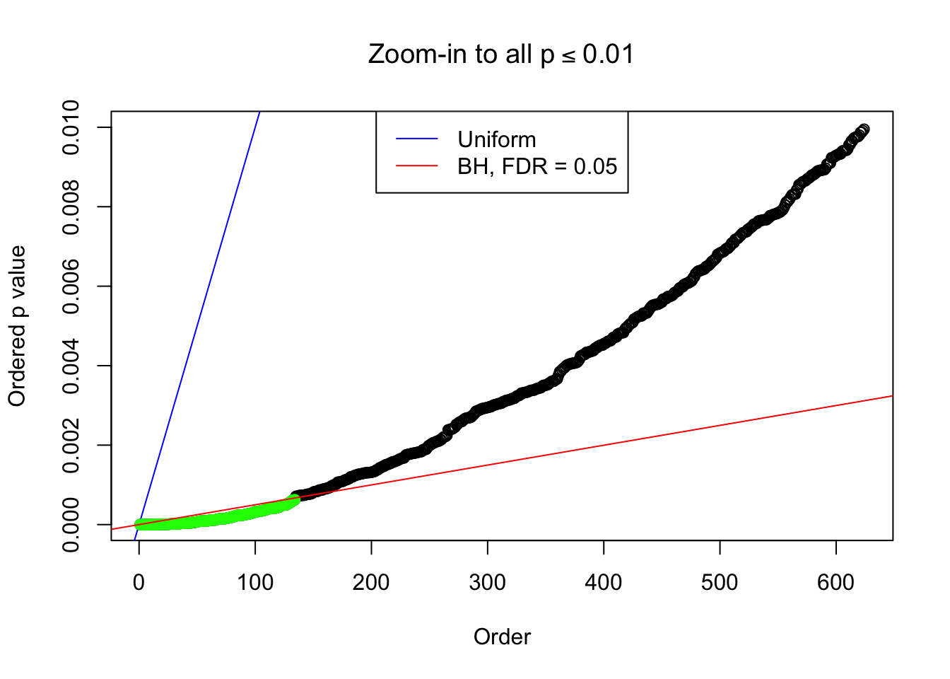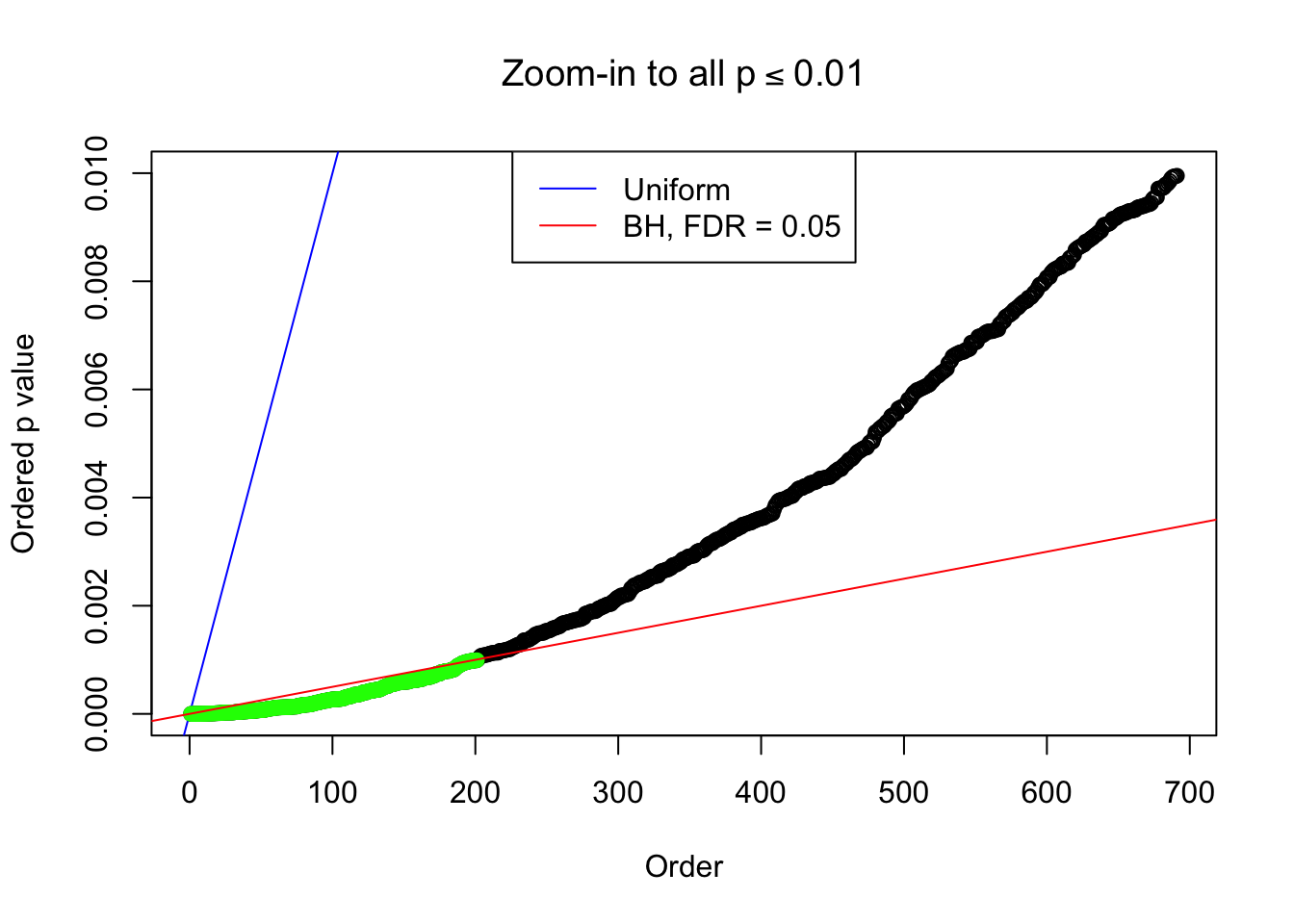 bh.fd = sum(p.adjust(p, method = "BH") <= 0.05)