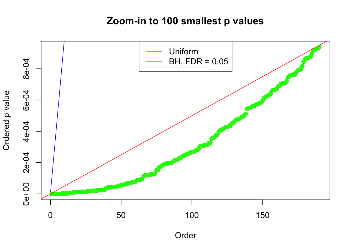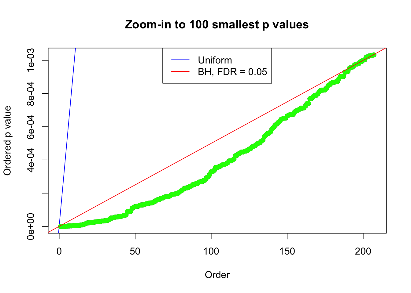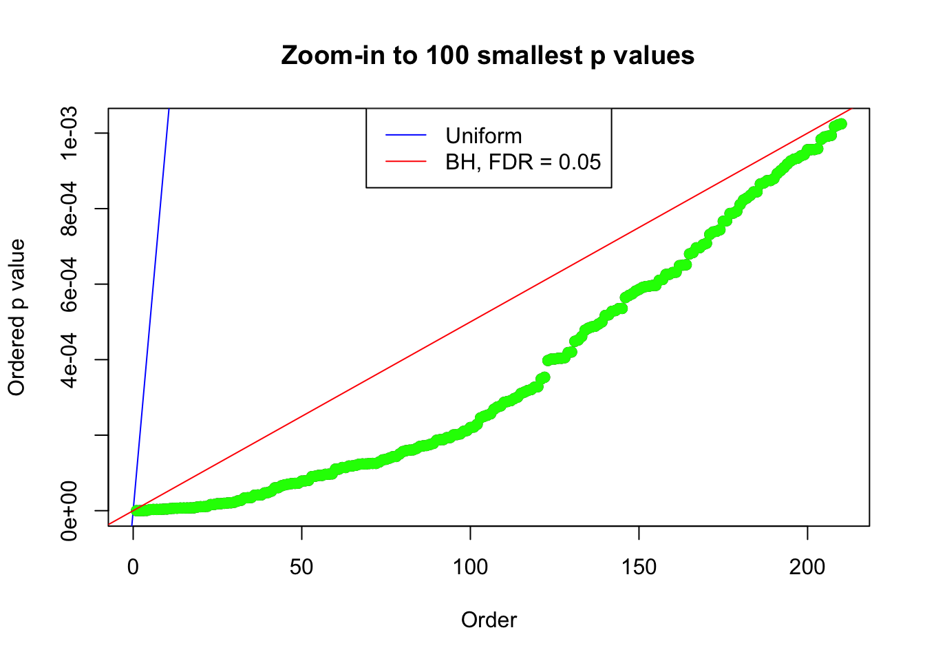 bh.fd = sum(p.adjust(p, method = "BH") <= 0.05)