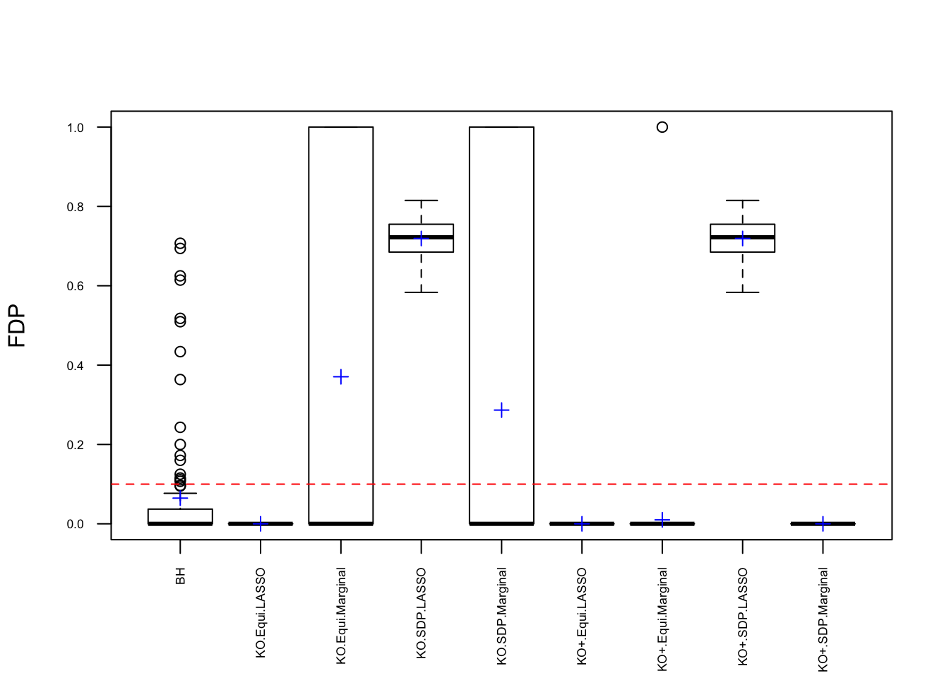 The default knockoff::knockoff.filter function uses SDP construction in step 1 and LASSO-related statistics in step 2. However, we’ve found that Knockoff coded in this way failed to control FDR in simulations when variables are generated such that \(\hat\beta\) has heavy average absolute pairwise correlation, which seems to contradict Thoerem 2 in the Knockoff paper. Now we take a closer look to see what went wrong.