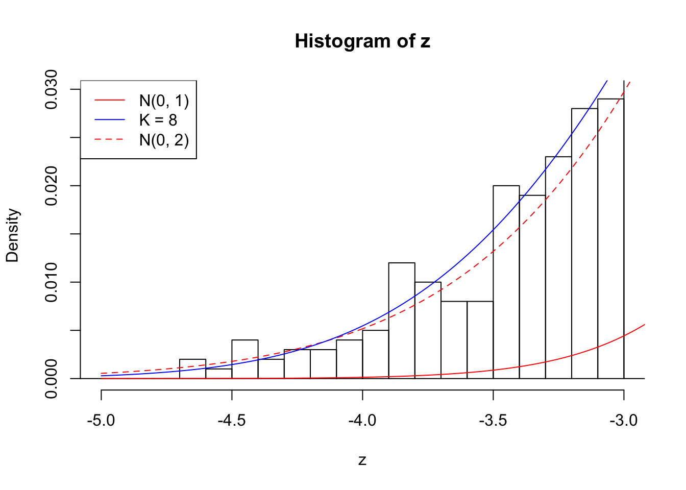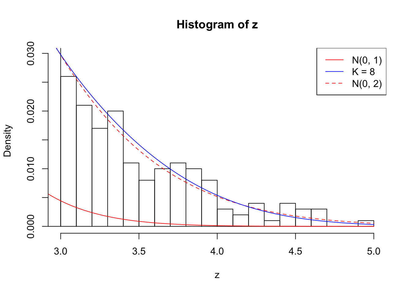 We’ve shown that in many real data sets when we have correlated null \(z\) scores, we can fit their empirical distribution with Gaussian and its derivatives.