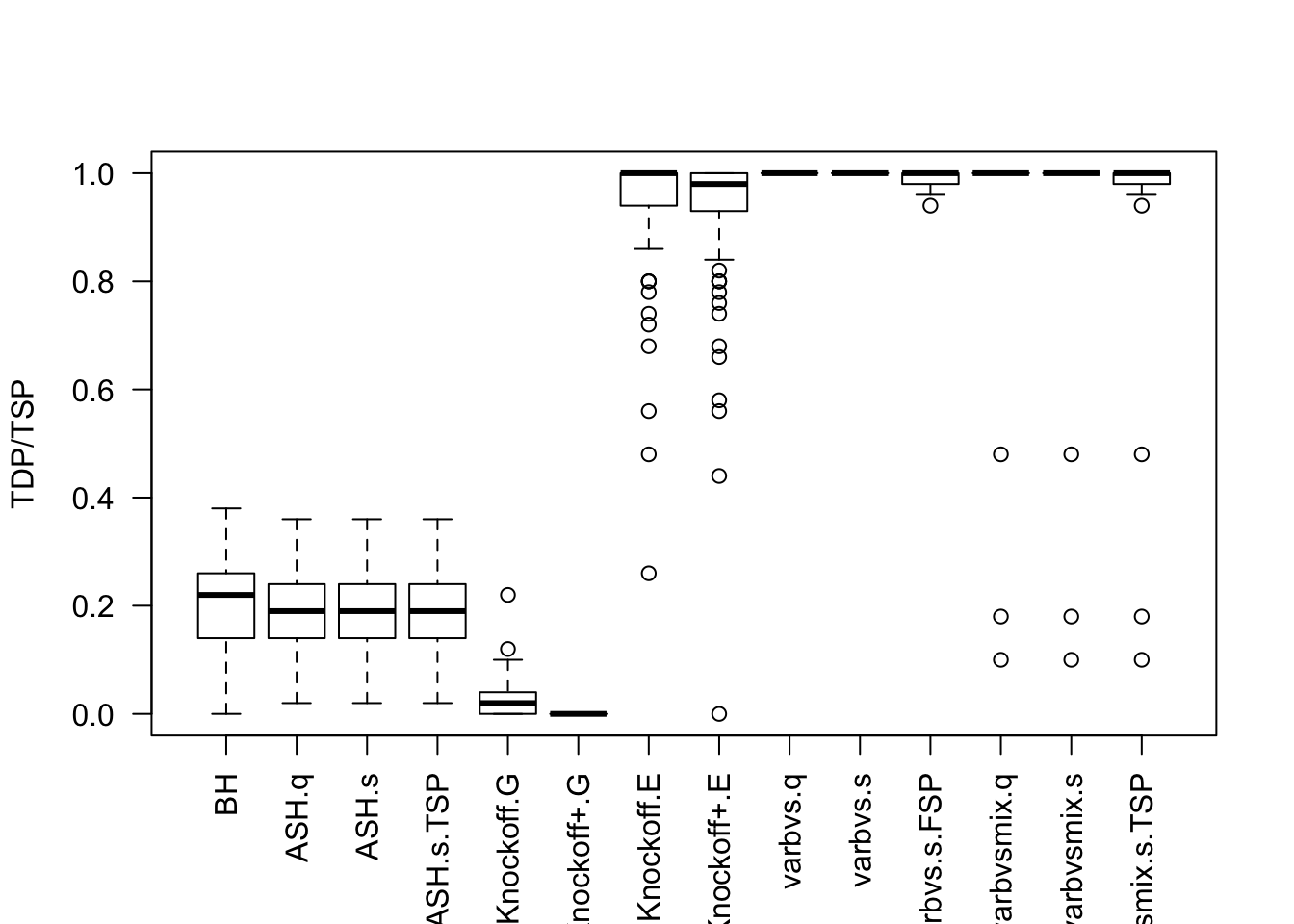 \(X_{n \times p}\) has correlation \(\Sigma_{ij} = \rho^{|i - j|}\). Each row is independently \(N(0, \frac1n\Sigma)\).
