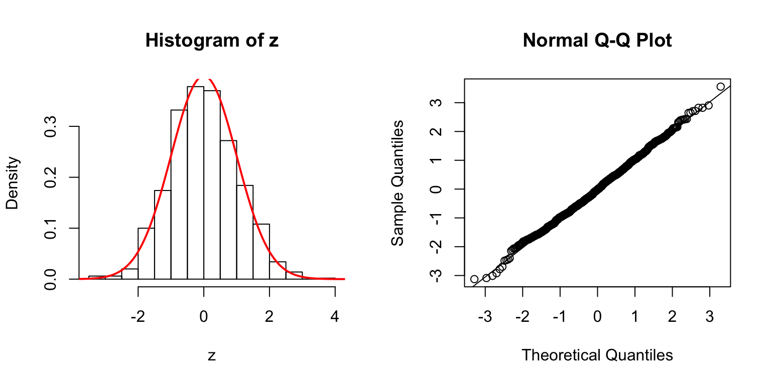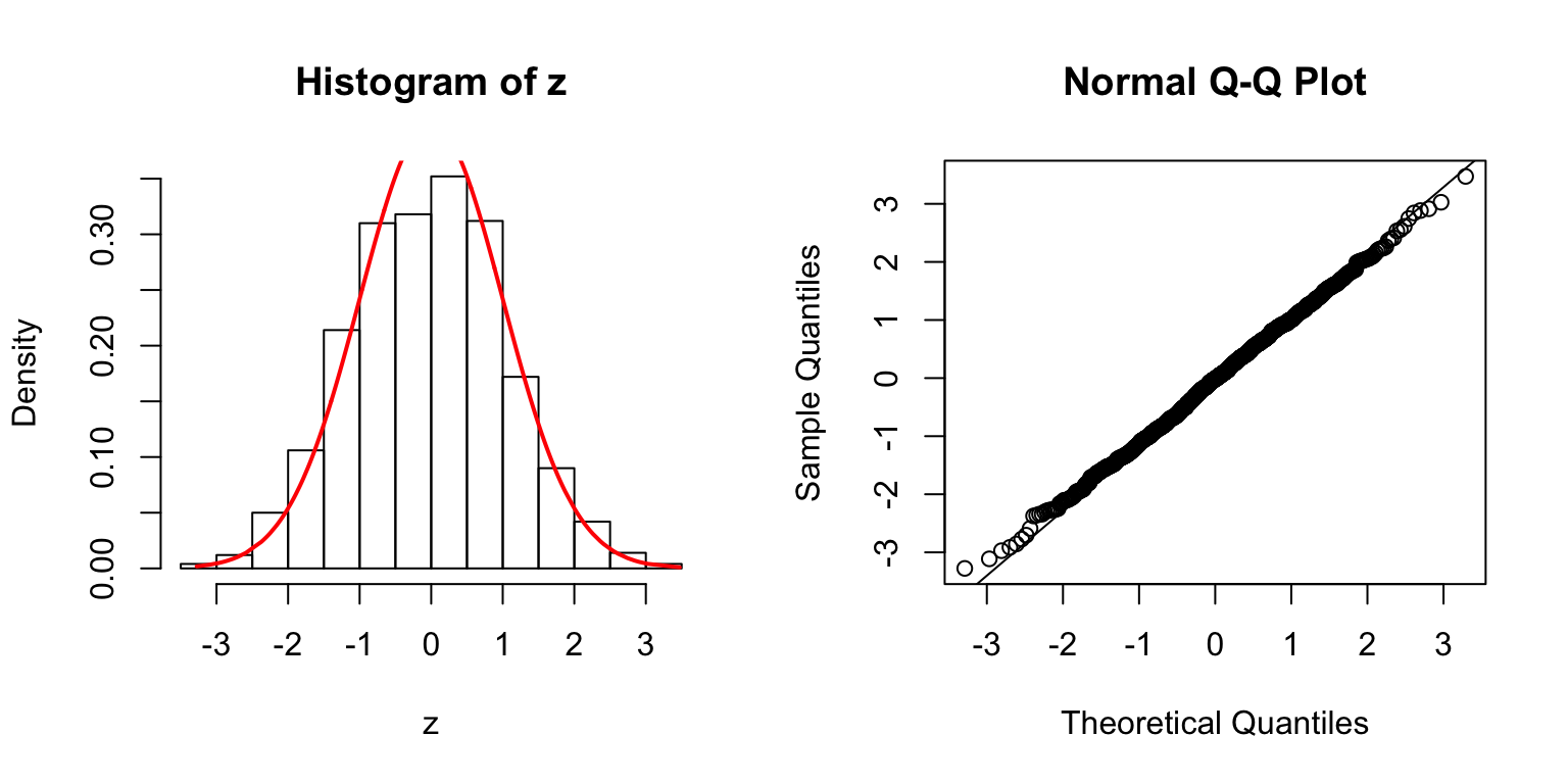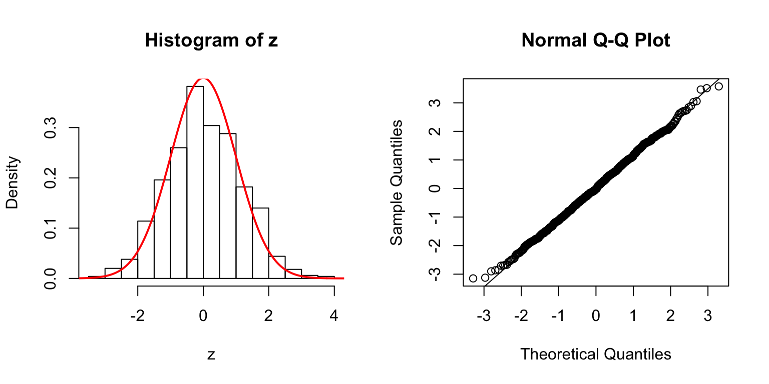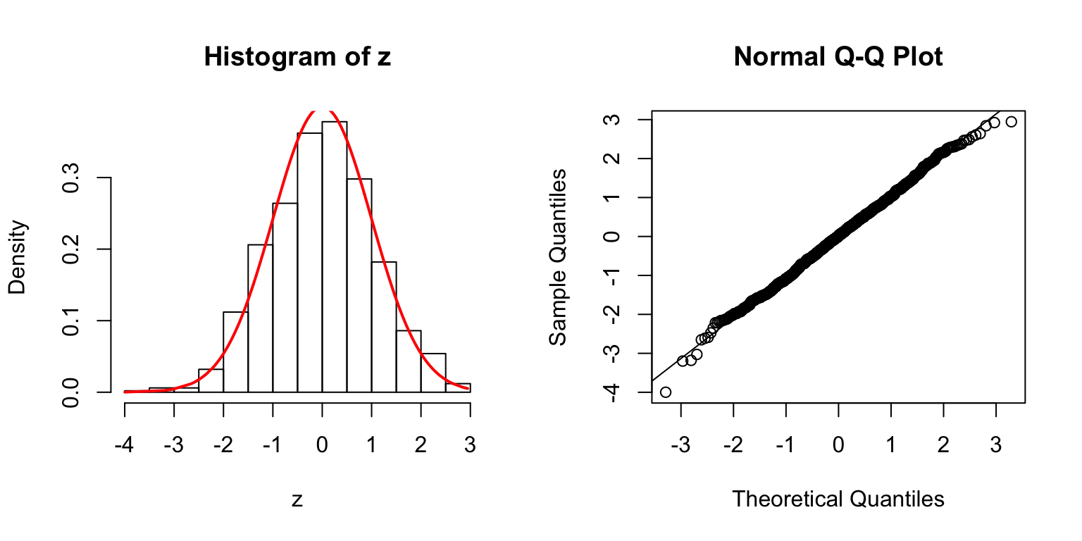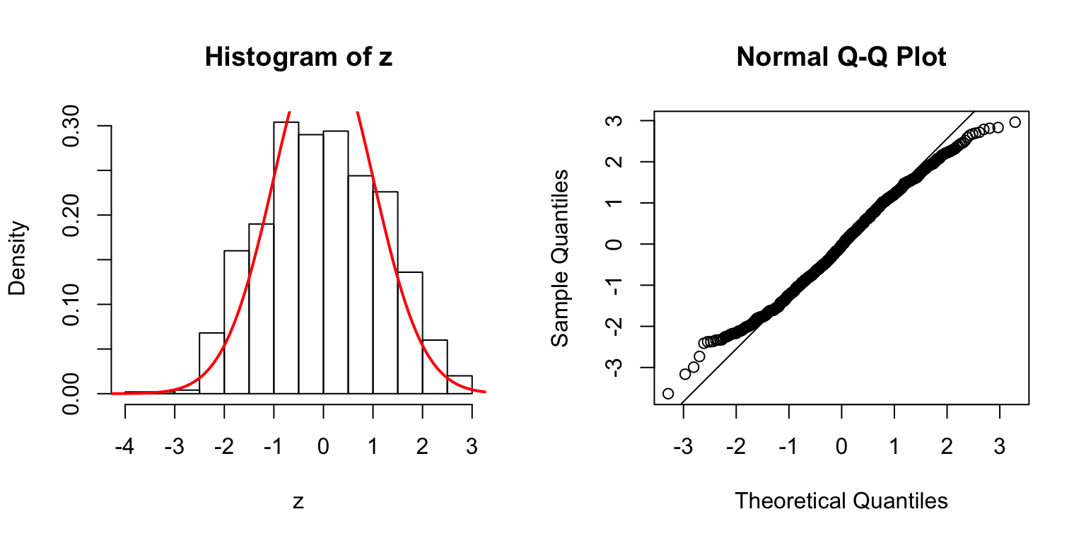 Data are generated in a global null setting by \[ y_n = X_{n \times p}\beta_p + e_n \] where \[ \begin{array}{c} n = 2000 \\ p = 1000 \\ e_n \sim N(0, 1) \\ \end{array} \] and \[ \beta_p \equiv 0 \]