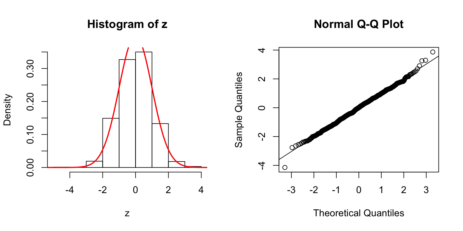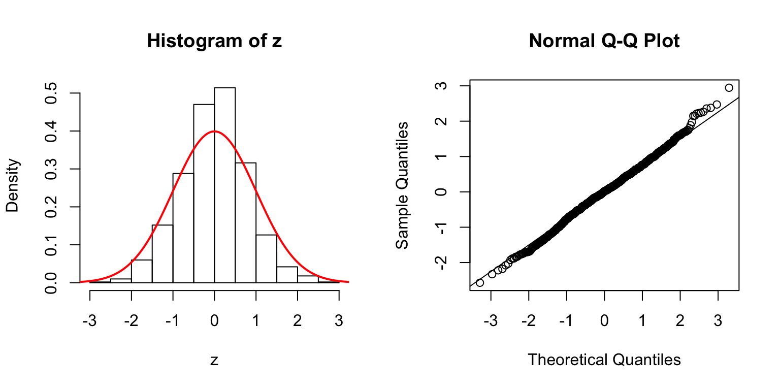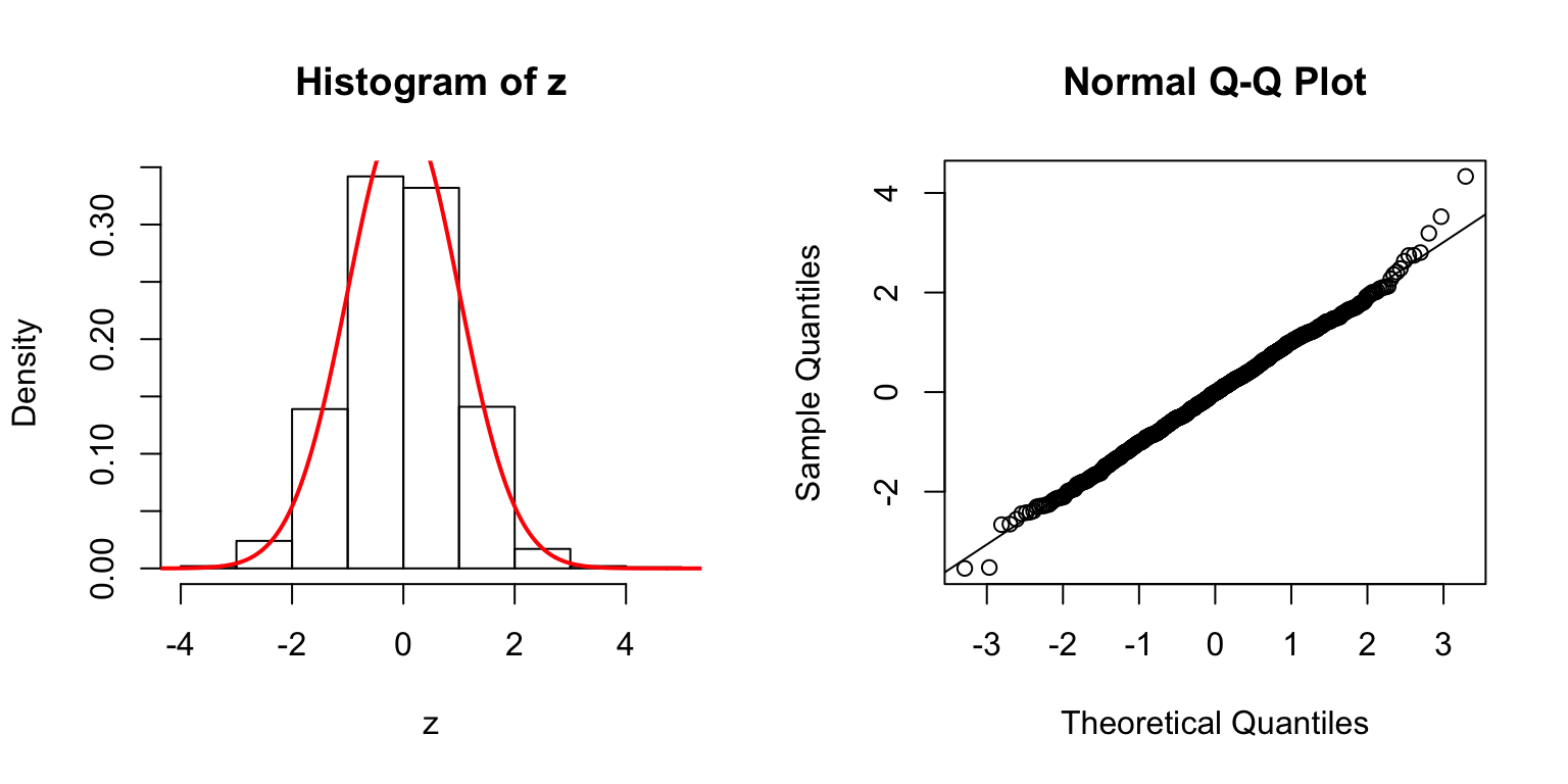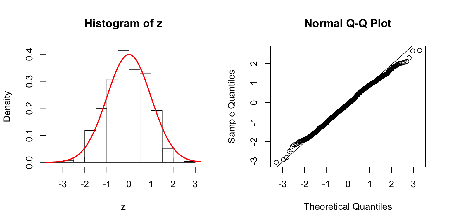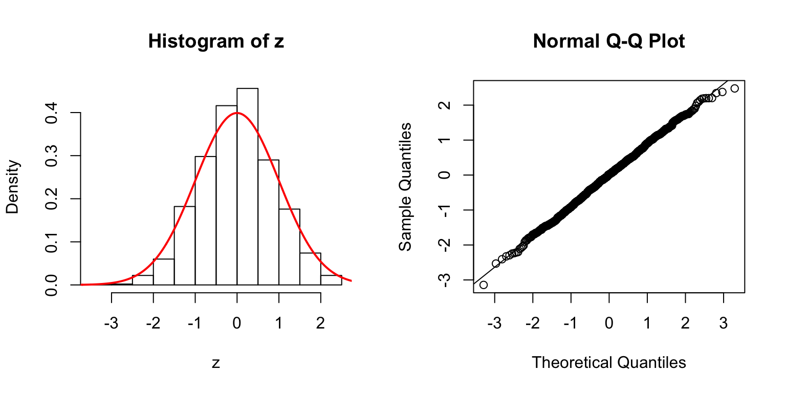 Data are generated in a global null setting by \[ y_n = X_{n \times p}\beta_p + e_n \] where \[ \begin{array}{c} n = 2000 \\ p = 1000 \\ e_n \sim N(0, 1) \\ \end{array} \] and \[ \beta_p \equiv 0 \]