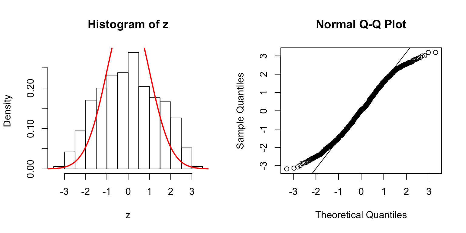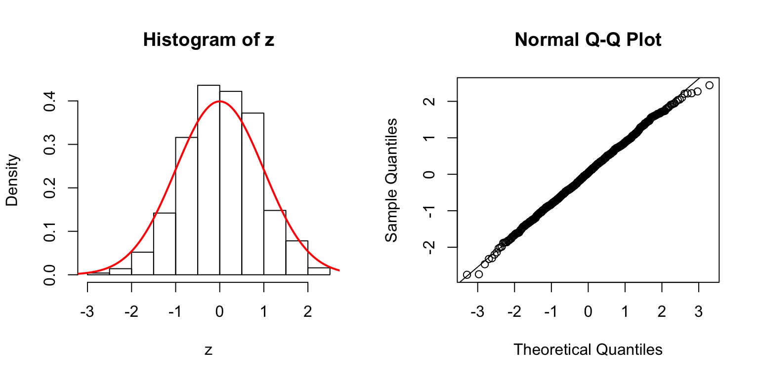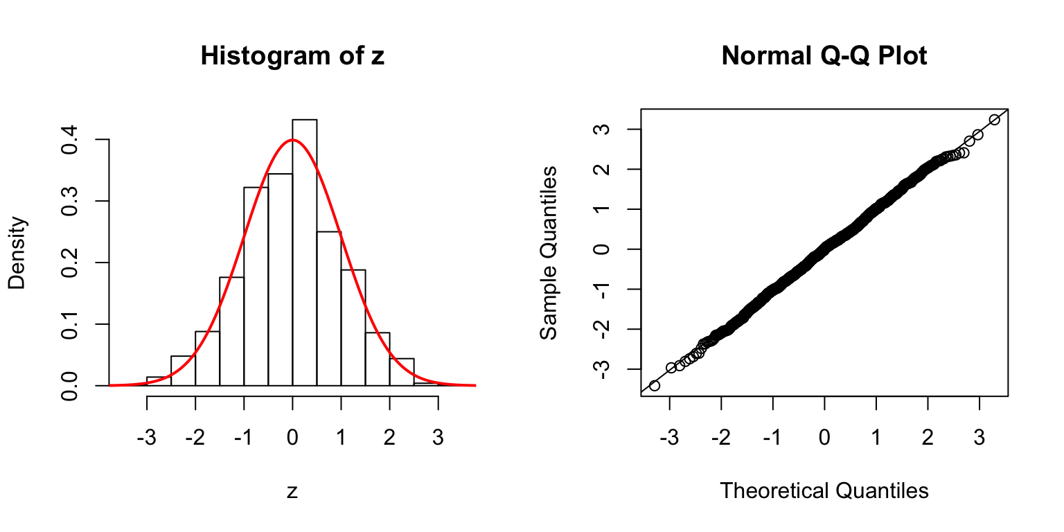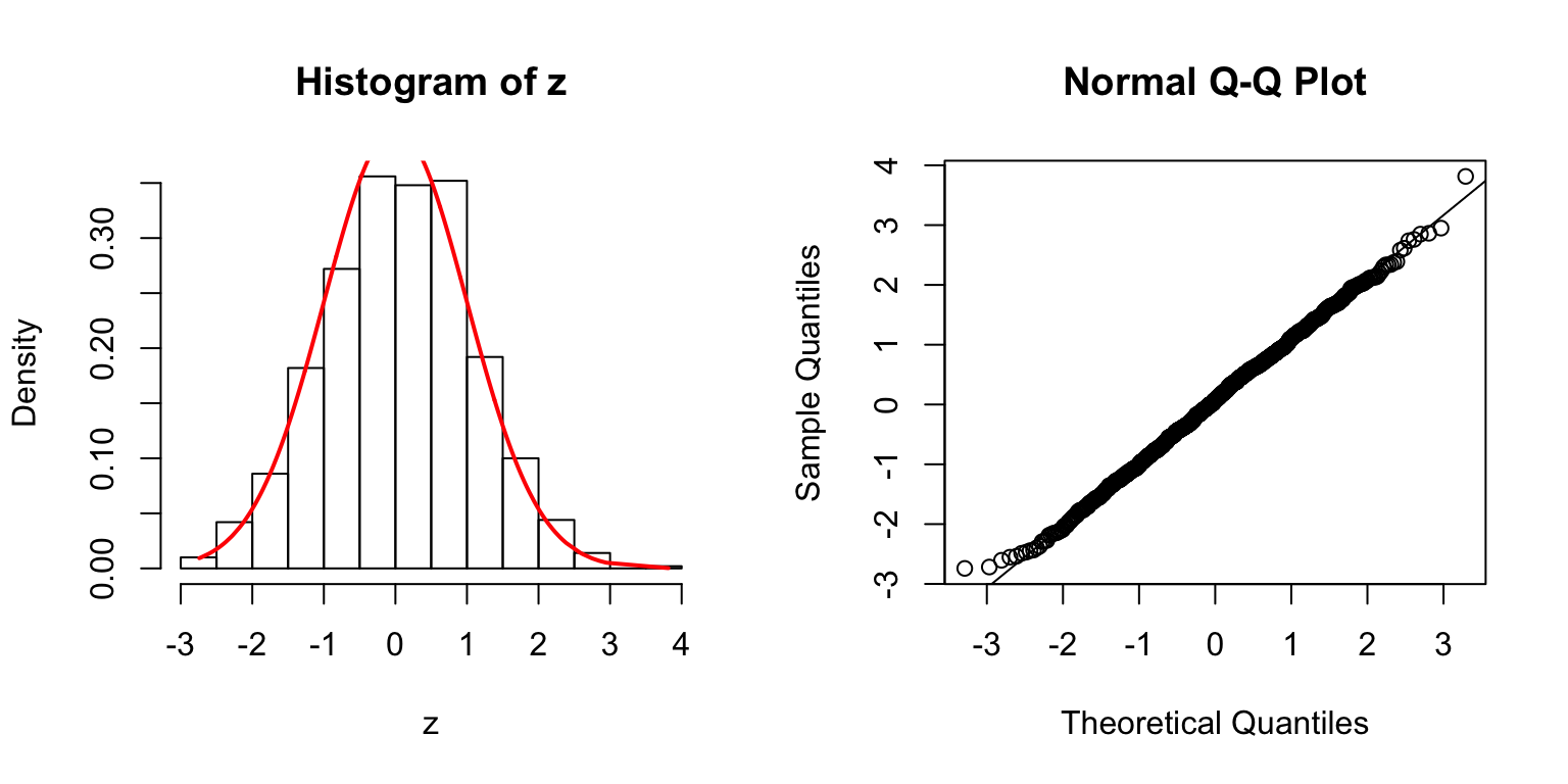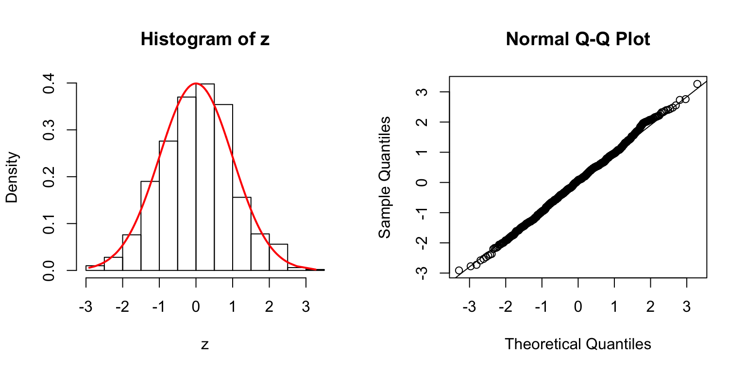 Data are generated in a global null setting by \[ y_n = X_{n \times p}\beta_p + e_n \] where \[ \begin{array}{c} n = 2000 \\ p = 1000 \\ e_n \sim N(0, 1) \\ \end{array} \] and \[ \beta_p \equiv 0 \]