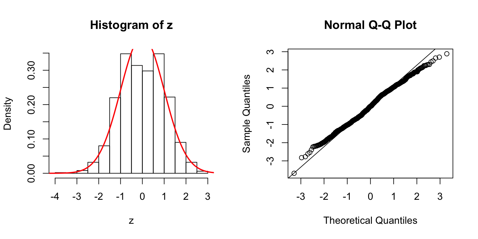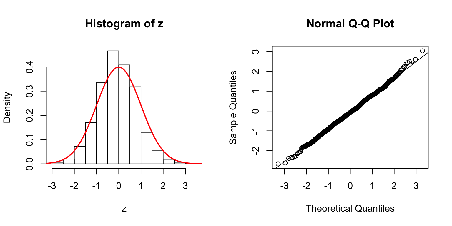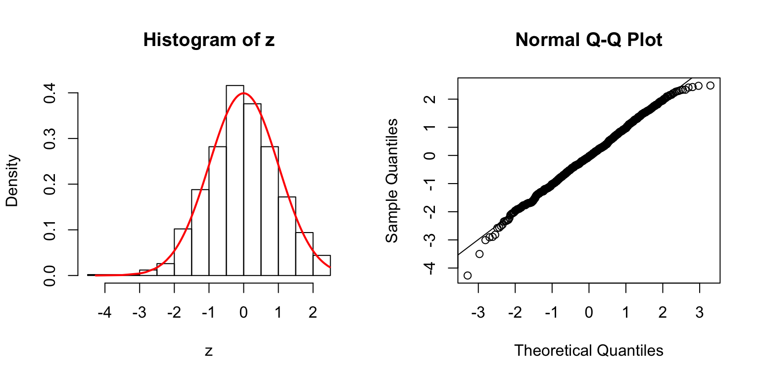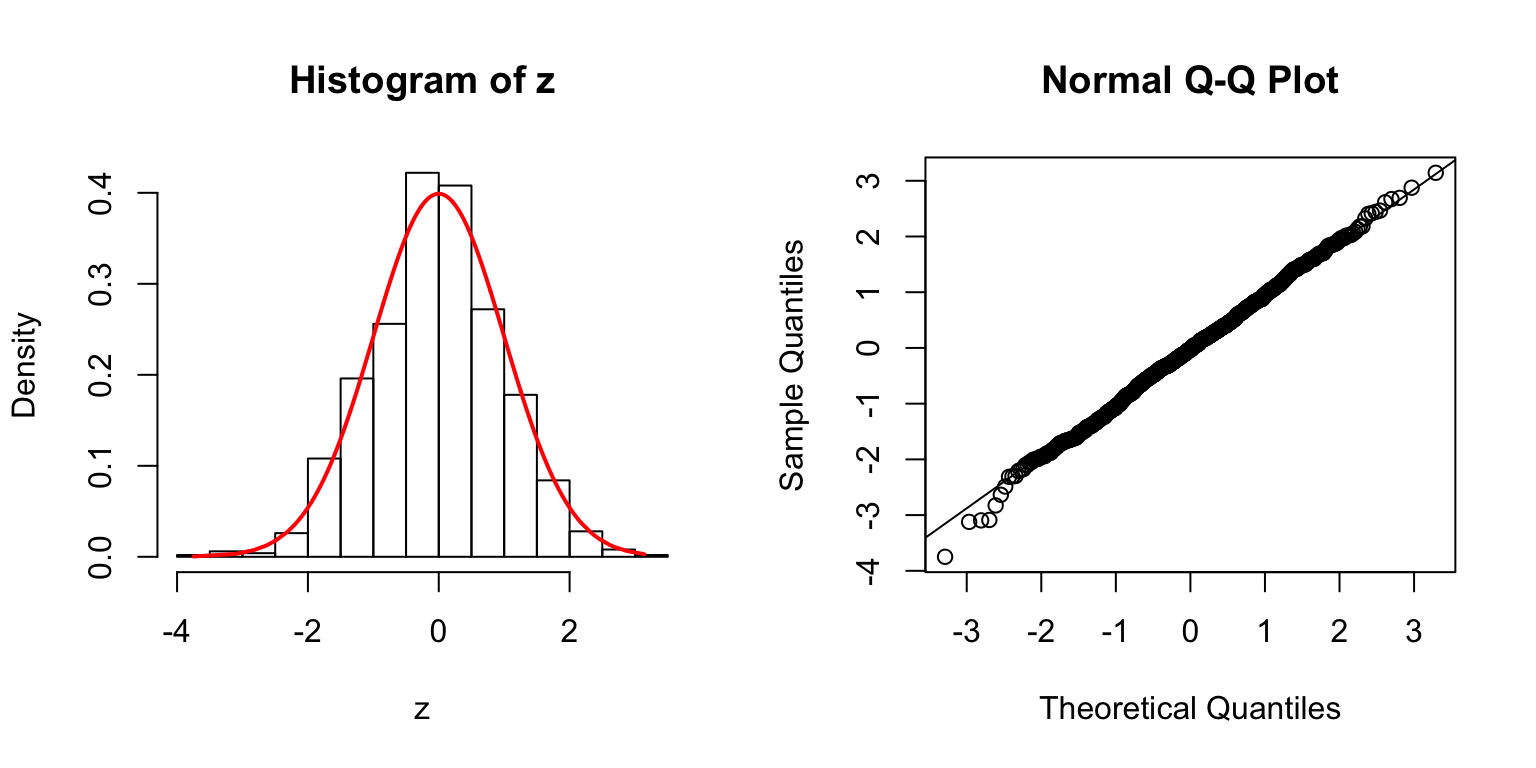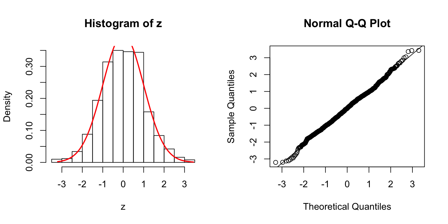 Data are generated in a global null setting by \[ y_n = X_{n \times p}\beta_p + e_n \] where \[ \begin{array}{c} n = 2000 \\ p = 1000 \\ e_n \sim N(0, 1) \\ \end{array} \] and \[ \beta_p \equiv 0 \]