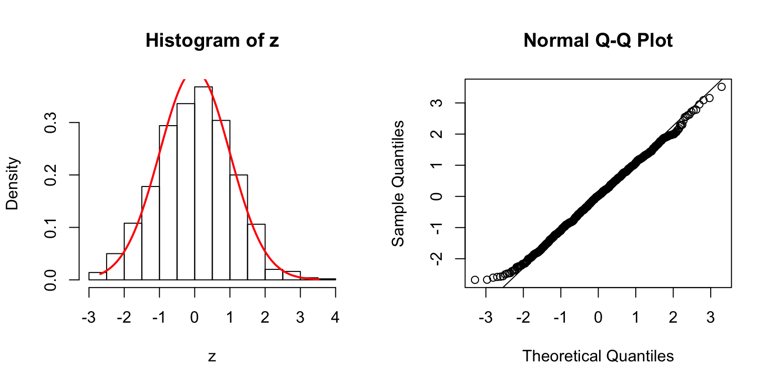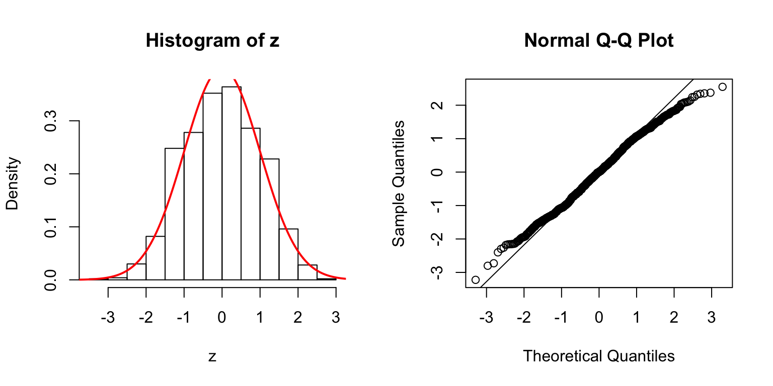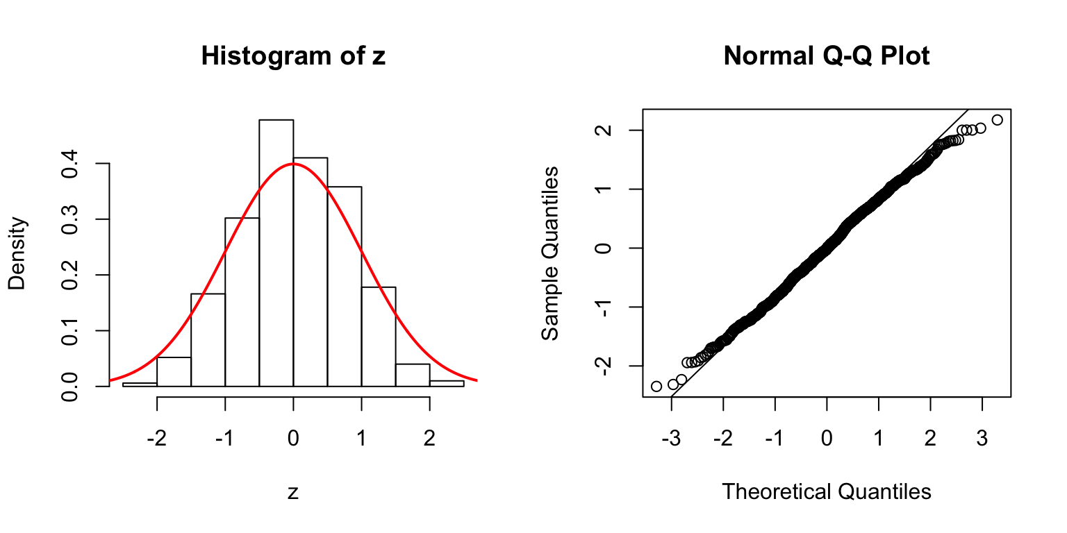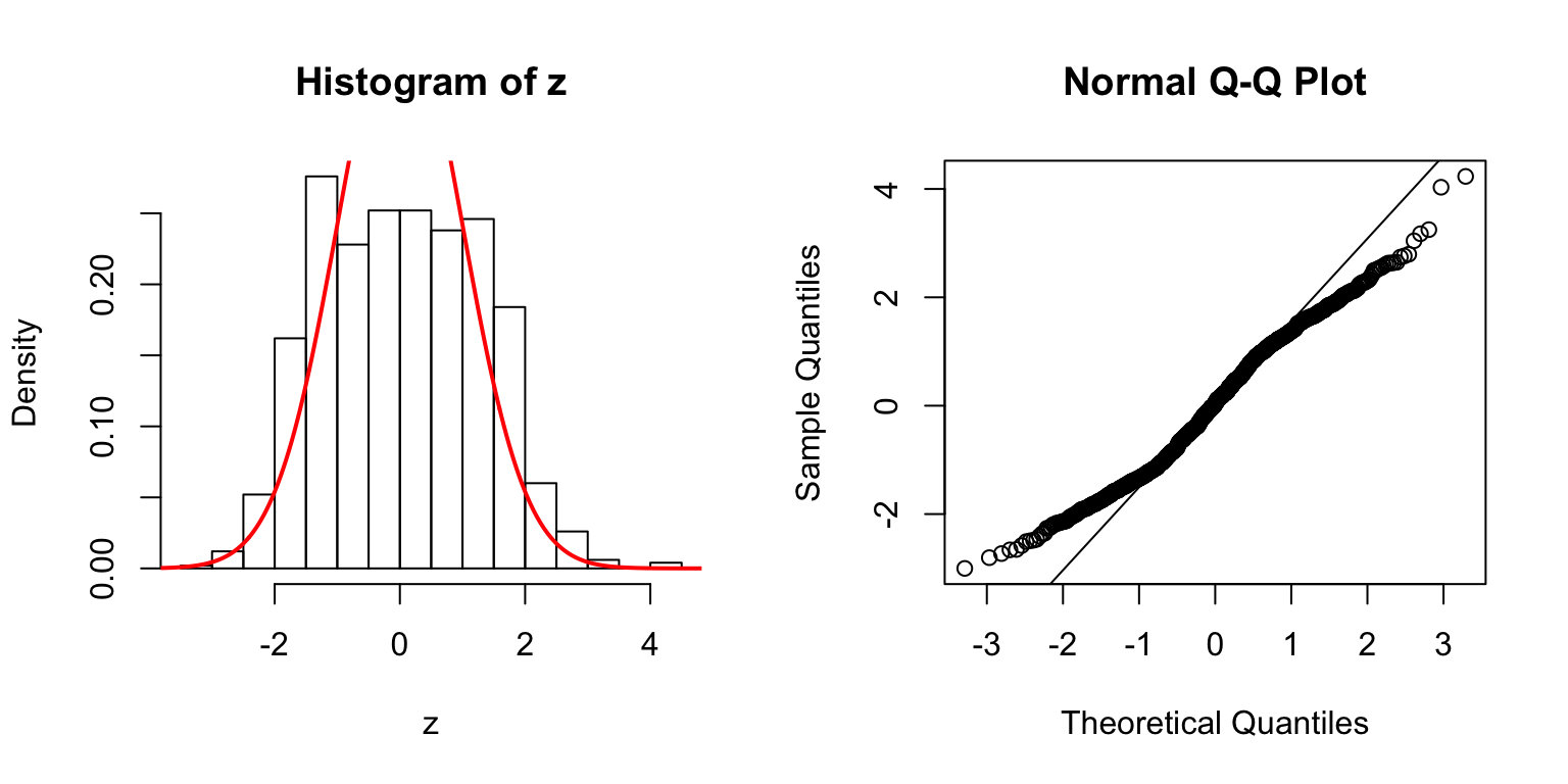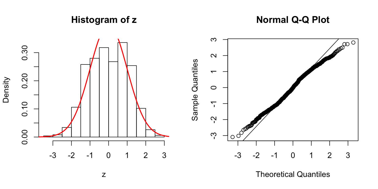 Data are generated in a global null setting by \[ y_n = X_{n \times p}\beta_p + e_n \] where \[ \begin{array}{c} n = 2000 \\ p = 1000 \\ e_n \sim N(0, 1) \\ \end{array} \] and \[ \beta_p \equiv 0 \]