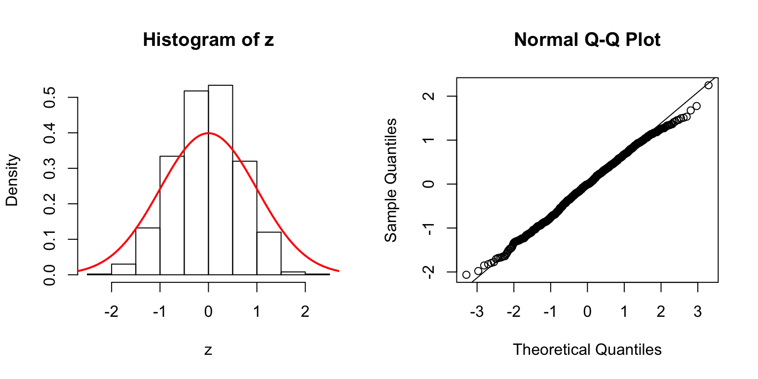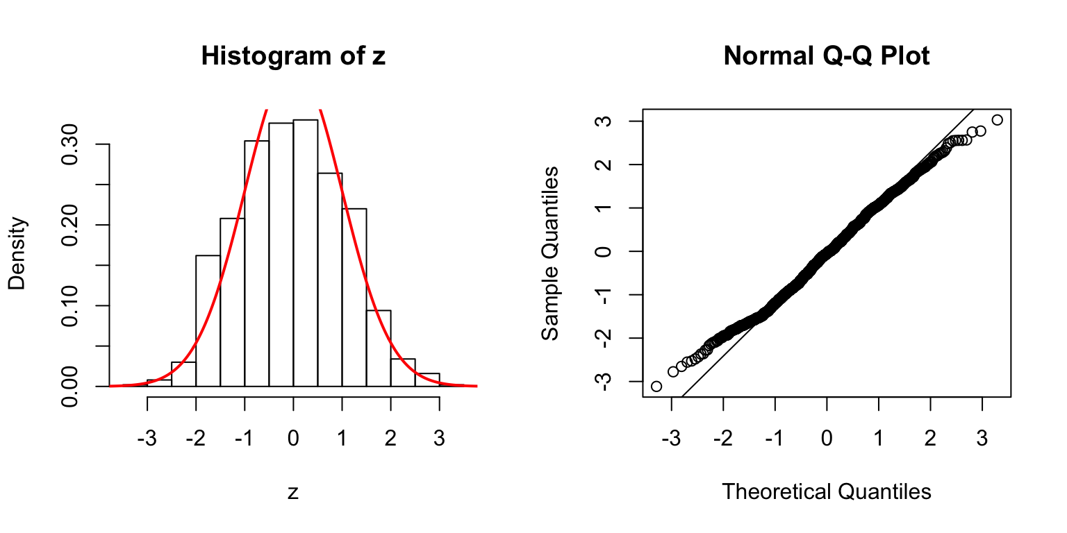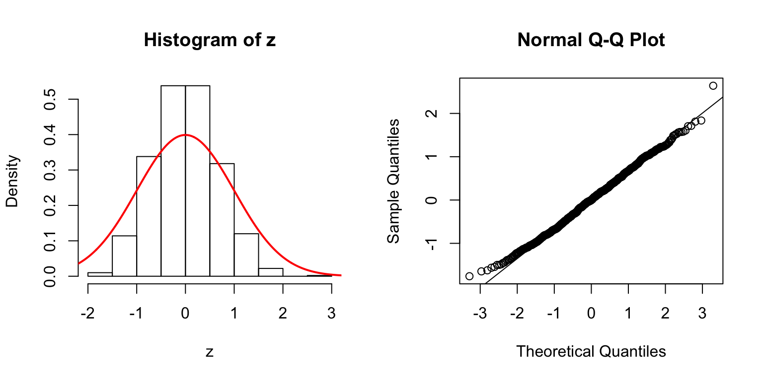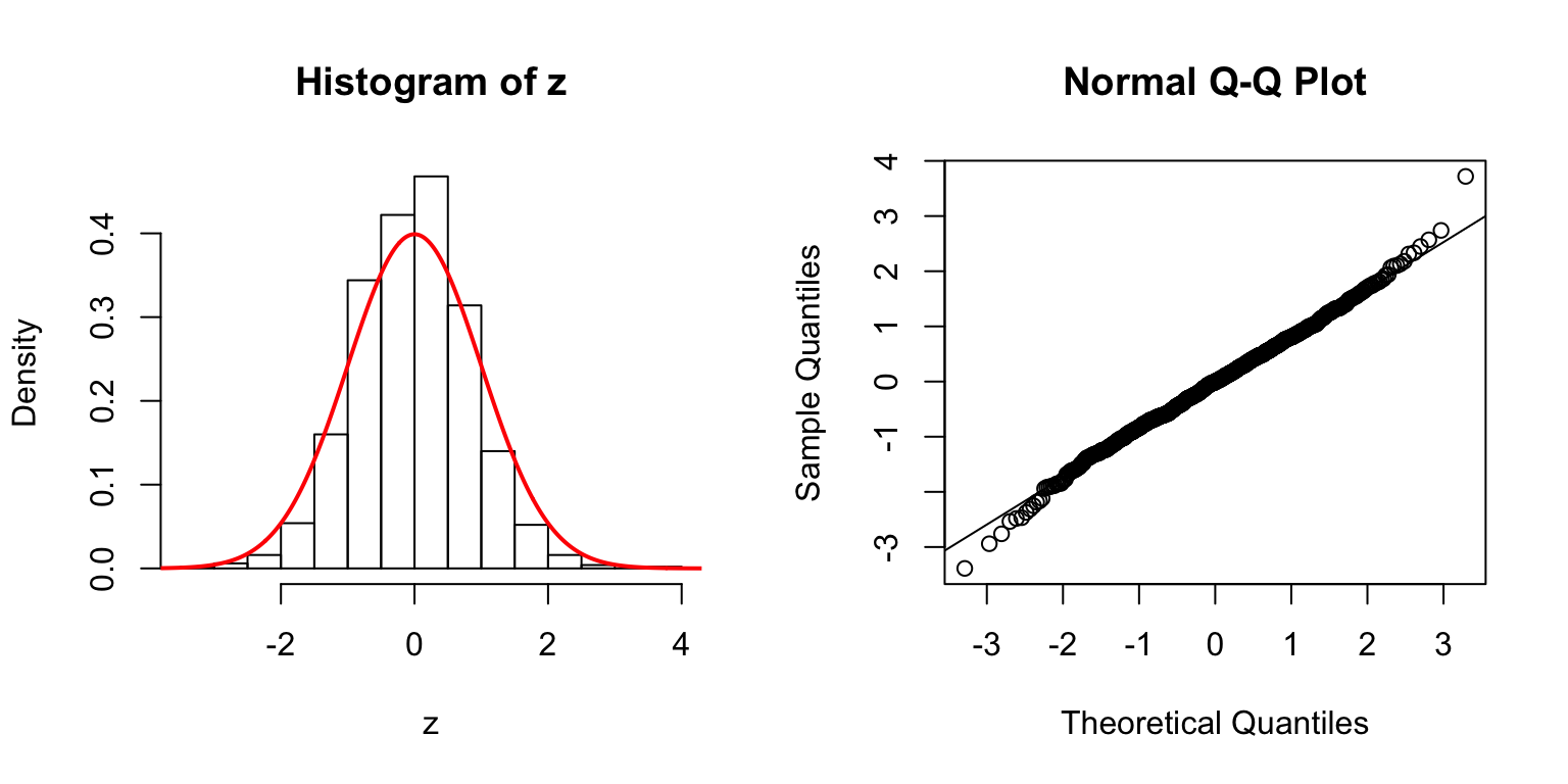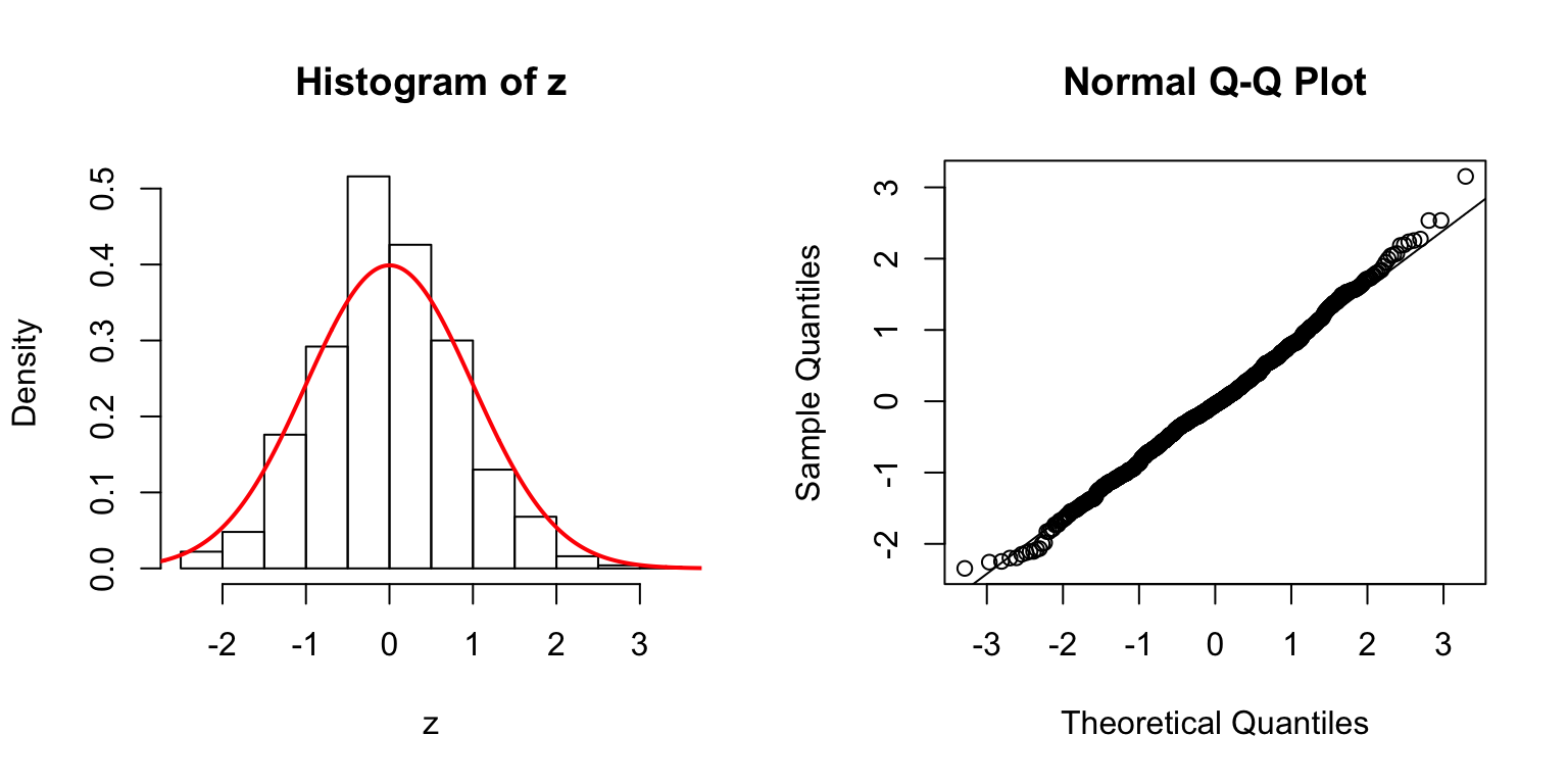 Data are generated in a global null setting by \[ y_n = X_{n \times p}\beta_p + e_n \] where \[ \begin{array}{c} n = 2000 \\ p = 1000 \\ e_n \sim N(0, 1) \\ \end{array} \] and \[ \beta_p \equiv 0 \]