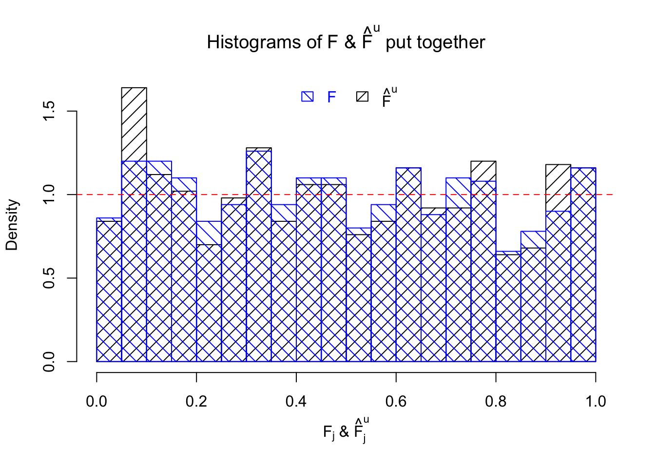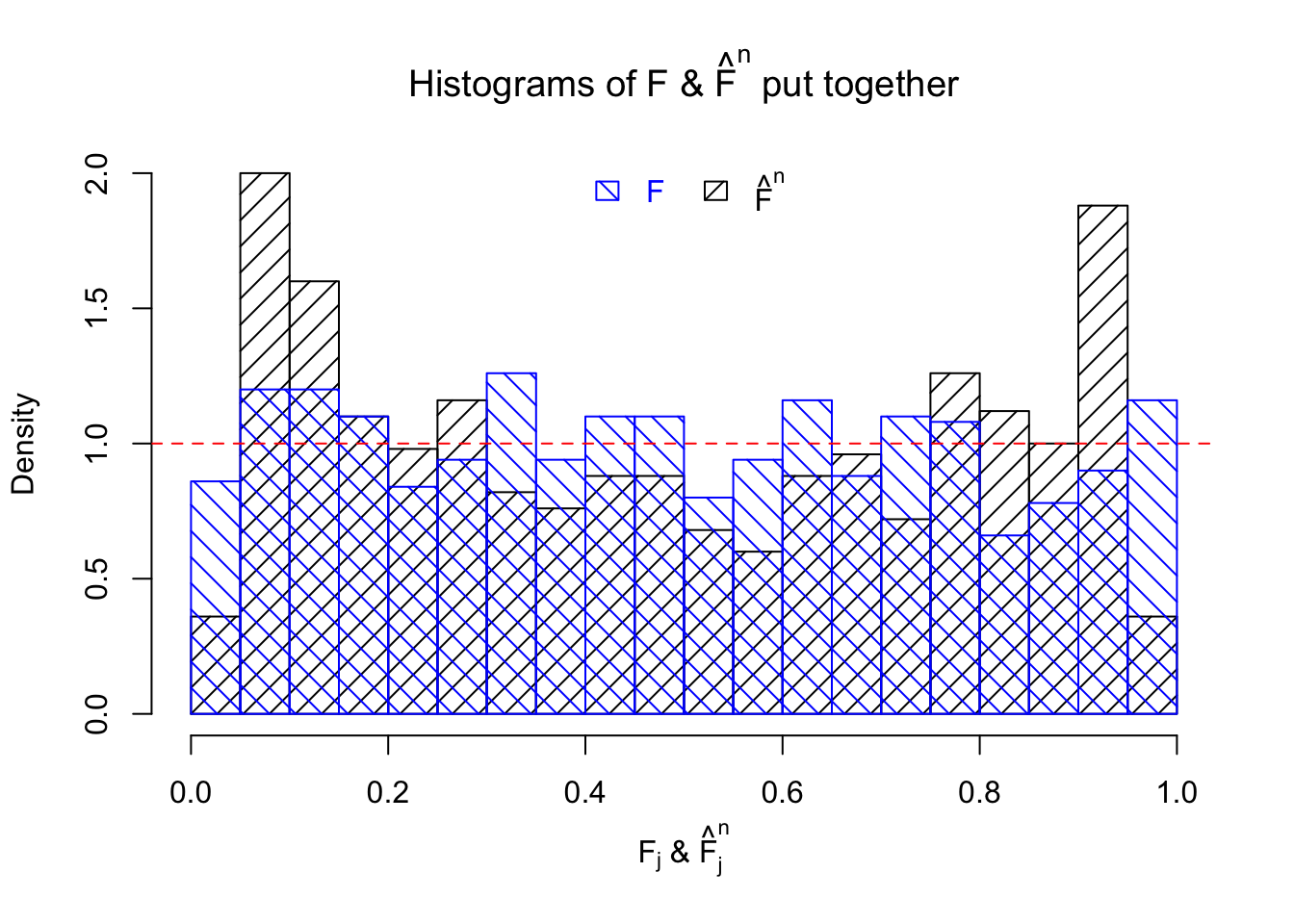 legend(x = 0.5, y = par('usr')[4], legend = c("F", expression(hat("F"))), density = 10, angle = c(135, 45), border = c("blue", "black"), ncol = 2, bty = "n", text.col = c("blue", "black"), yjust = 0.75, fill = c("blue", "black"), xjust = 0.5)