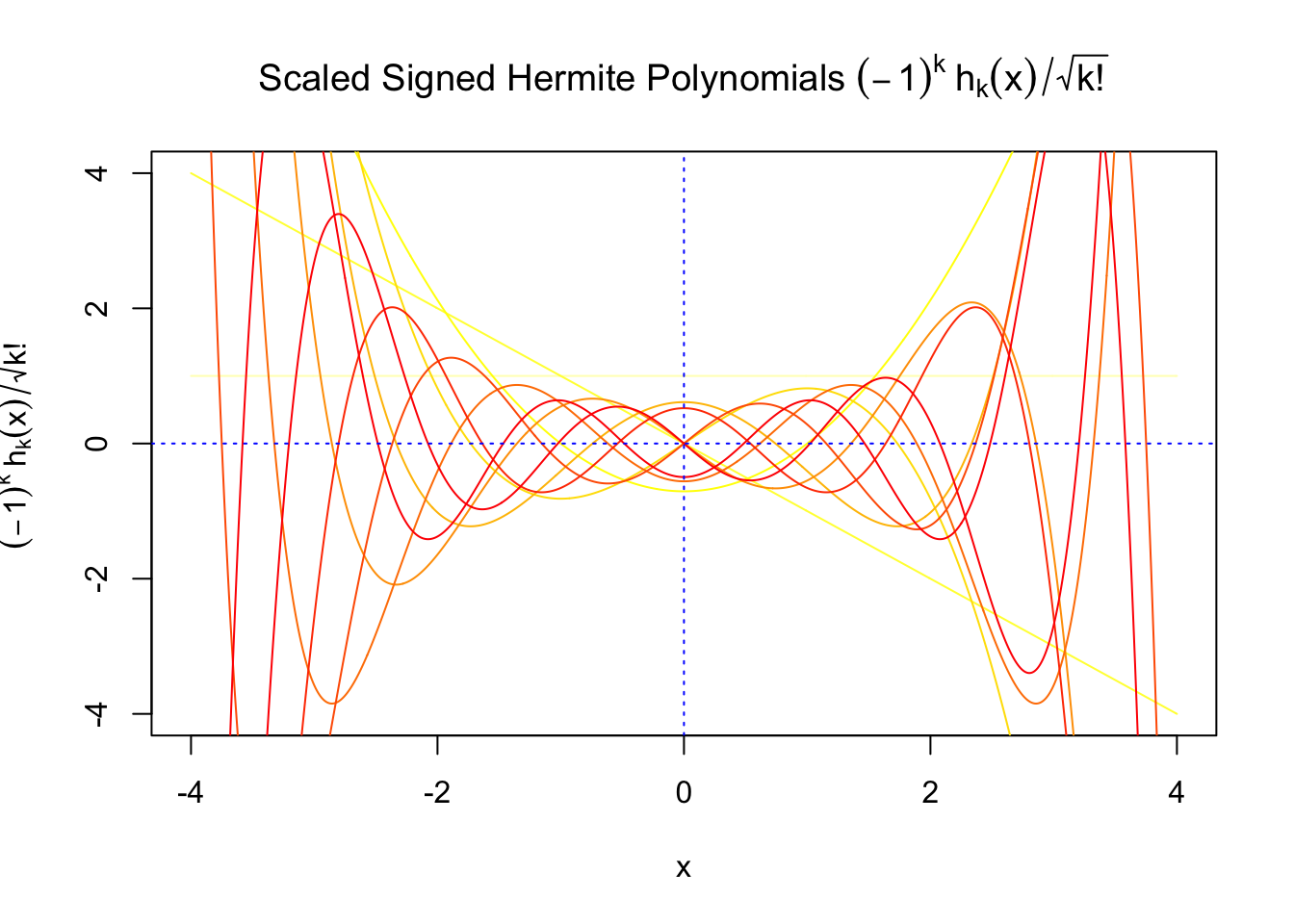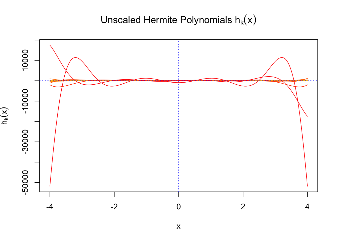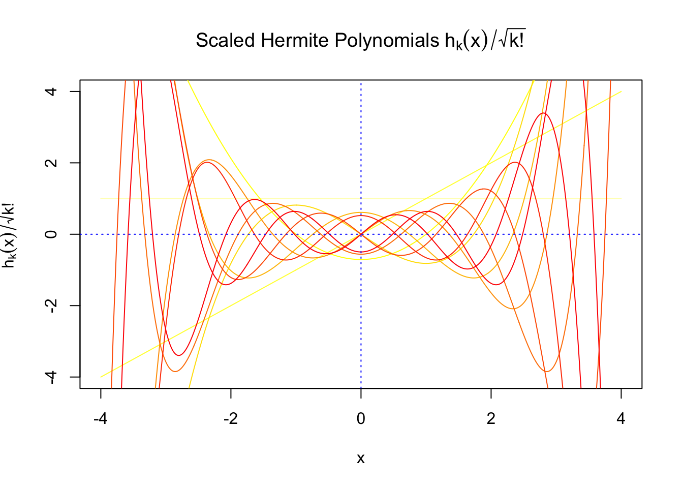\[ \int_{-\infty}^\infty h_k(x)h_l(x)\varphi(x)dx = \begin{cases} k! & k = l \\0 & k\neq l \end{cases} \] This orthogonality gives us