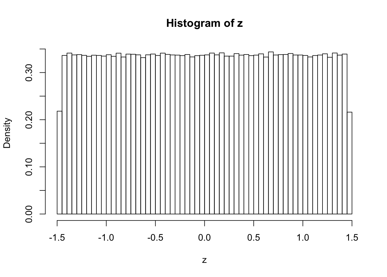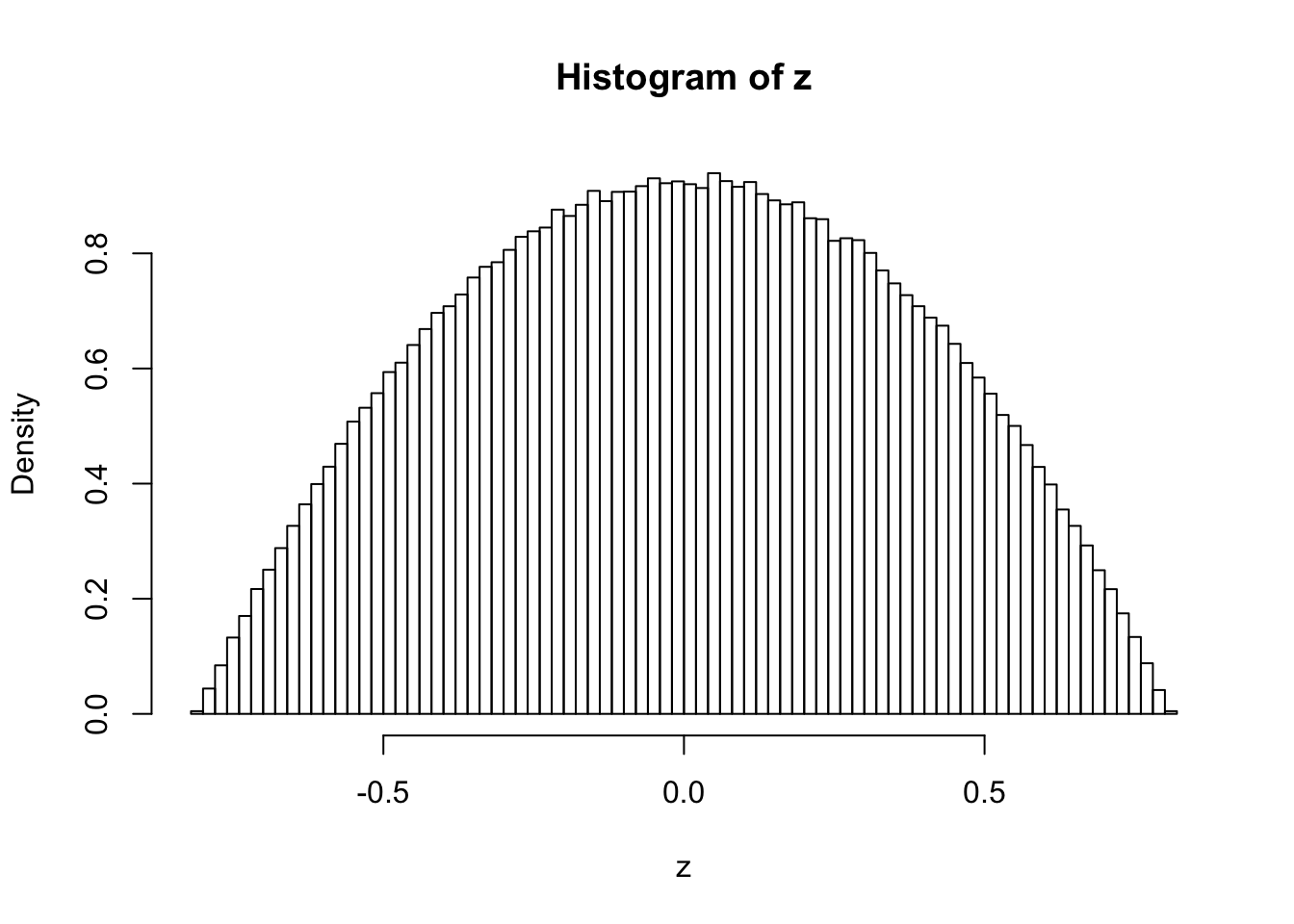 hist(z, breaks = 100, prob = TRUE)