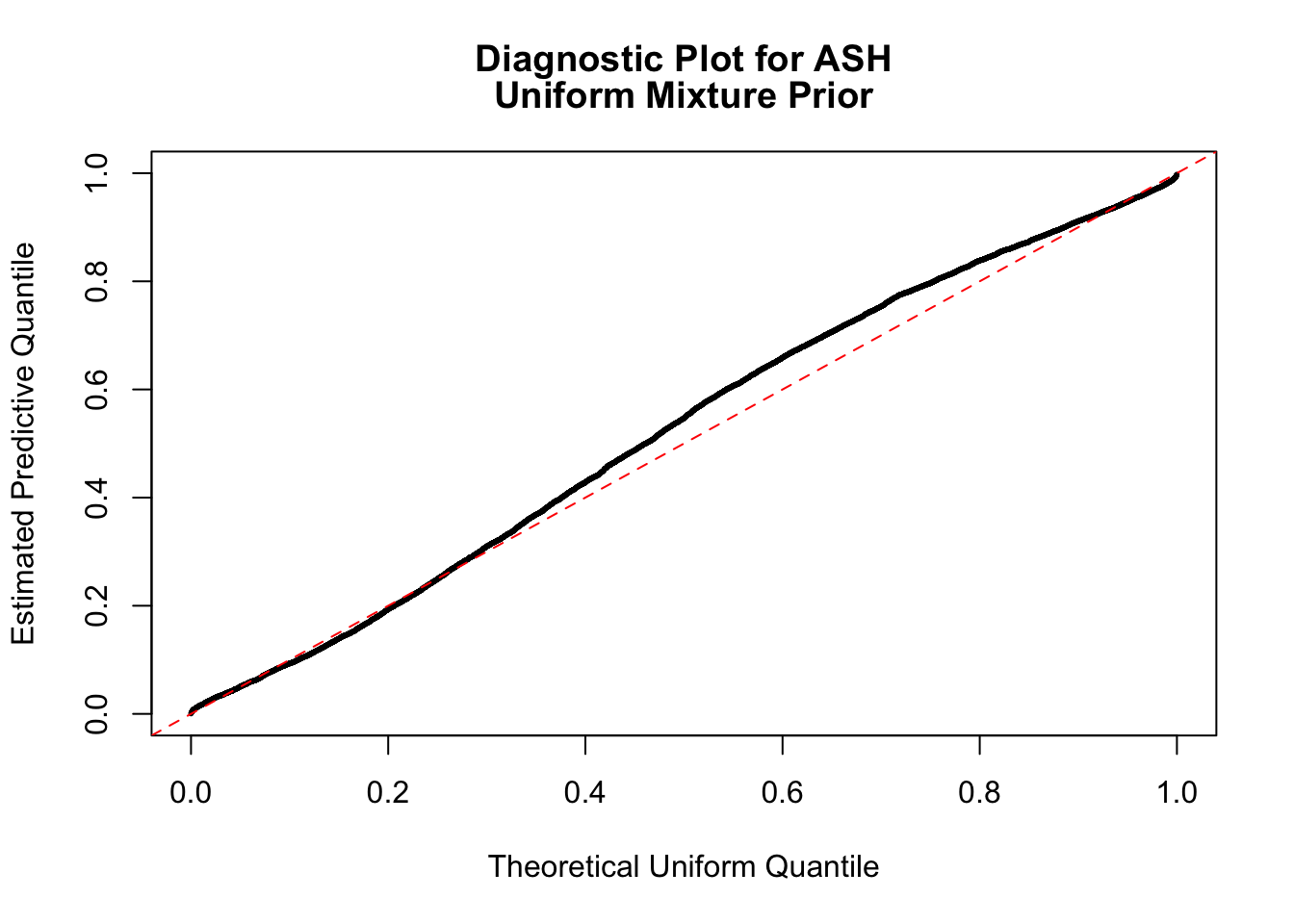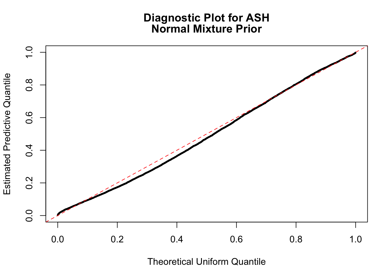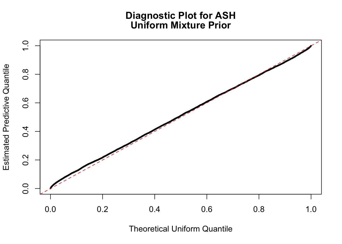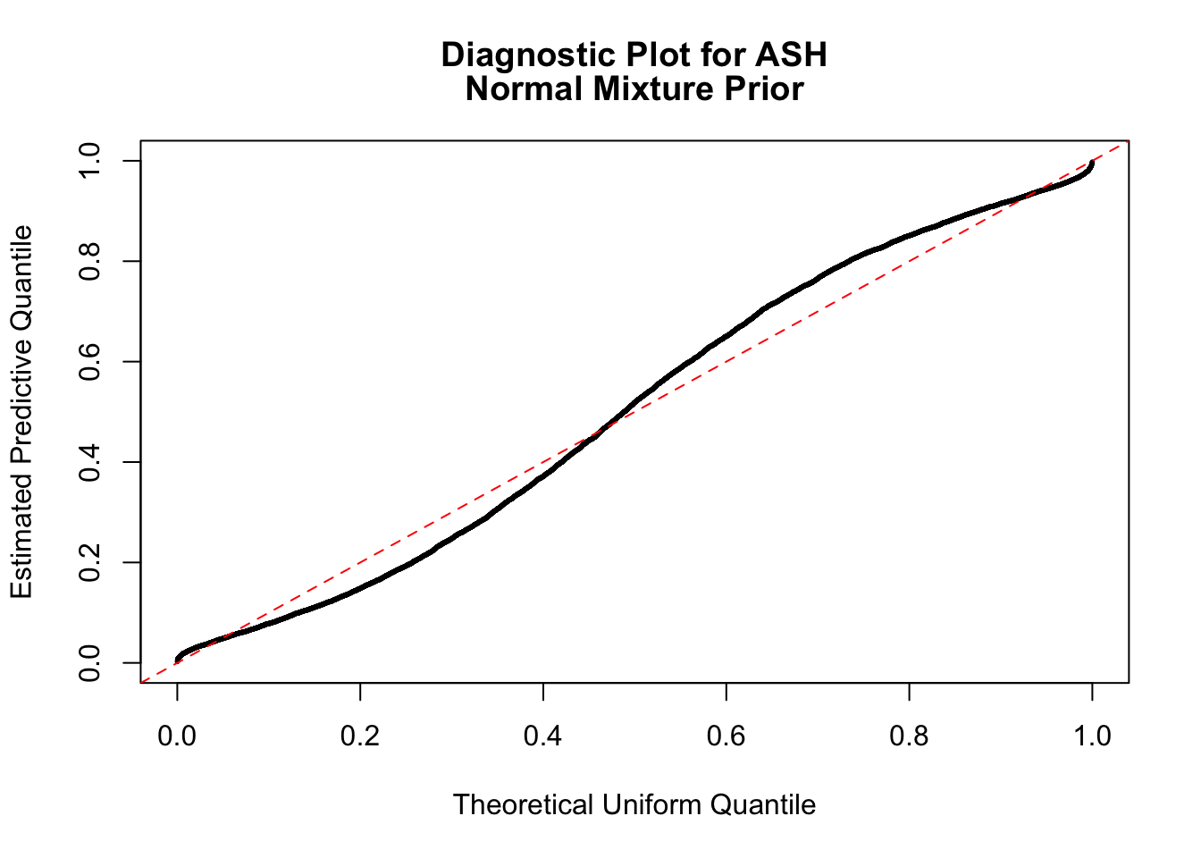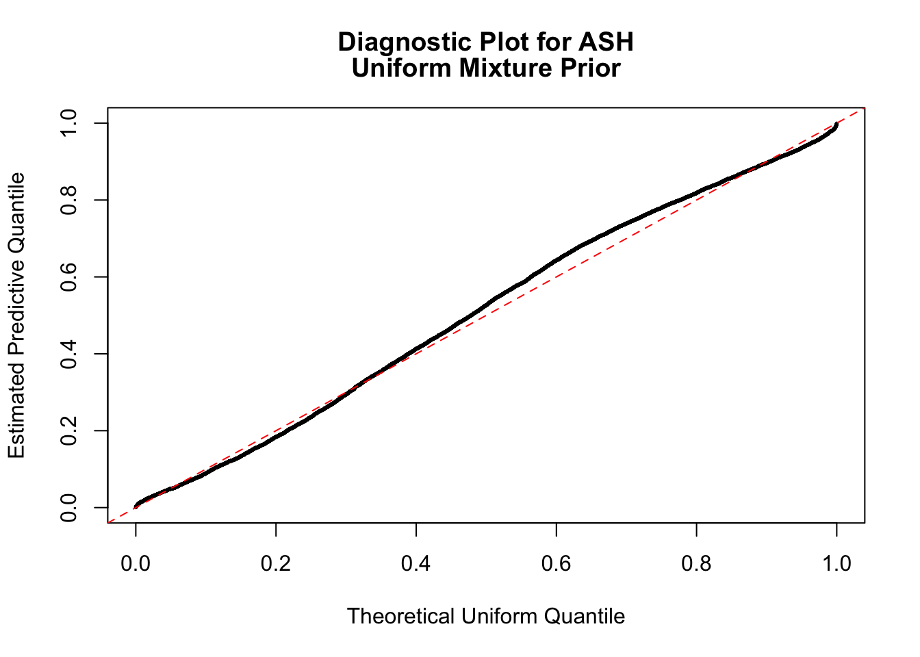 N0. 5 : Data Set 817 ; Number of False Discoveries by BH: 1 ; Number of False Discoveries by ASH's lfsr: 0 ; pihat0 = 1