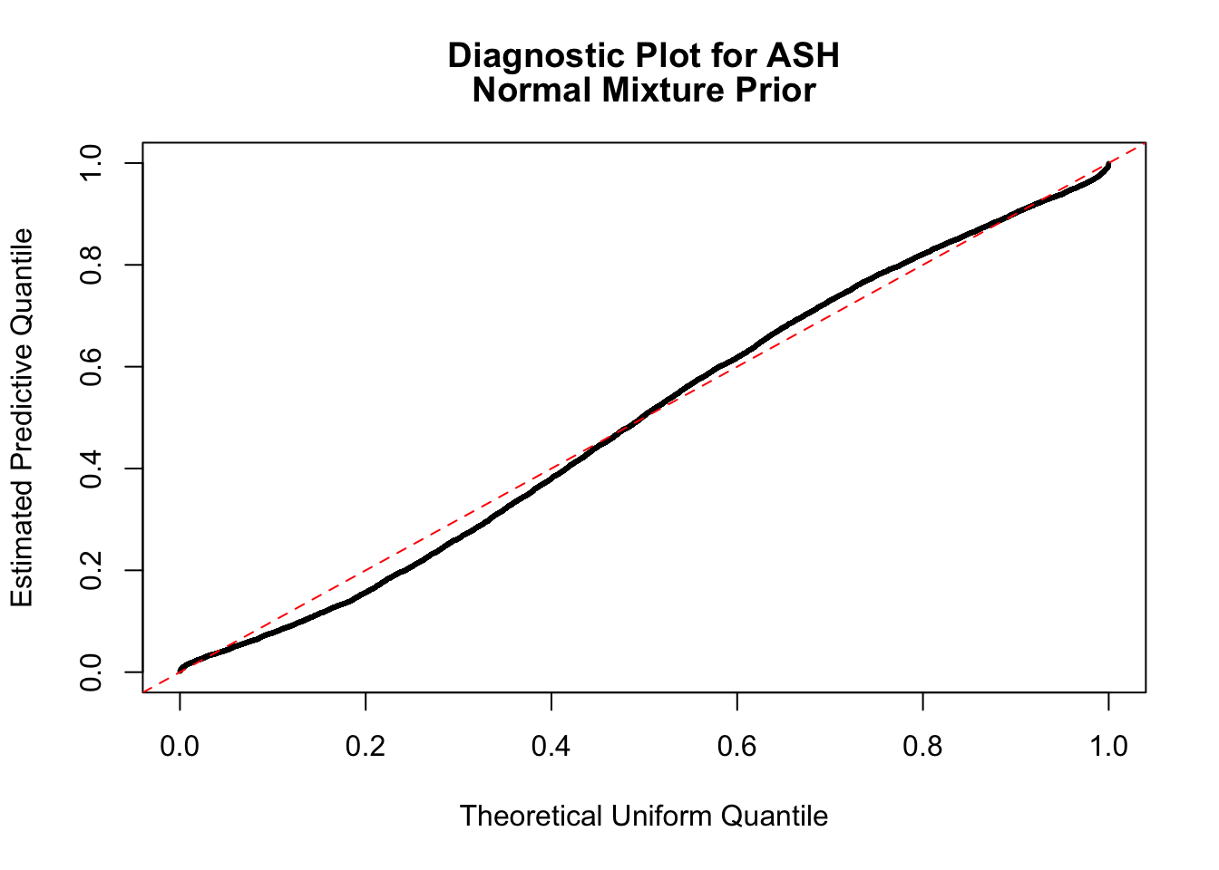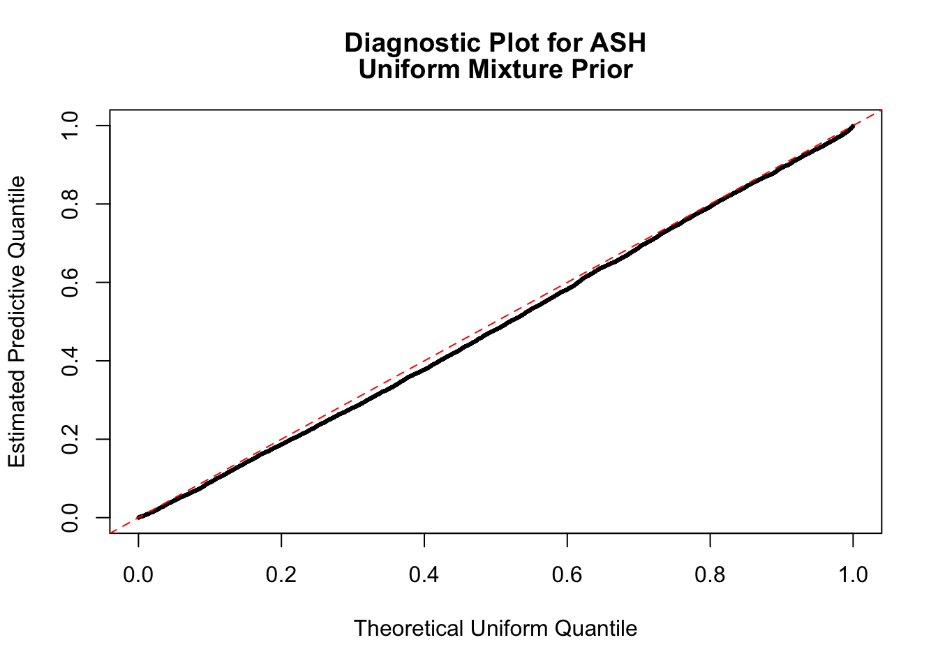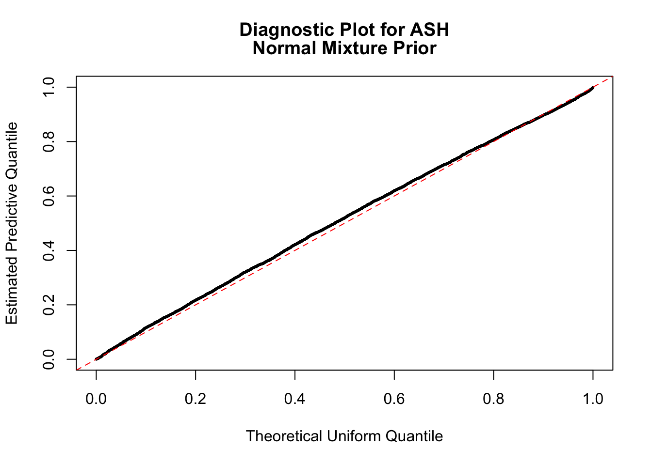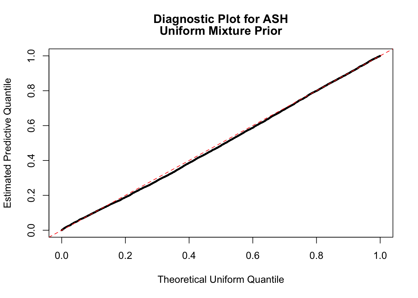N0. 5 : Data Set 817 ; Number of False Discoveries by BH: 1 ; Number of False Discoveries by ASH's lfsr: 0 ; pihat0 = 1