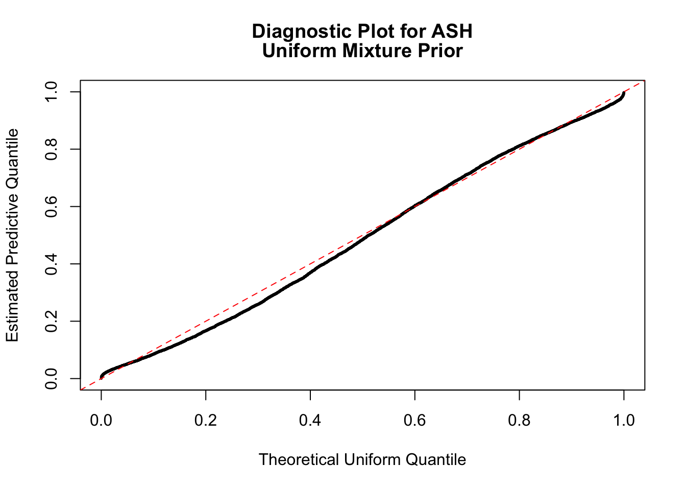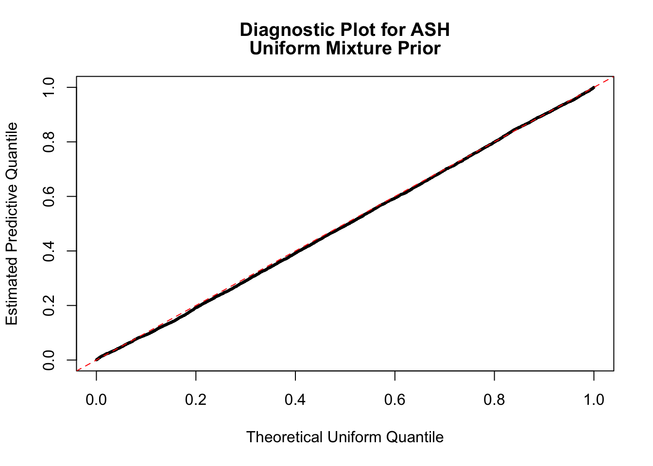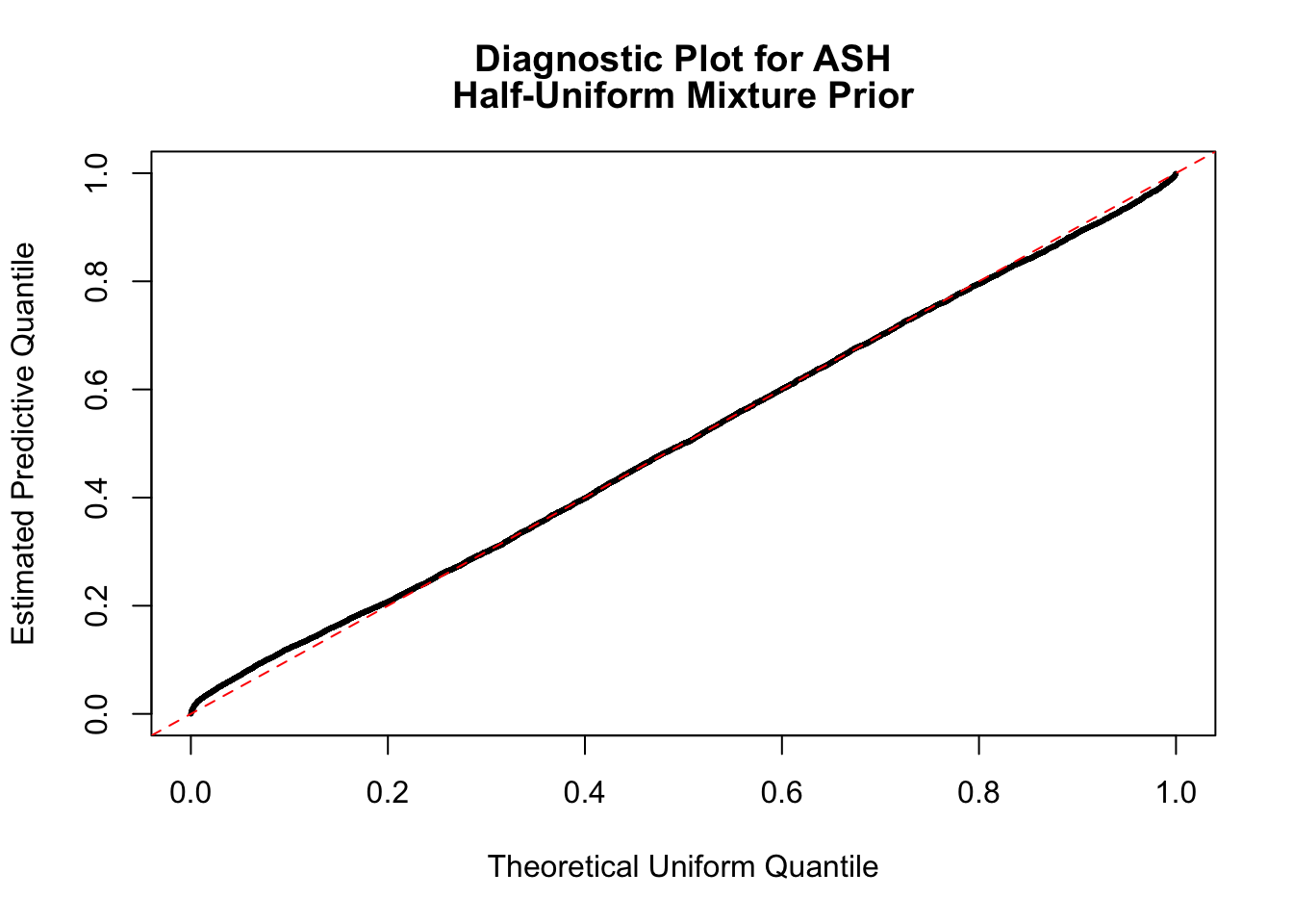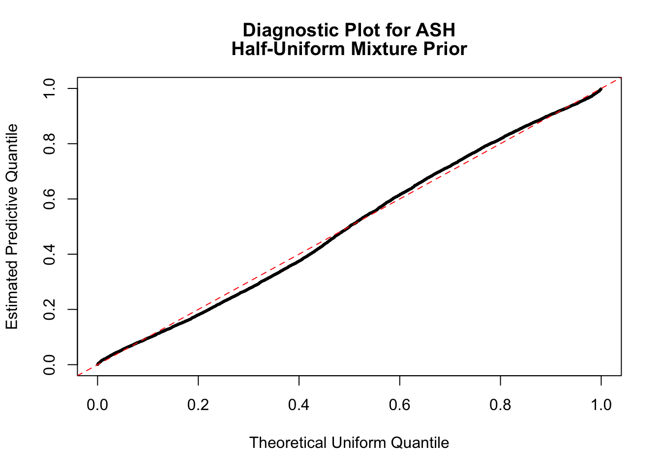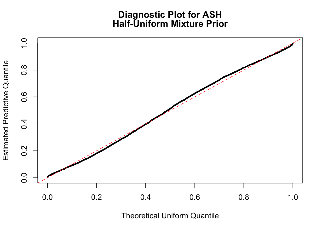 N0. 5 : Data Set 817 ; Number of False Discoveries by BH: 1 ; Number of False Discoveries by ASH's lfsr: 0 ; pihat0 = 1