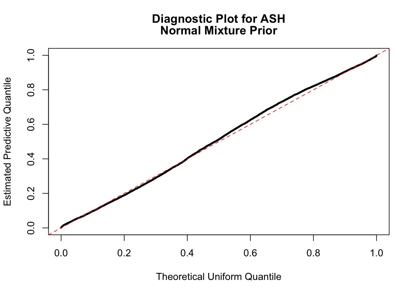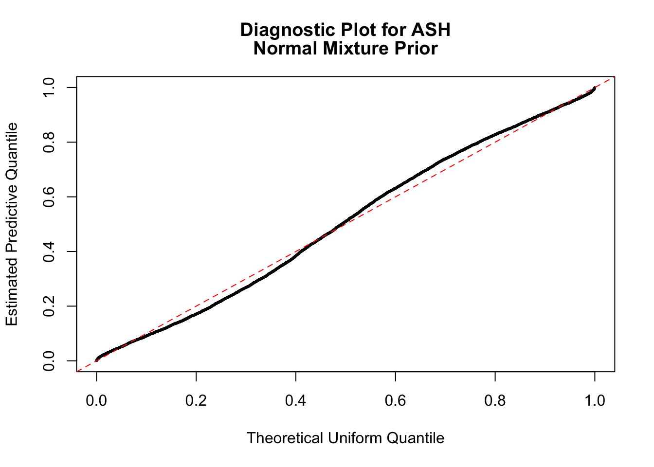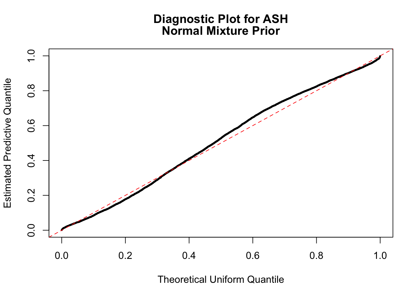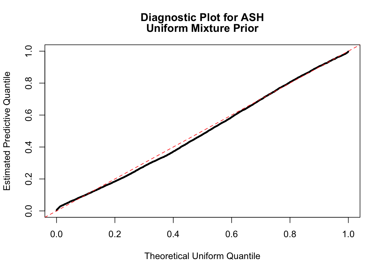 N0. 5 : Data Set 817 ; Number of False Discoveries by BH: 1 ; Number of False Discoveries by ASH's lfsr: 0 ; pihat0 = 1
