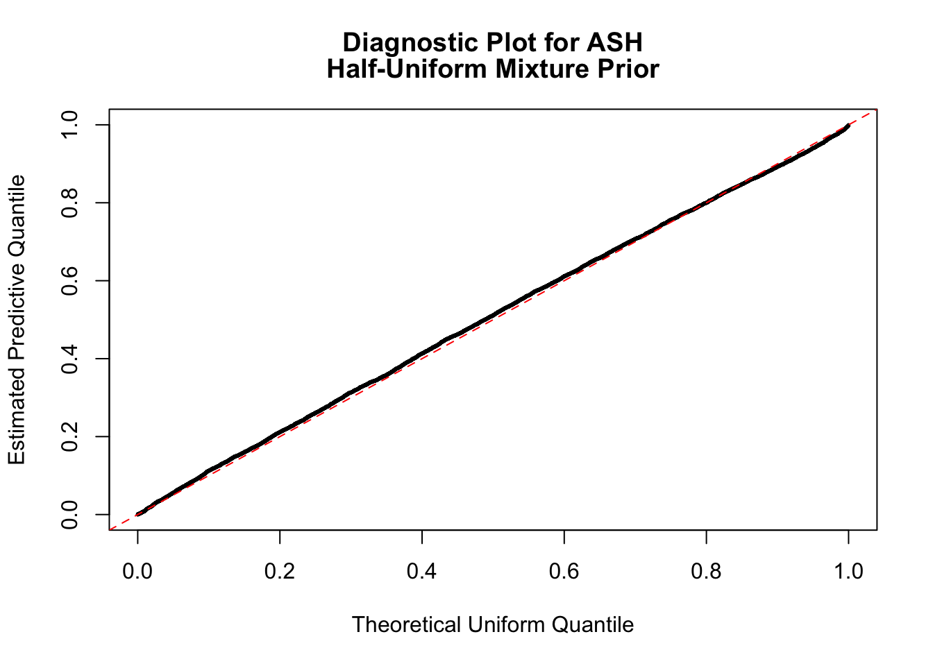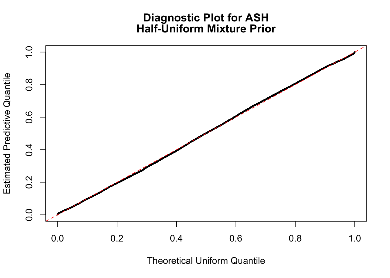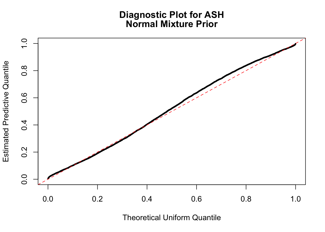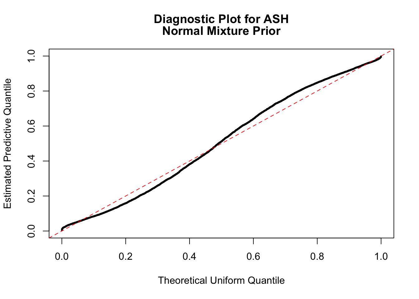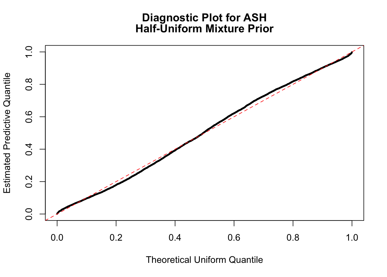 N0. 5 : Data Set 817 ; Number of False Discoveries by BH: 1 ; Number of False Discoveries by ASH's lfsr: 0 ; pihat0 = 1