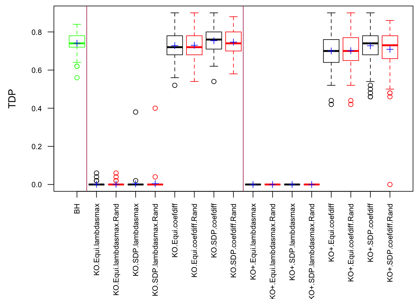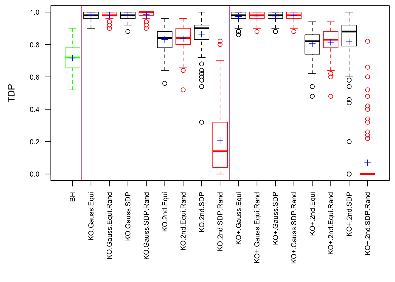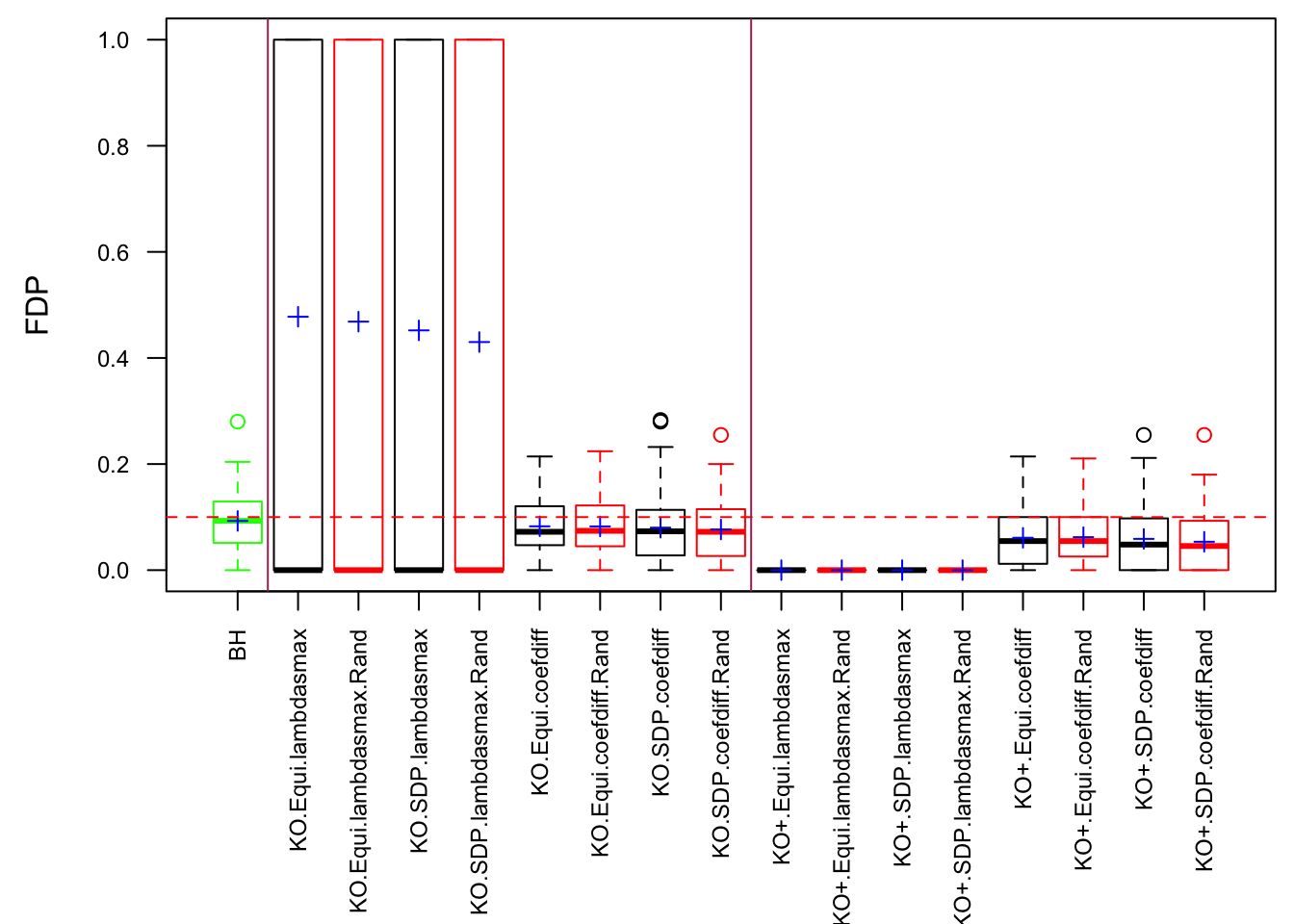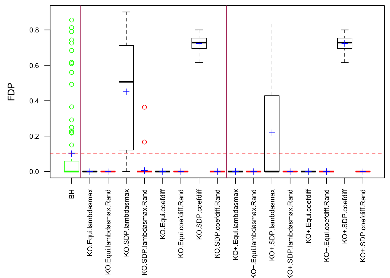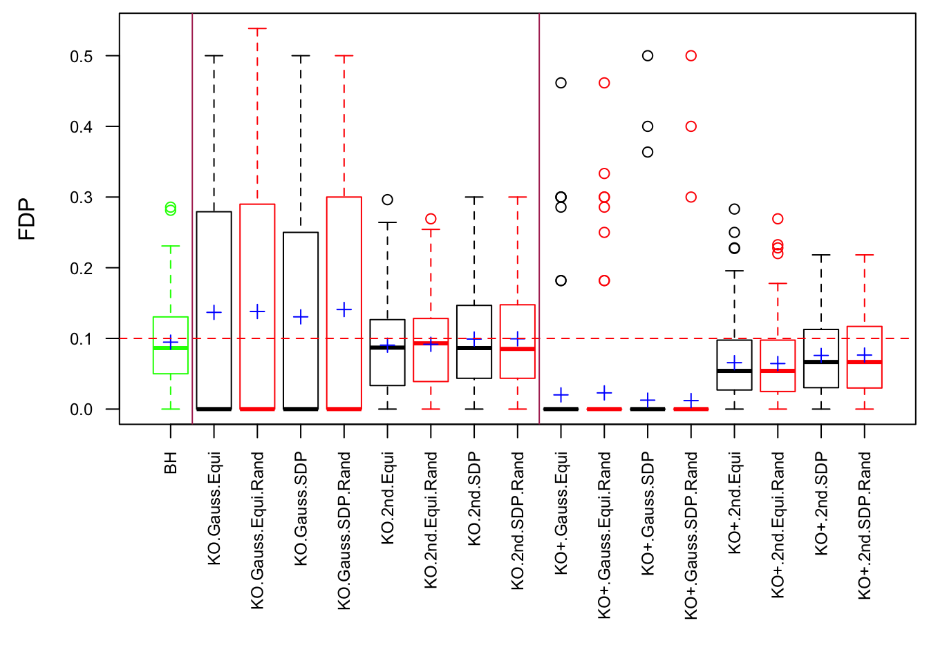 However, for that particular case when we have \[\Sigma_\hat\beta\] as a factor model, Model-\(X\) knockoffs are still not good.