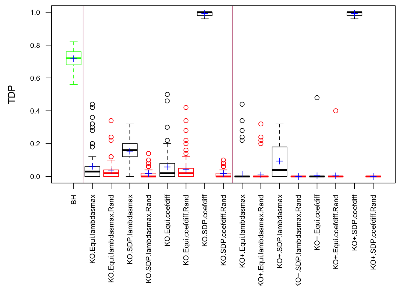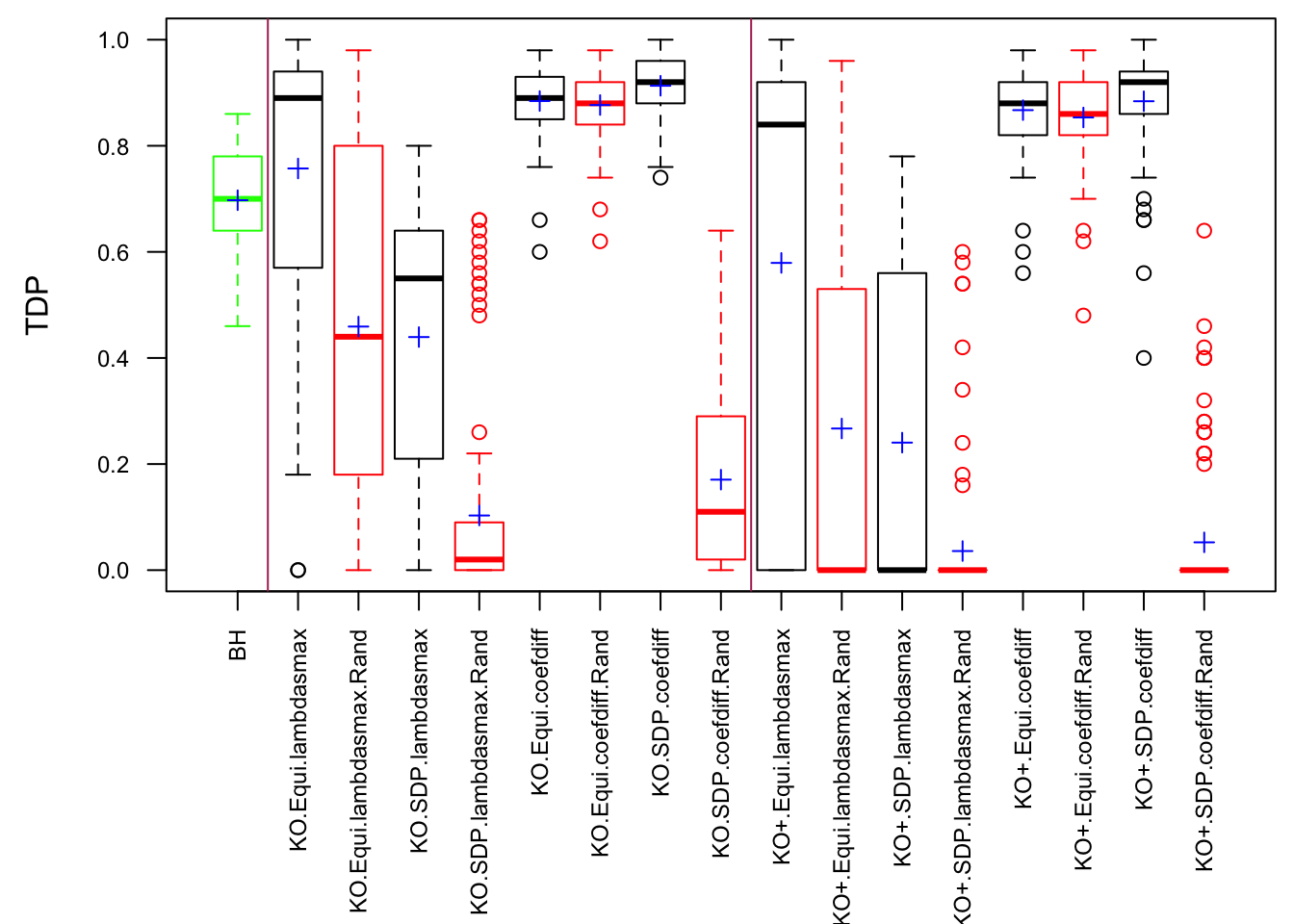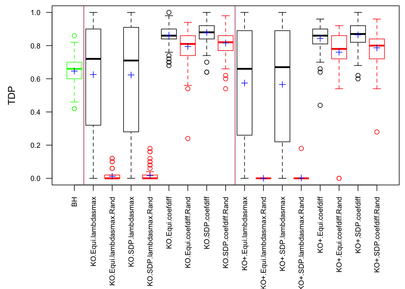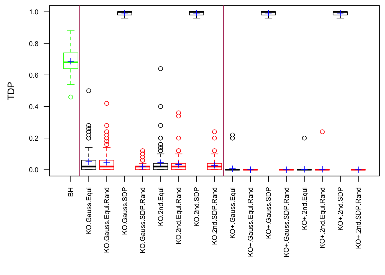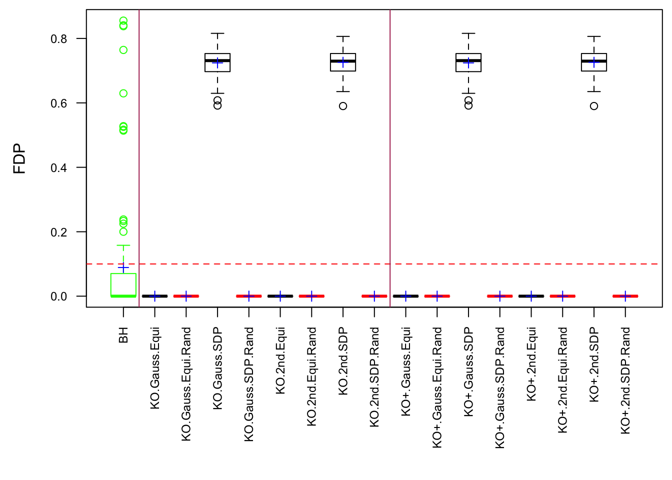 The idea in Knockoff is to generate knockoff variables \(\tilde X\) which 1) keep the relationship of original variables \(X\) 2) are unlike the original variables 3) are null.