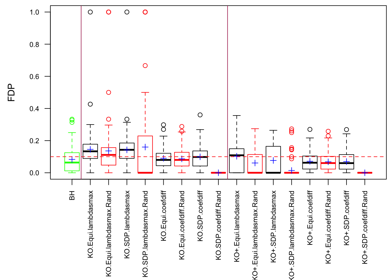 Similarly, the first two constraints are to control the Type I error, whereas the third is to increase power. Furthermore, there are three methods to make \(\left|cor(\tilde X_i, X_i)\right|\) as small as possible.