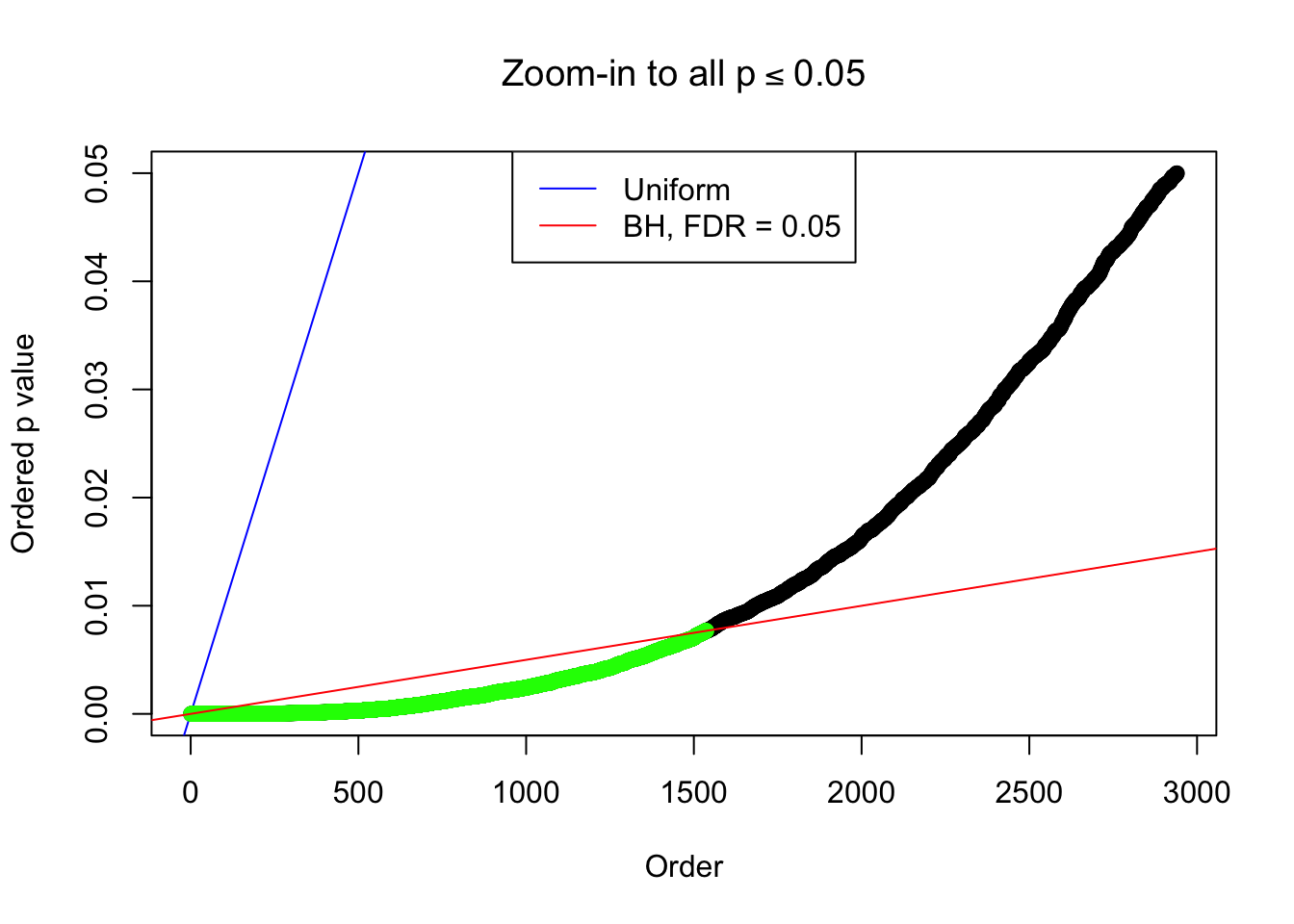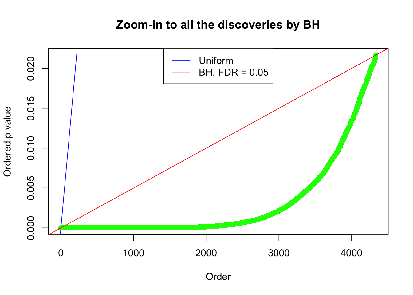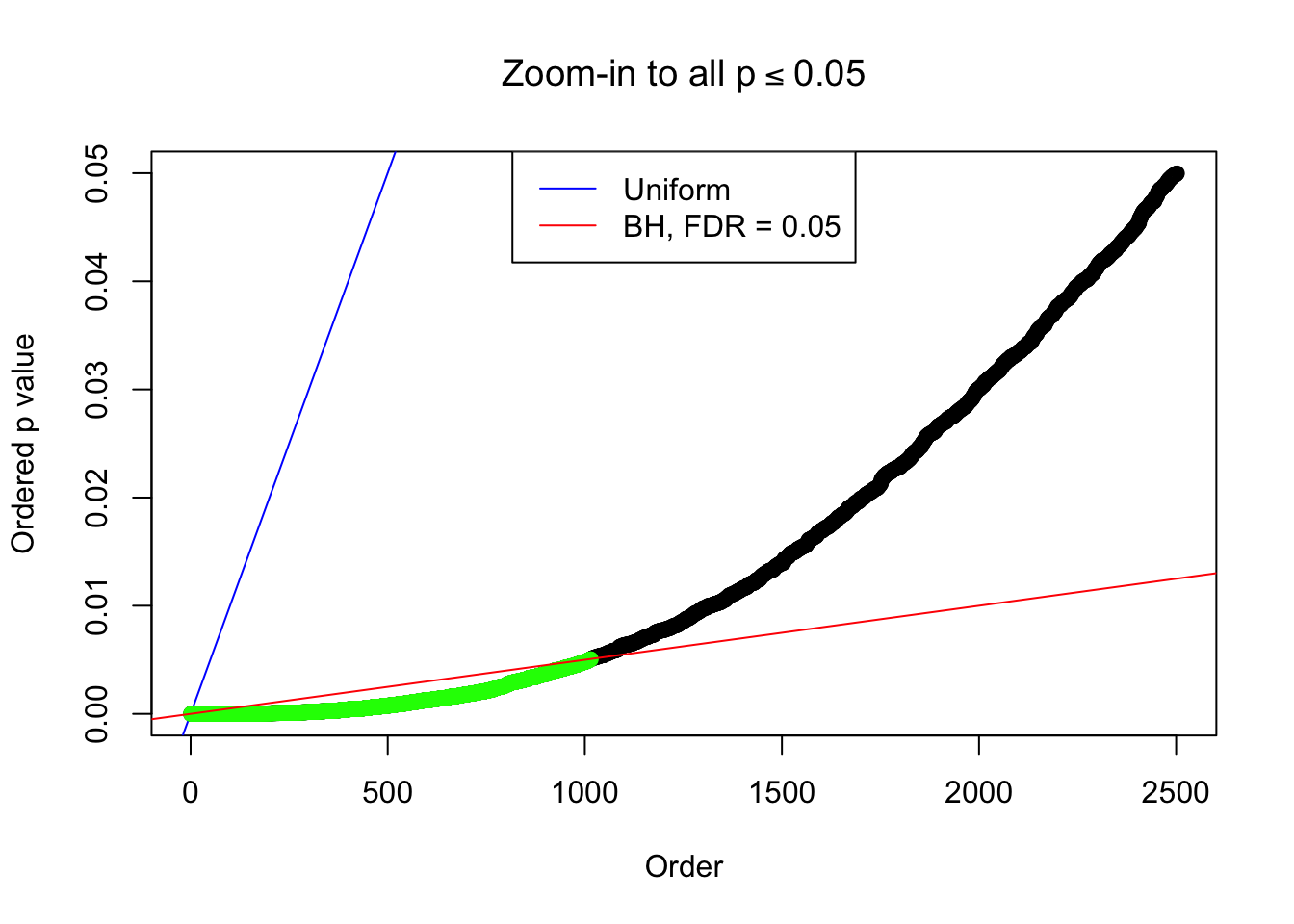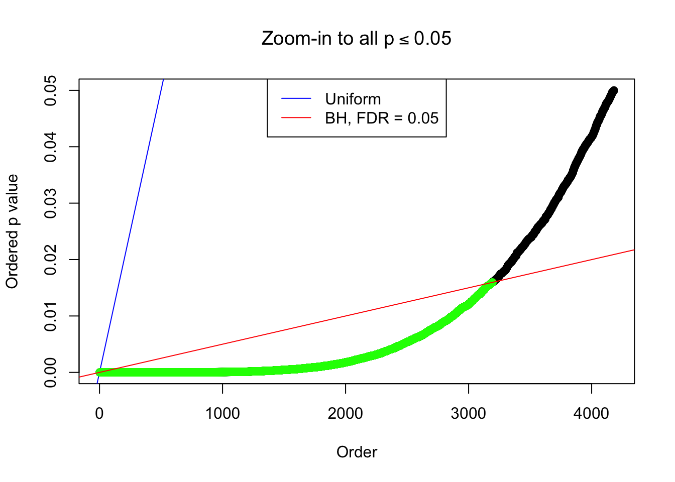 bh.fd = sum(p.adjust(p, method = "BH") <= 0.05)