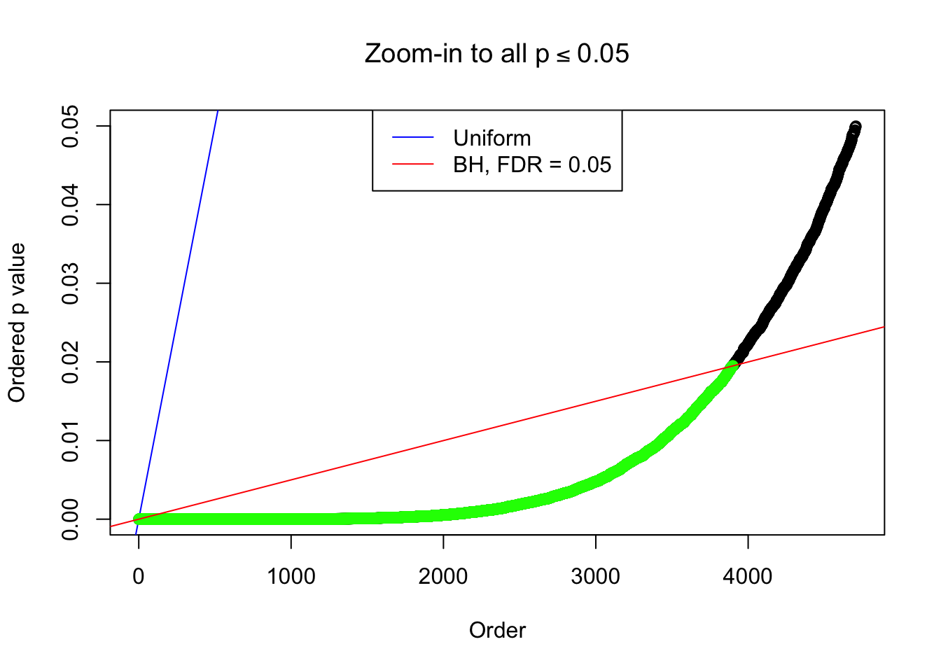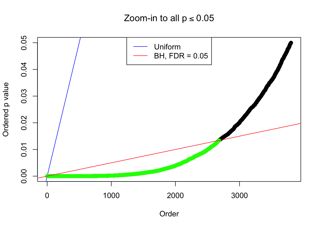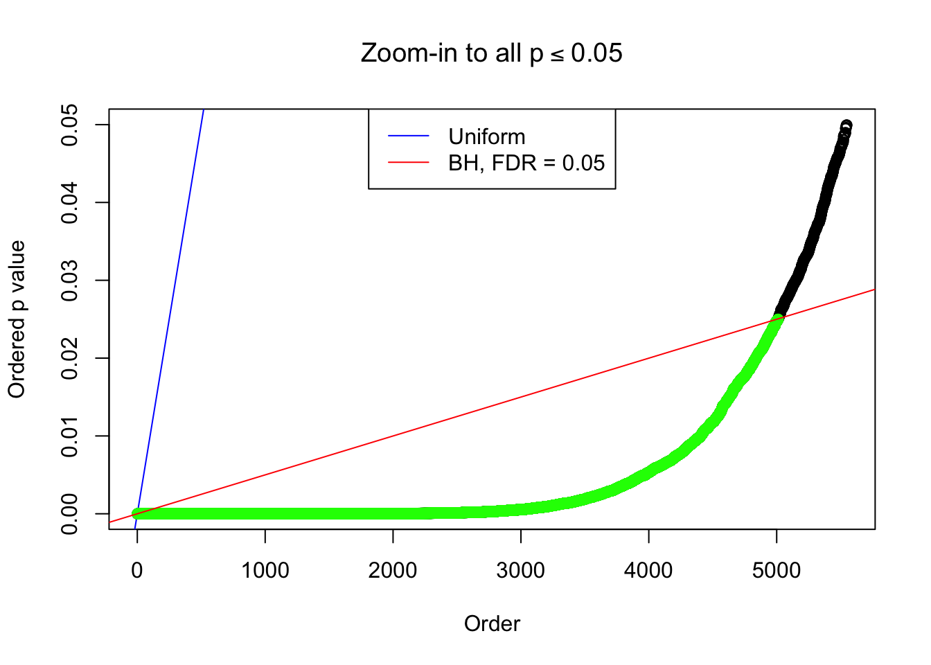 bh.fd = sum(p.adjust(p, method = "BH") <= 0.05)