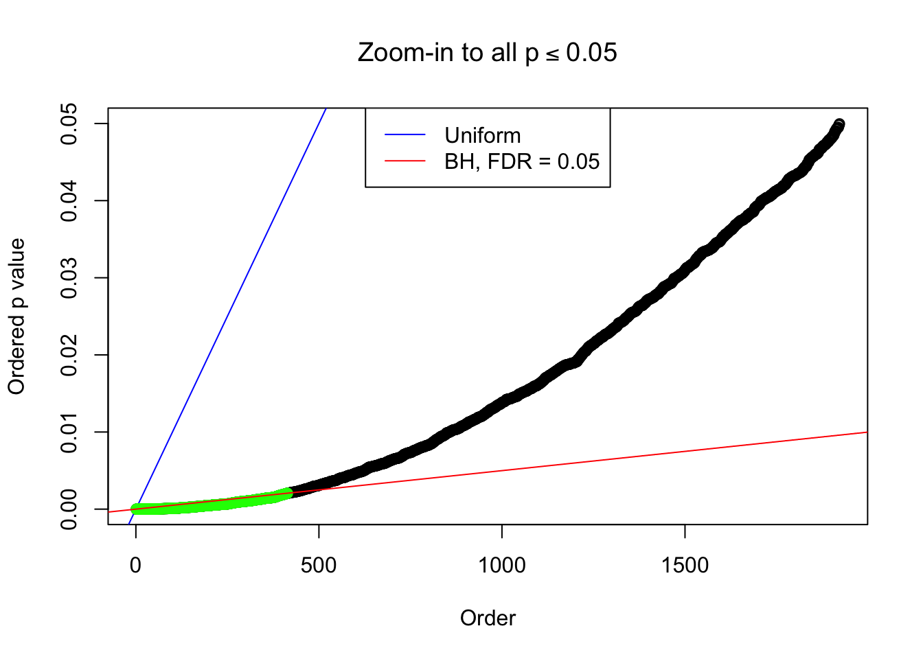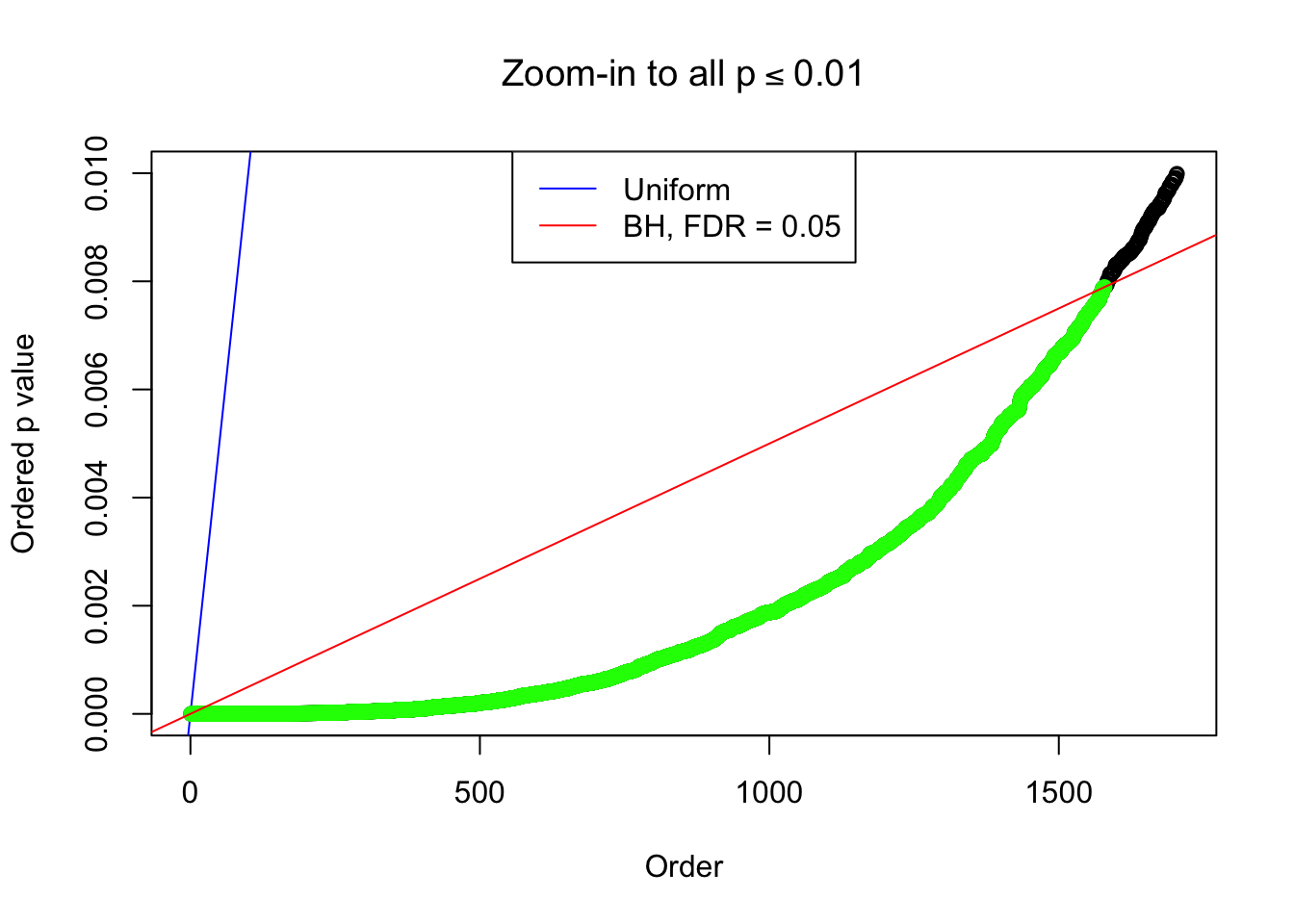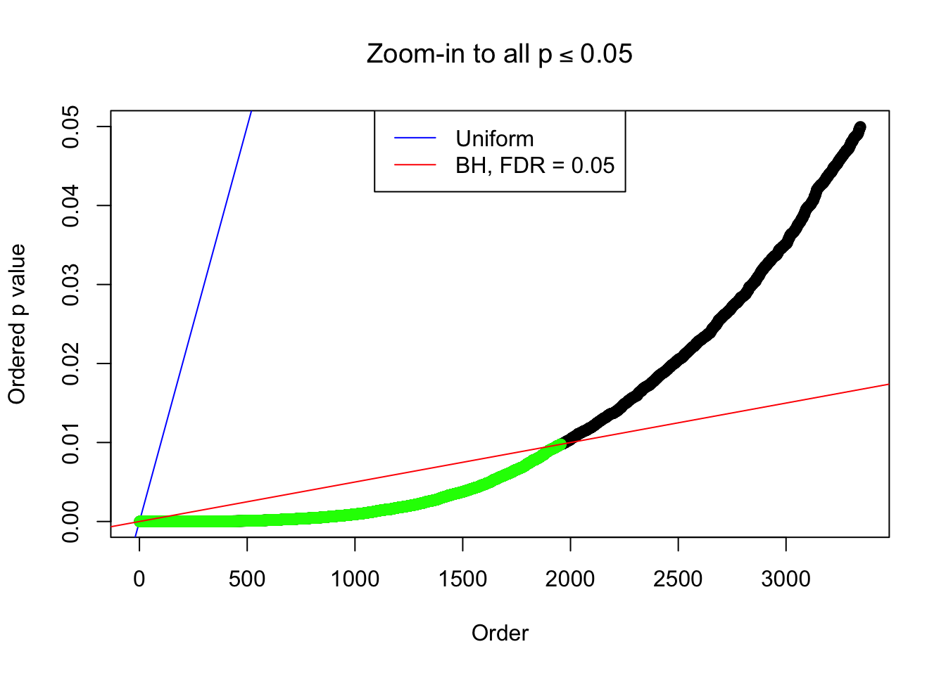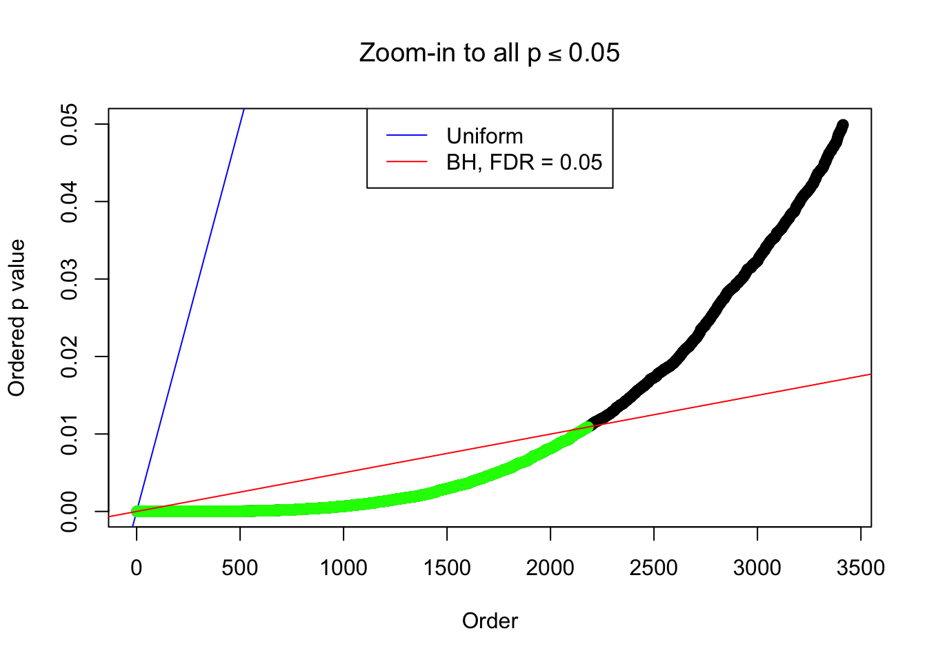 bh.fd = sum(p.adjust(p, method = "BH") <= 0.05)