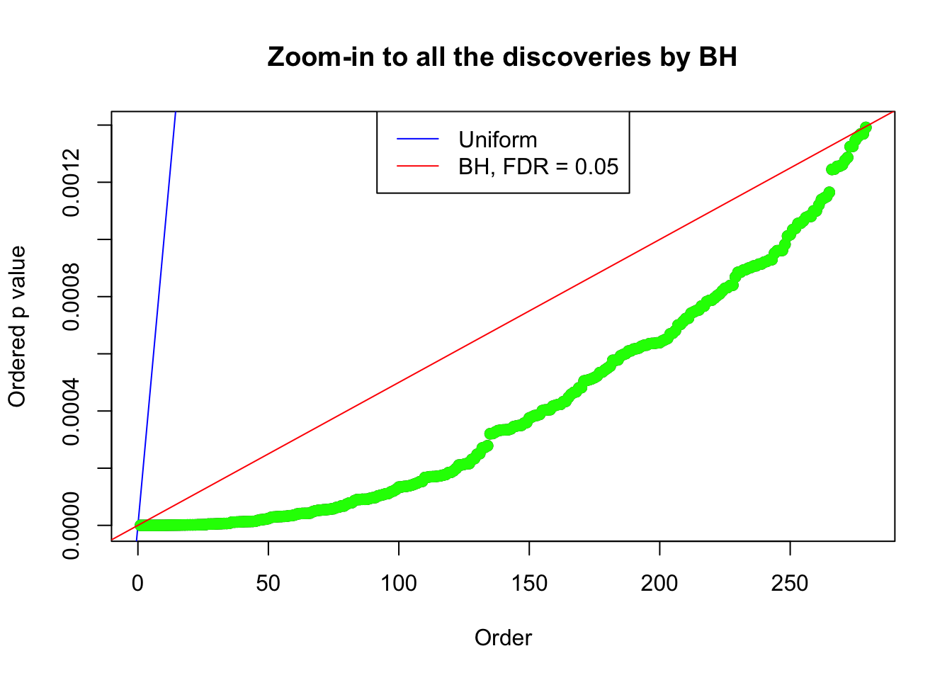 So at this moment, we should concentrate on larger effects, whereas keep the SNR = 1 case, as well as BH’s “surprisingly good performance” in mind.