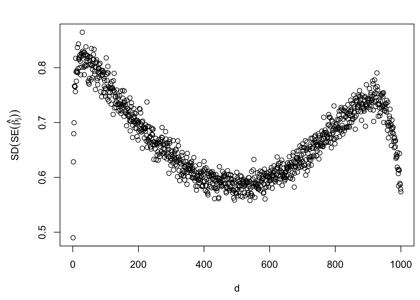 Actually the most important quantity to determine the shape of the empirical distribution of \(\hat z_j\) is the square root of the mean squared correlation among \(\hat\beta_j\)’s, that is, \(\sqrt{\overline{\rho_{\hat\beta_i, \hat\beta_j}^2}}\).