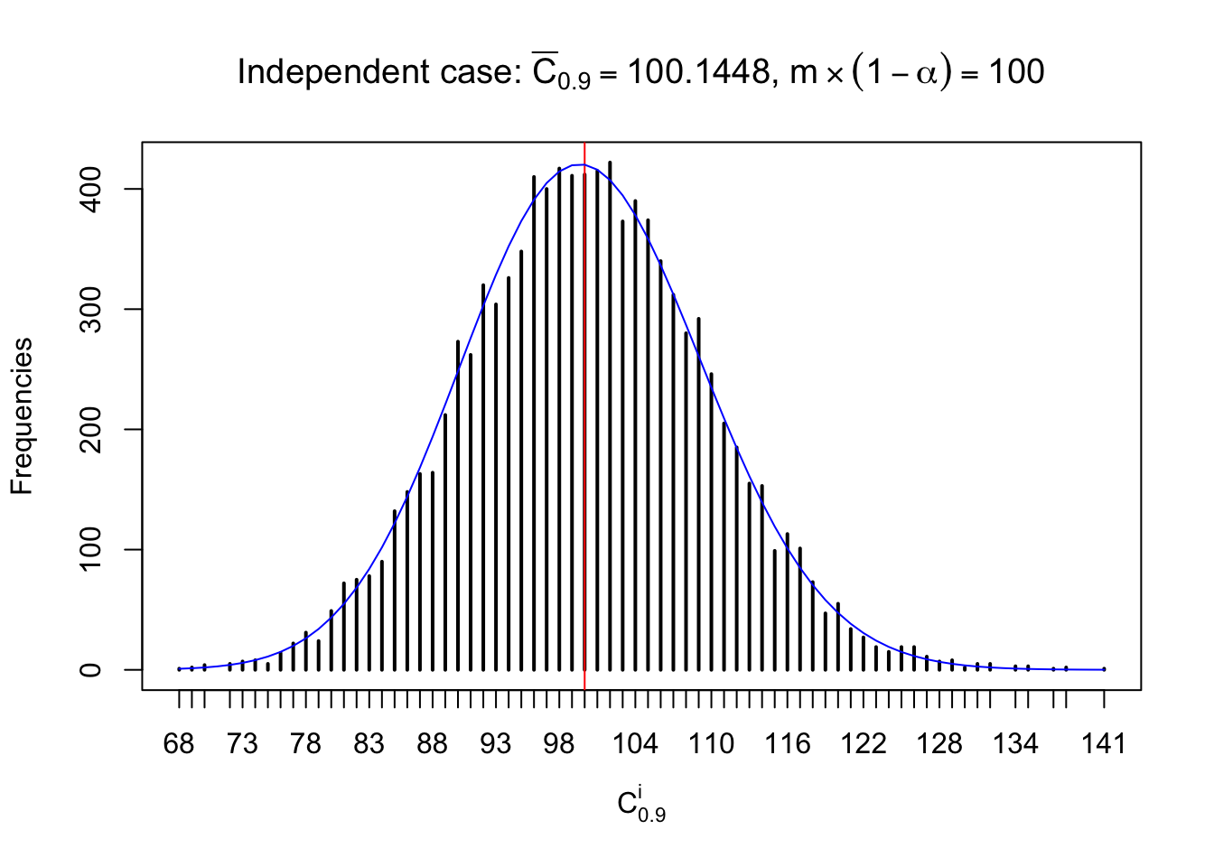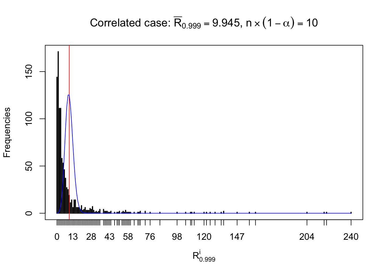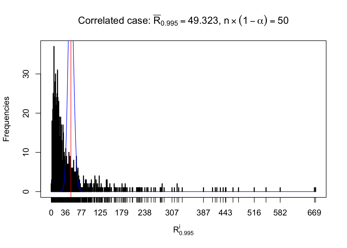 For each row, let \(\alpha\) be a given probability level, \(z_\alpha = \Phi^{-1}\left(\alpha\right)\) be the associated quantile, and we record a number \(R_i^\alpha\) defined as follows.