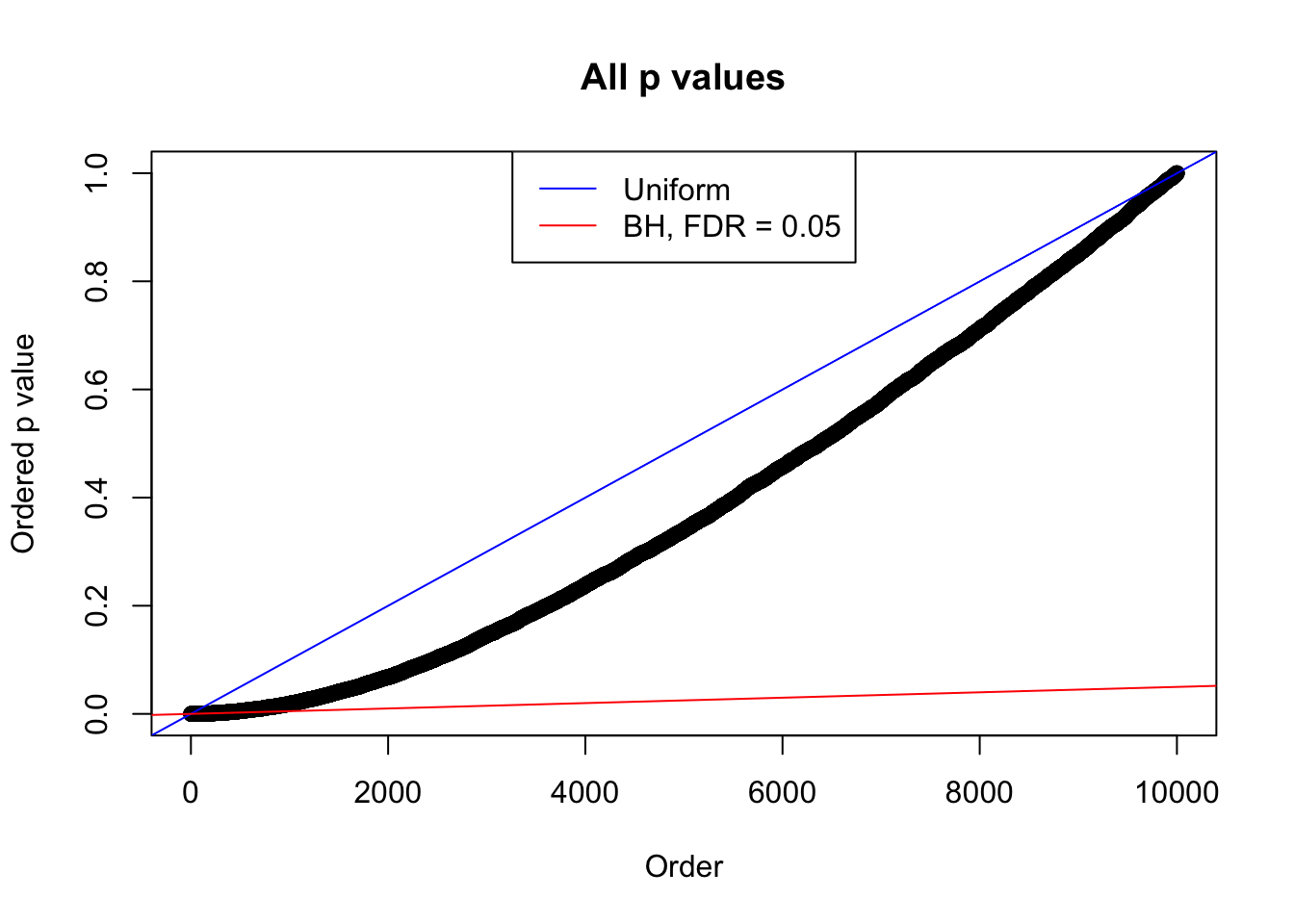 bh.fd = sum(p.adjust(p, method = "BH") <= 0.05)