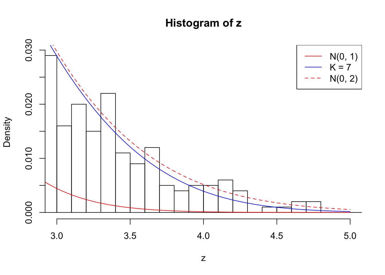 We’ve shown that in many real data sets when we have correlated null \(z\) scores, we can fit their empirical distribution with Gaussian and its derivatives.