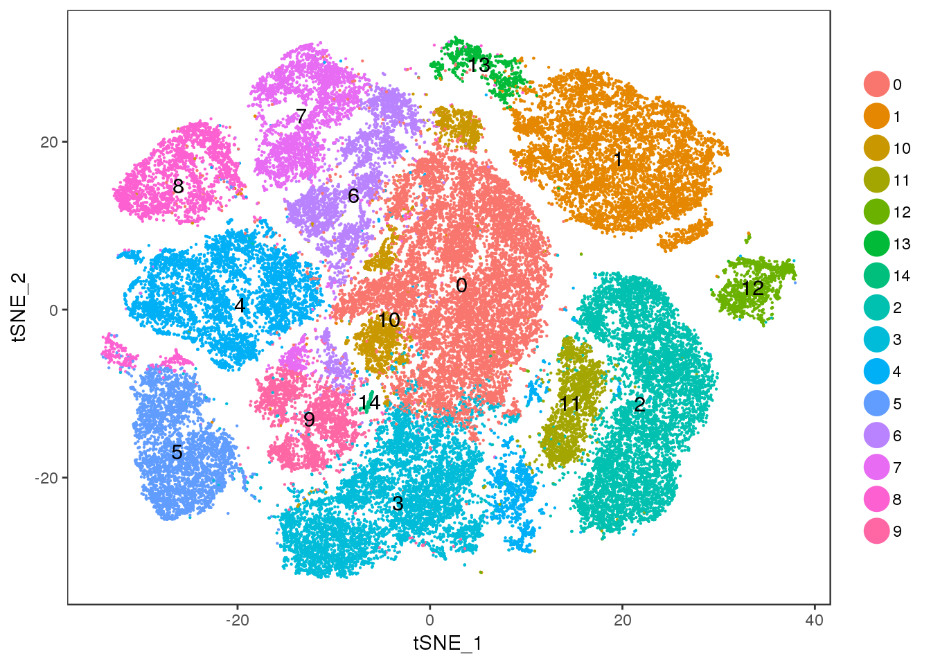 TSNEPlot(all10x, pt.size=0.1, group.by='res.1', do.label=T)