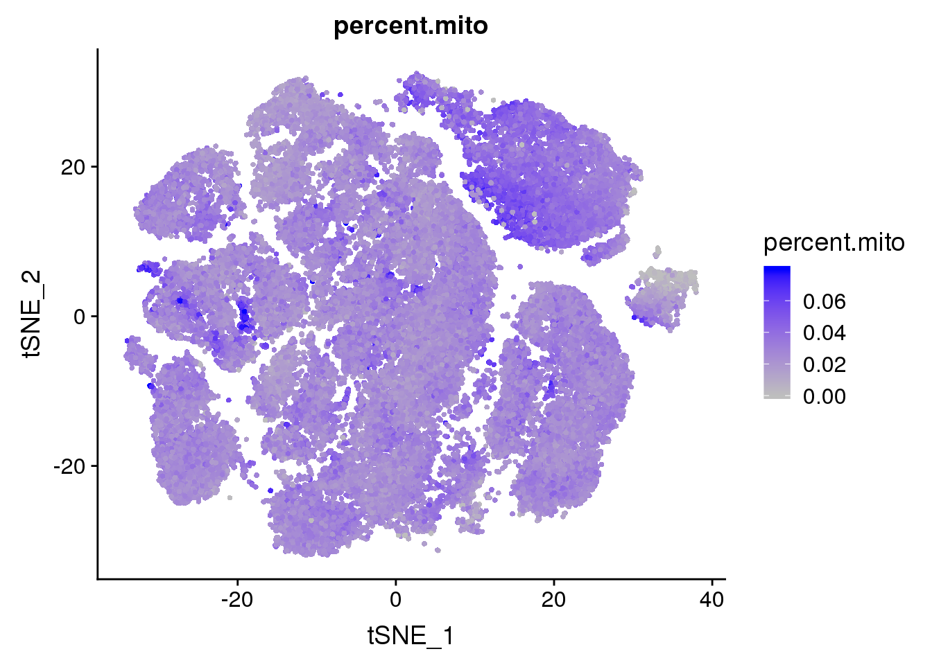 FeaturePlot(all10x, c("percent.mito"), cols.use = c("grey","blue"), no.legend=F)