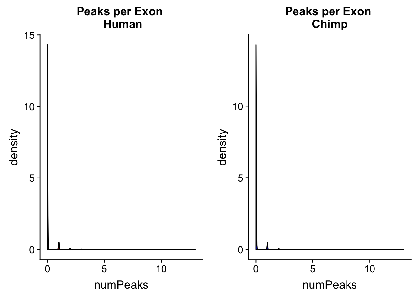 chimp_peakperexon= read.table("../data/PeakPerExon/chimpOrthoPeakPerExon.bed", stringsAsFactors = F, header = F, col.names = c("chr", "start", "end", "exon", "numPeaks")) %>% mutate(spec="C")