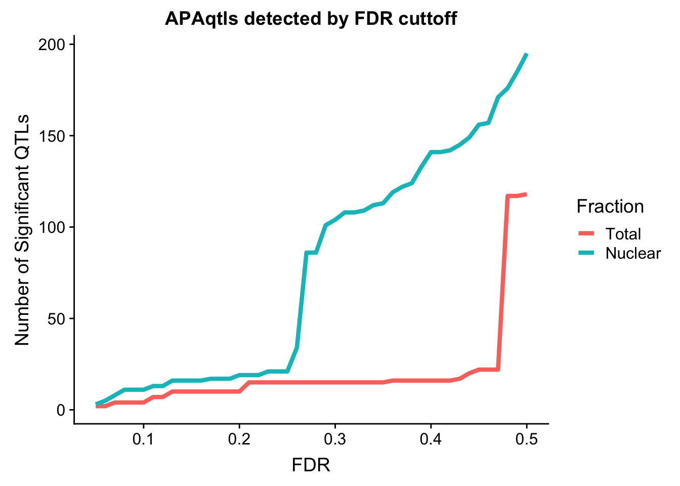 nQTL=as.data.frame(cbind(FDR, Total=nQTL_tot, Nuclear=nQTL_nuc))