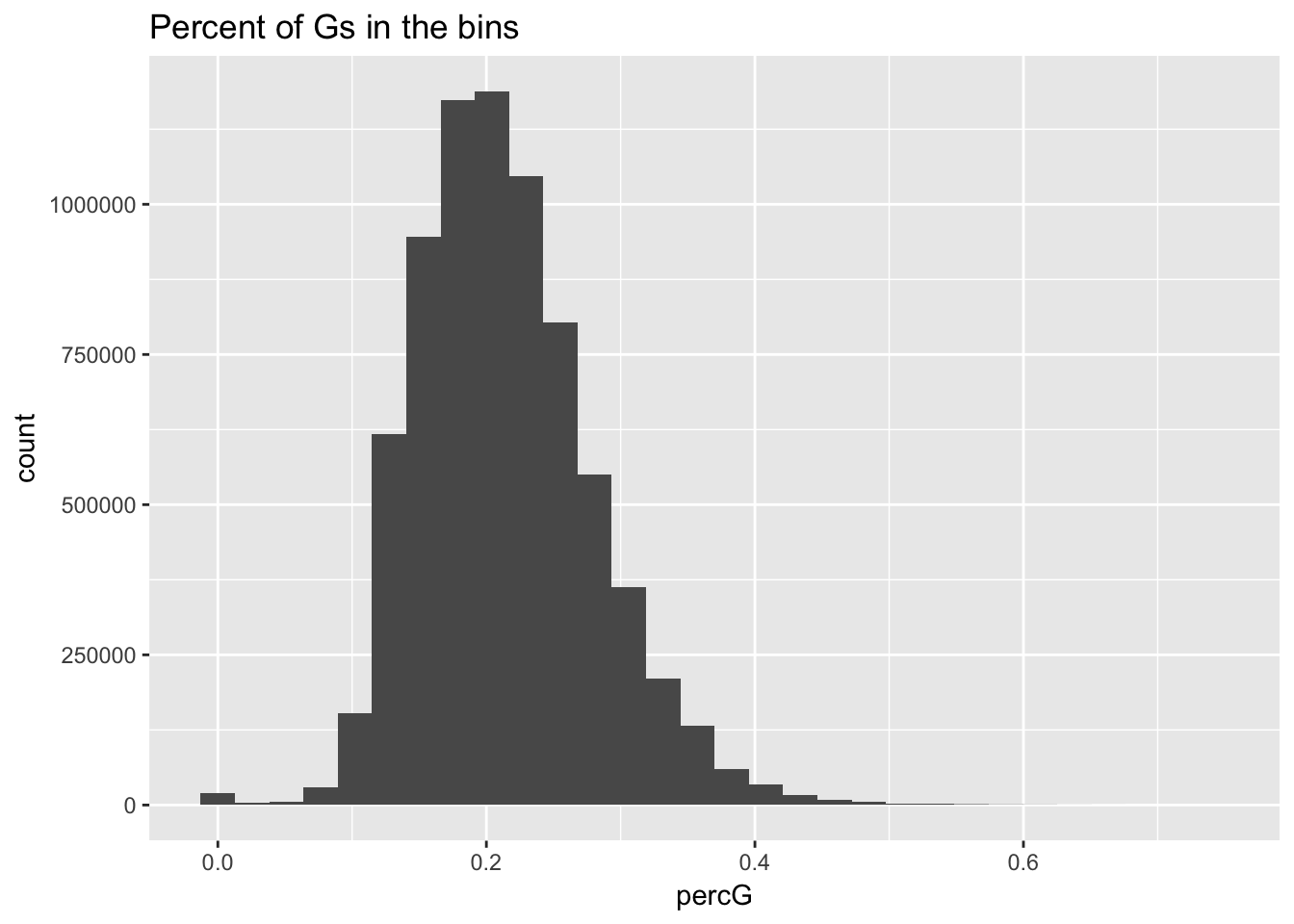 perc_G_bin=bin_nuccov %>% select("chr", "start", "end","bin", "strand", "gene", "numG") %>% mutate(percG=numG/200)