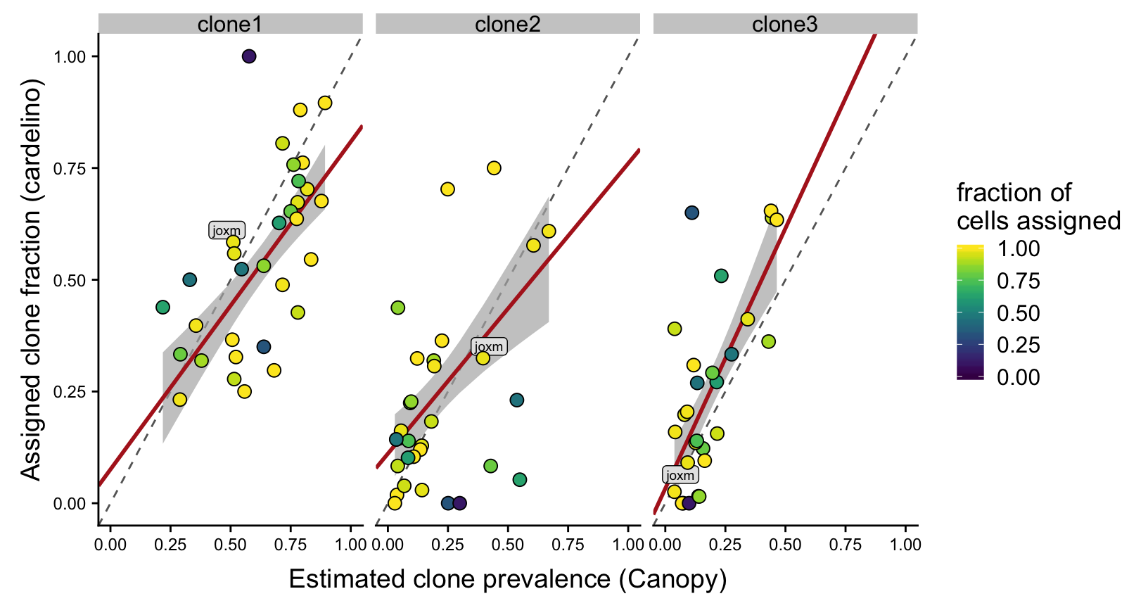 ylab("Assigned clone fraction (cardelino)")