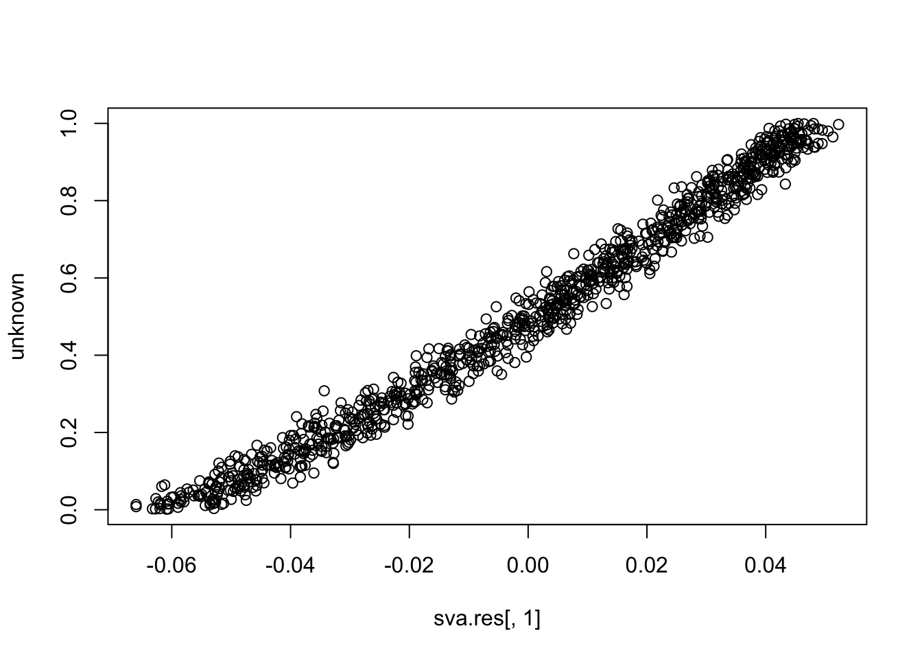 plot(sva.res[,1], unknown)