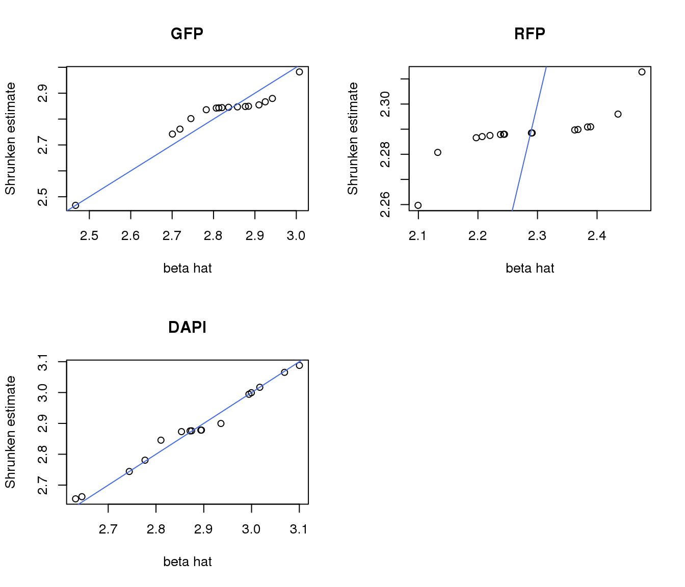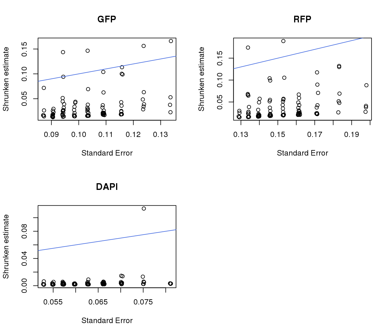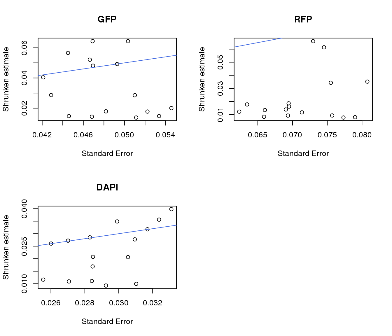 xlab = "Standard Error", ylab = "Shrunken estimate", main = "DAPI")