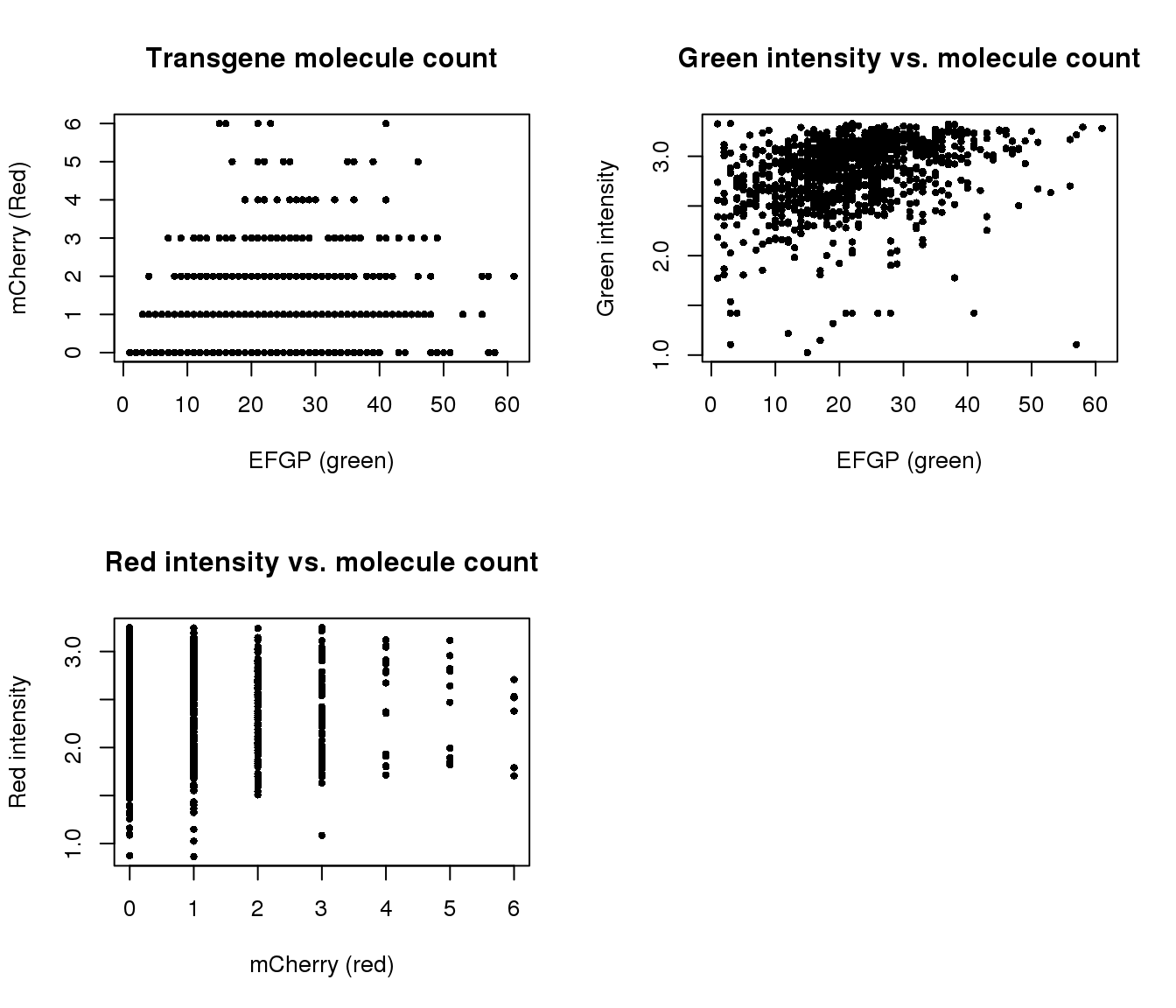 xlab = "EFGP (green)", ylab = "Green intensity",
