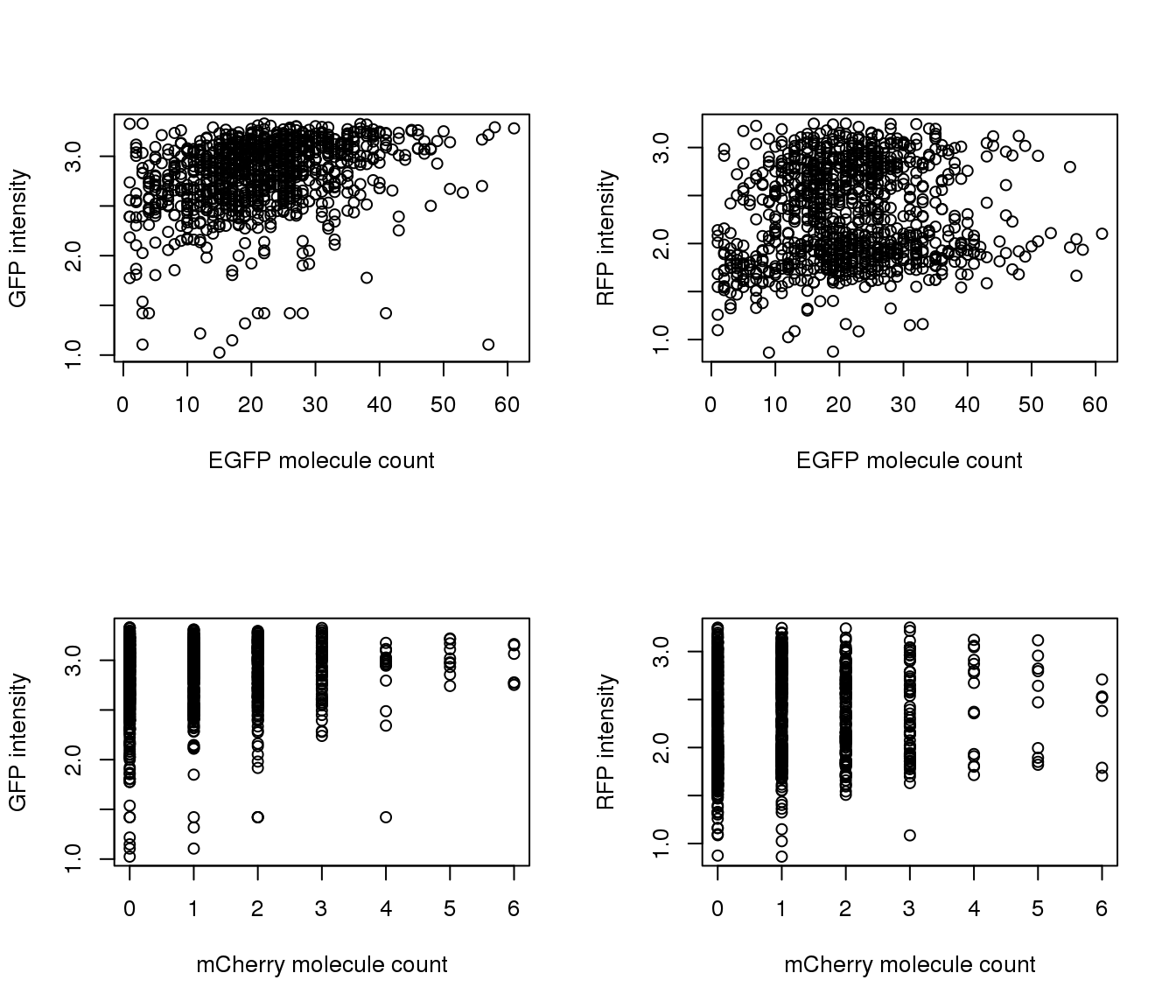 xlab = "EFGP (green)", ylab = "mCherry (Red)",