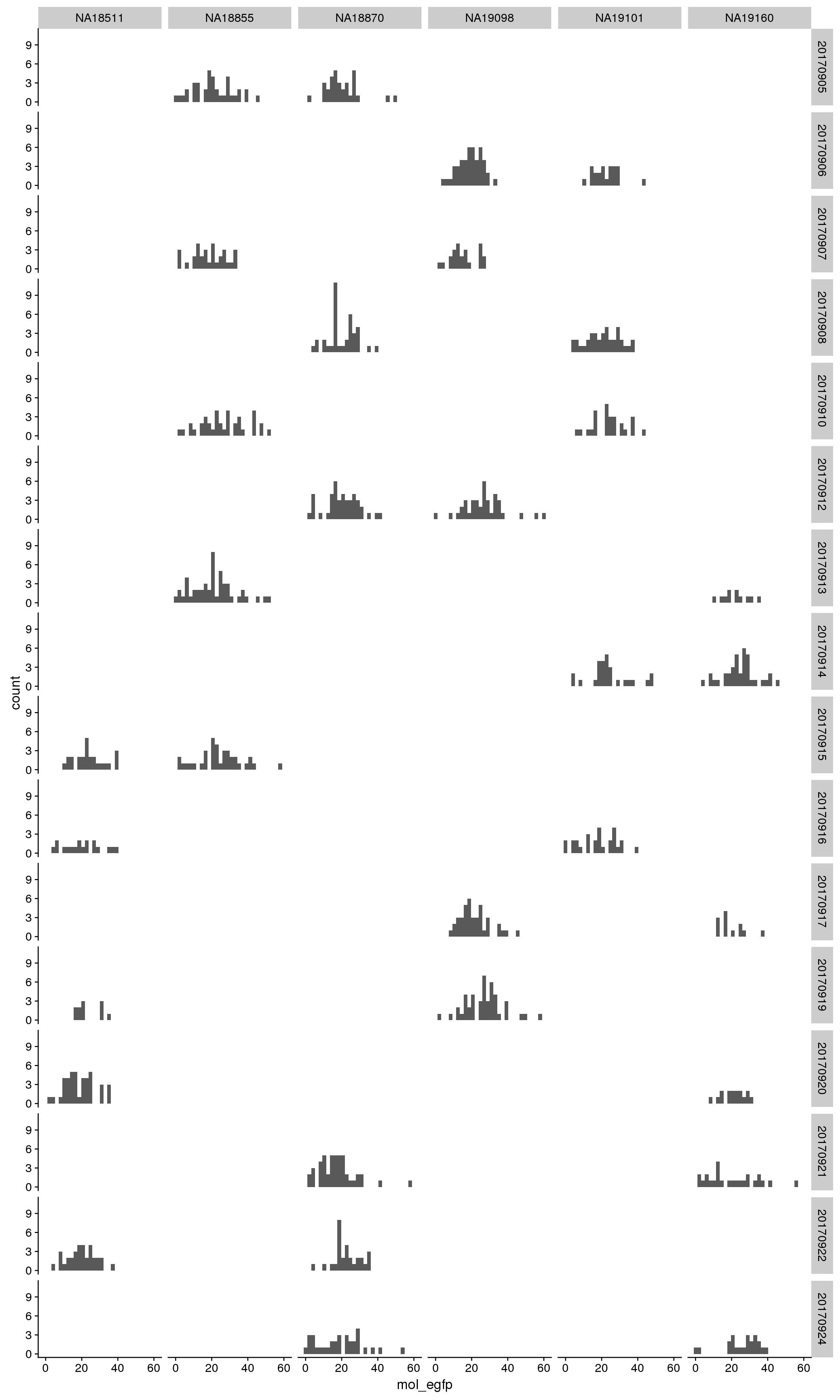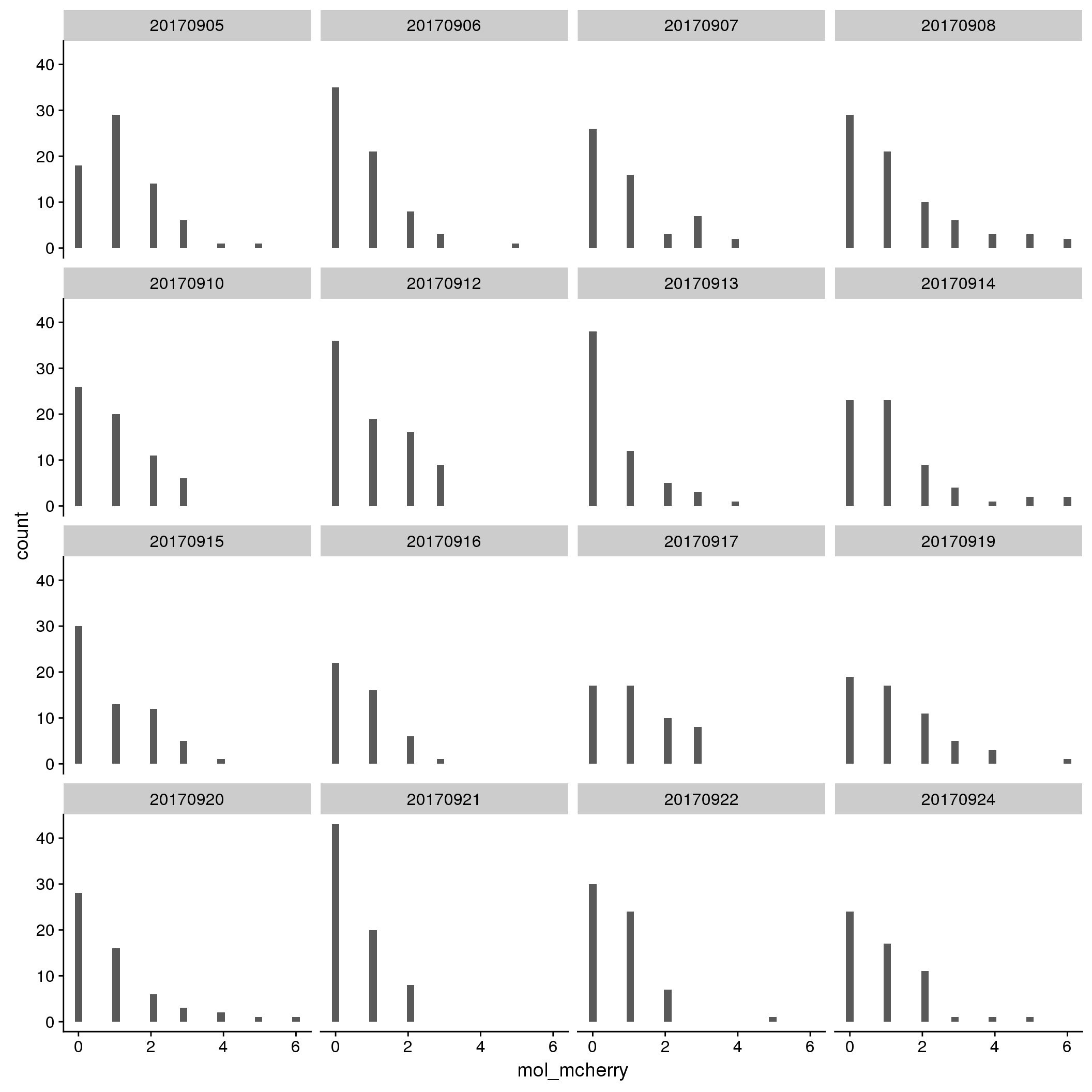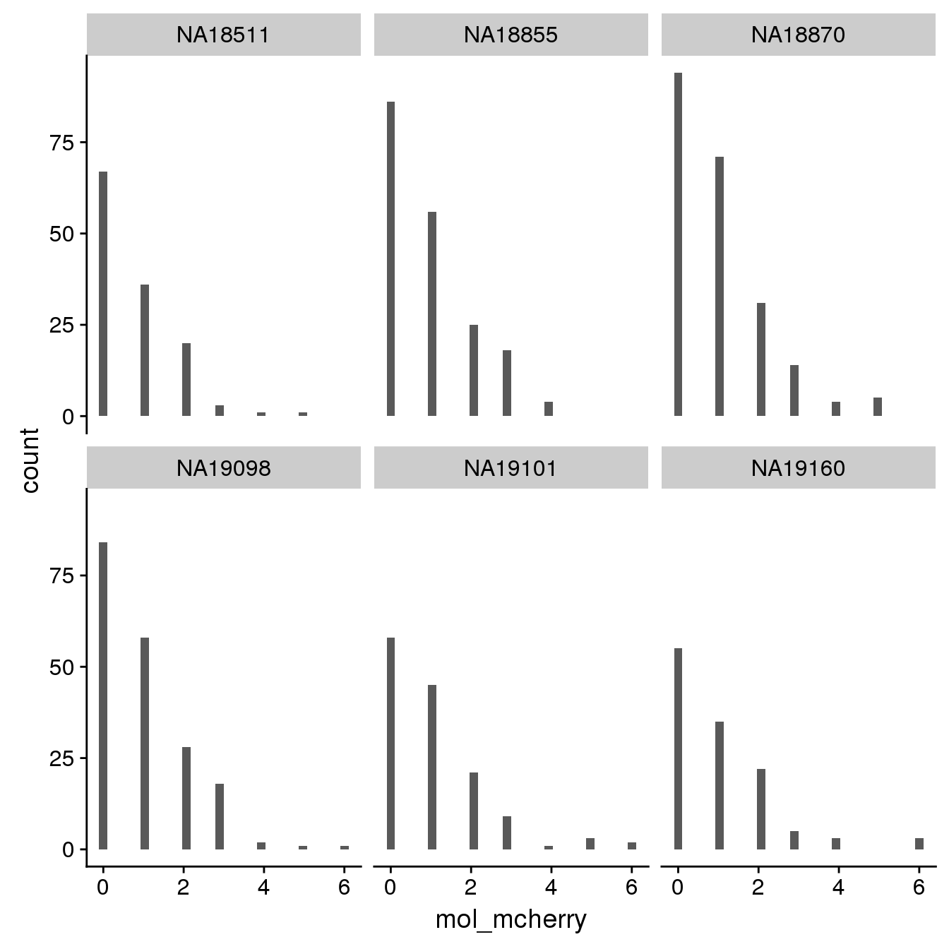 pdata.adj$trans.cpm <- with(pdata.adj, (10^6)*(mol_egfp + mol_mcherry)/molecules)