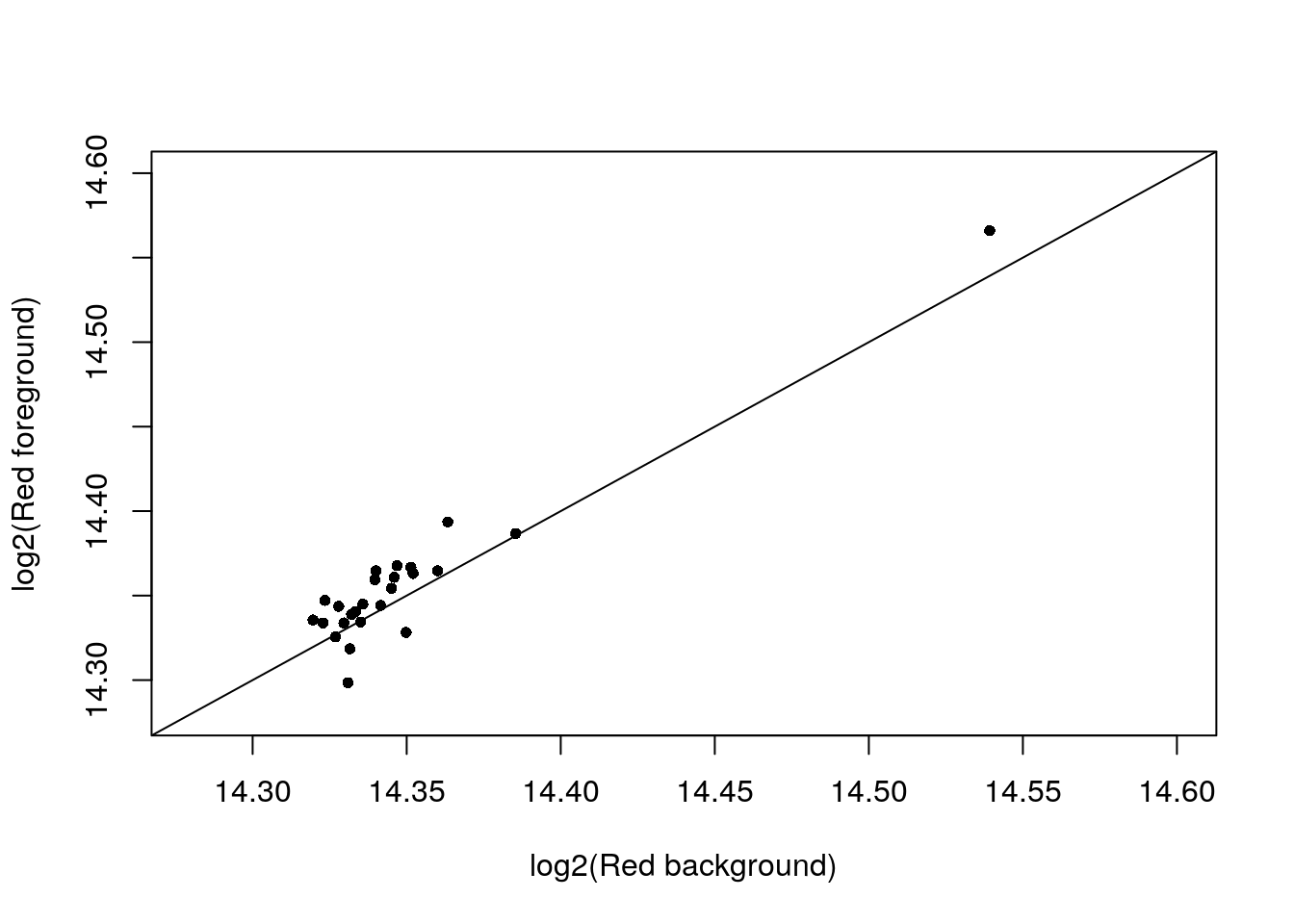 #  xlim_red <- ylim_red <- range(c(log2(back_Red), log2(fore_Red)))