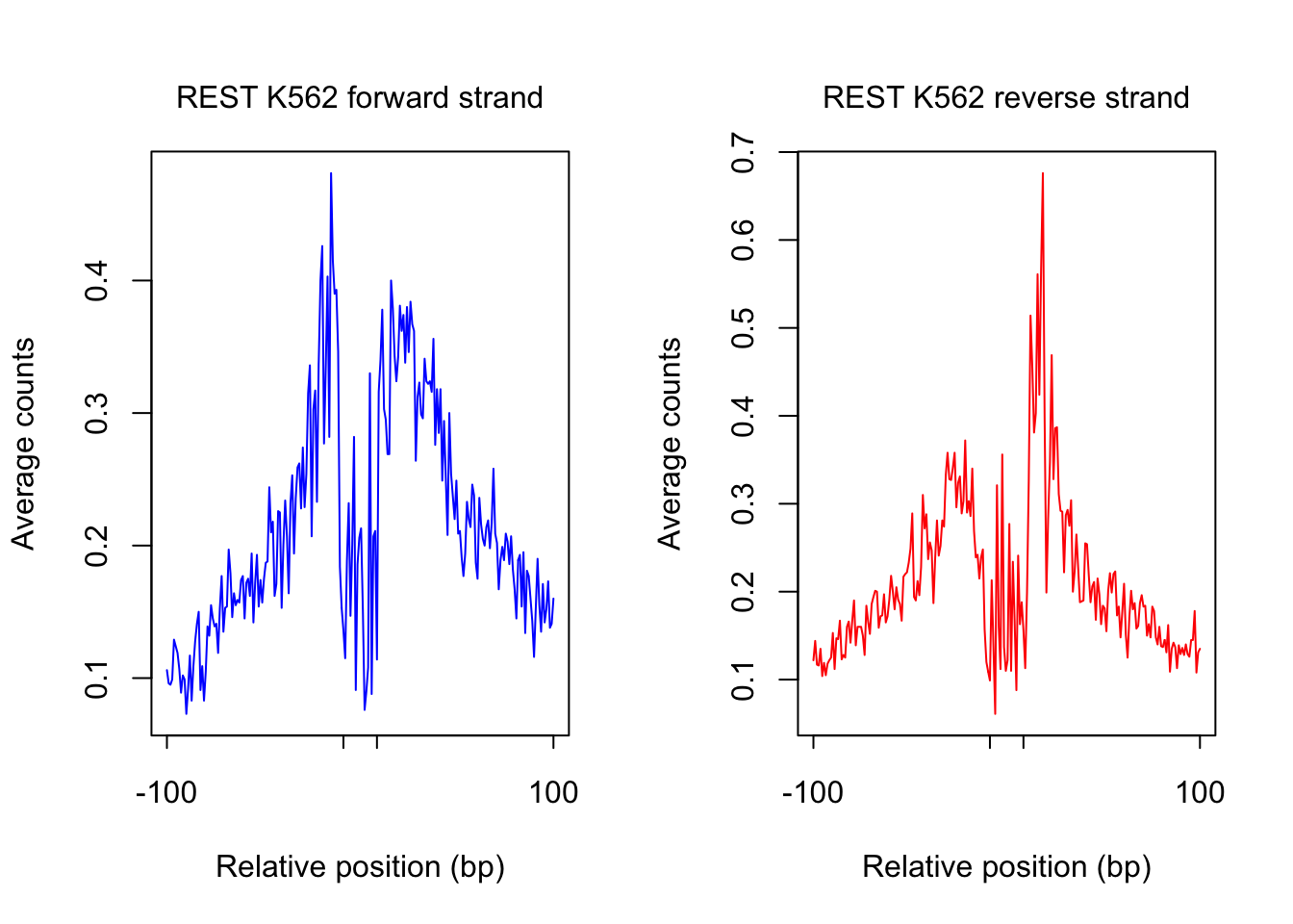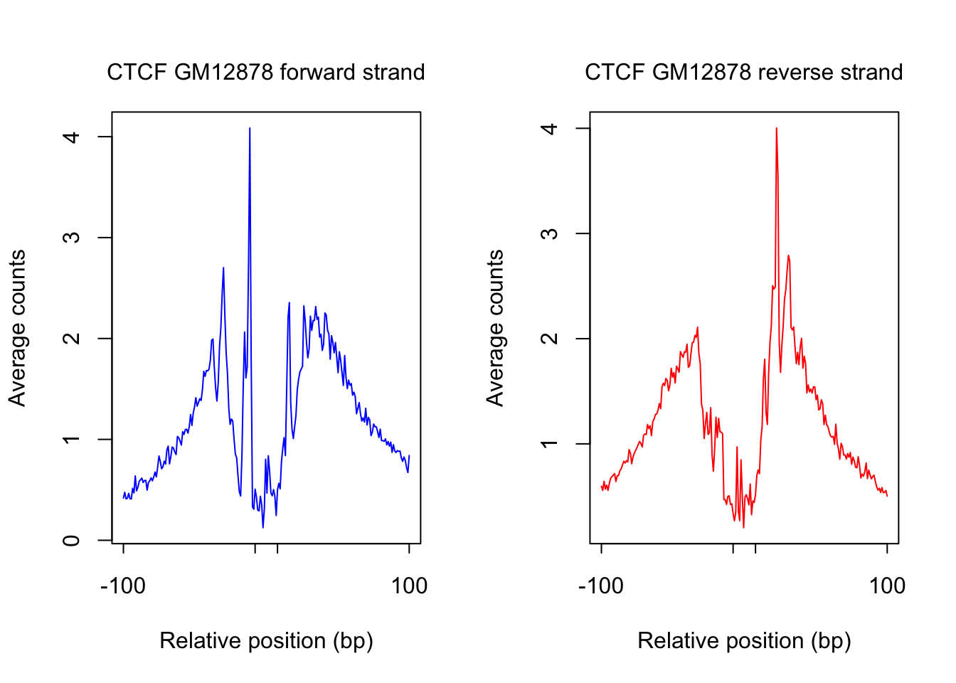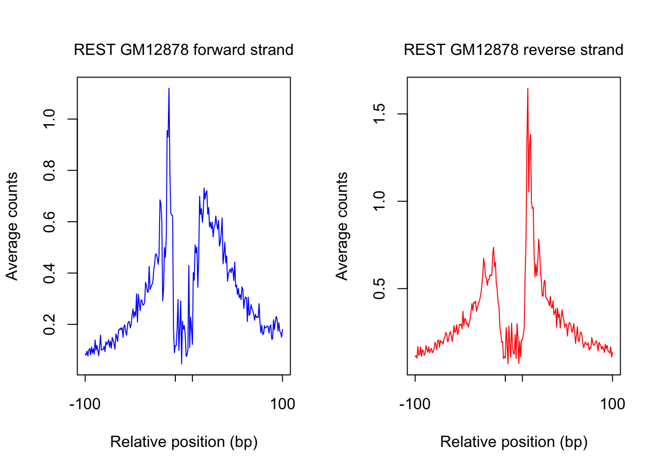 mtext(text = paste(tf_name, cell_type, "forward strand"), side = 3, line = 1, cex = 1)